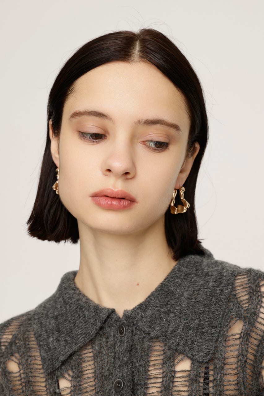 ■DETAIL:歪なスクエアフープの個性的なデザインが耳元でスタイリッシュに映え、あなたの魅力をさりげなく引き出してくれます。