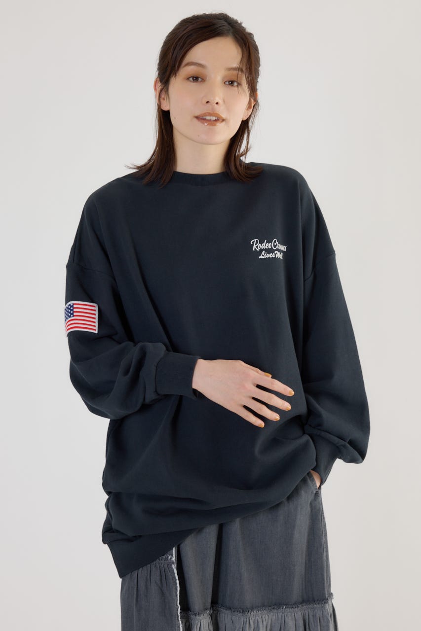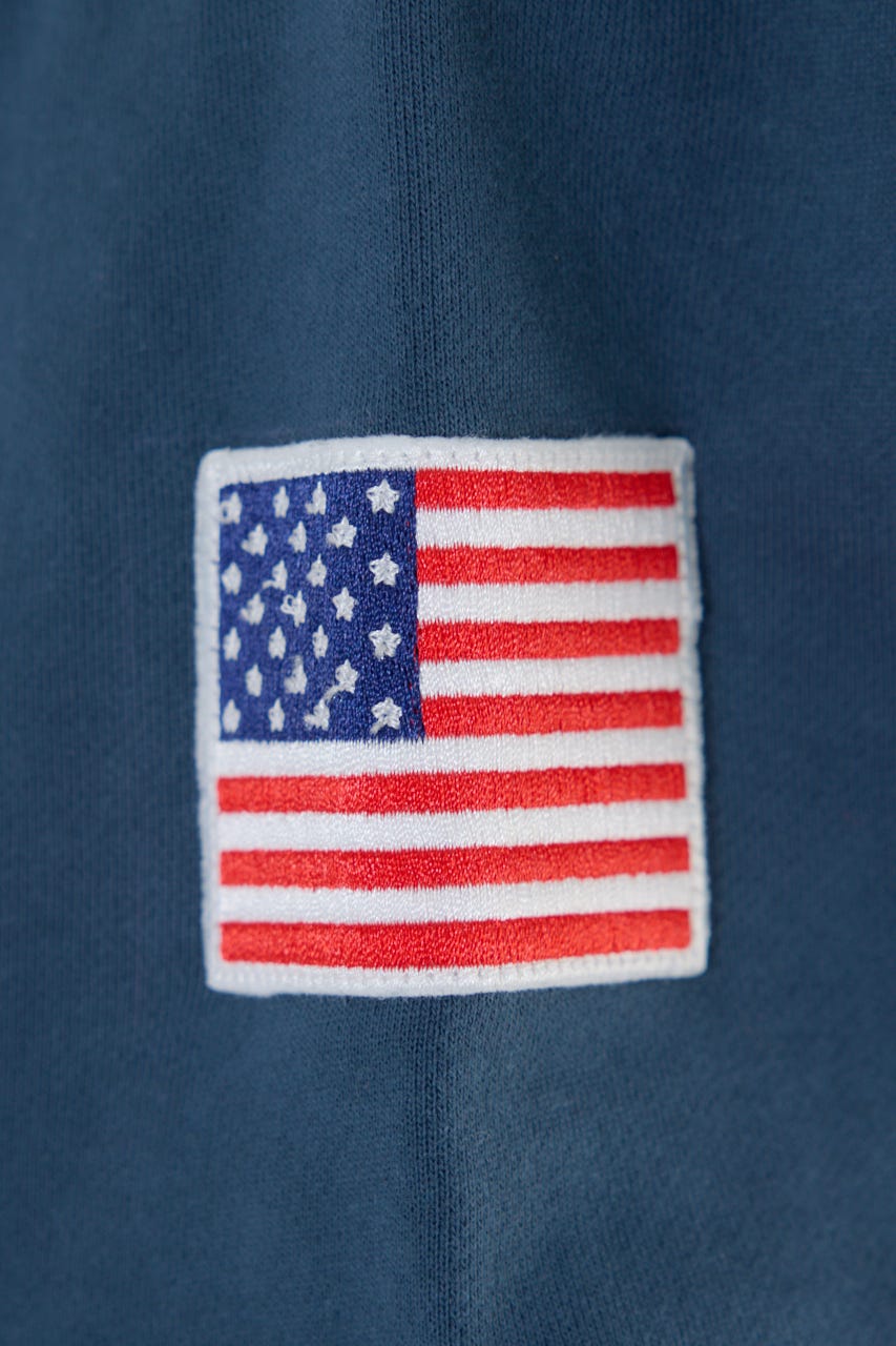 バックのアップリケの上にはロゴ刺繍、腕には星条旗のワッペン等、ブランドらしさが詰め込まれた1枚です。