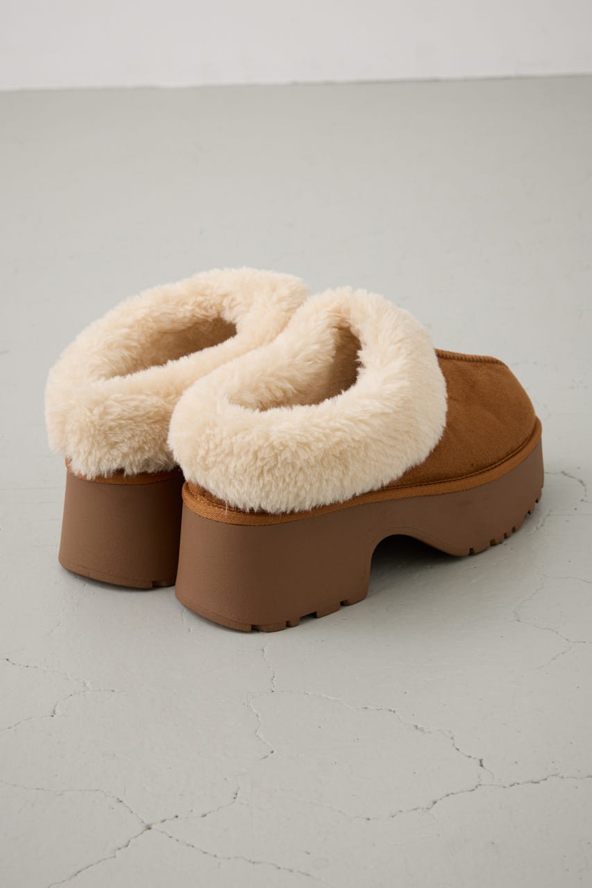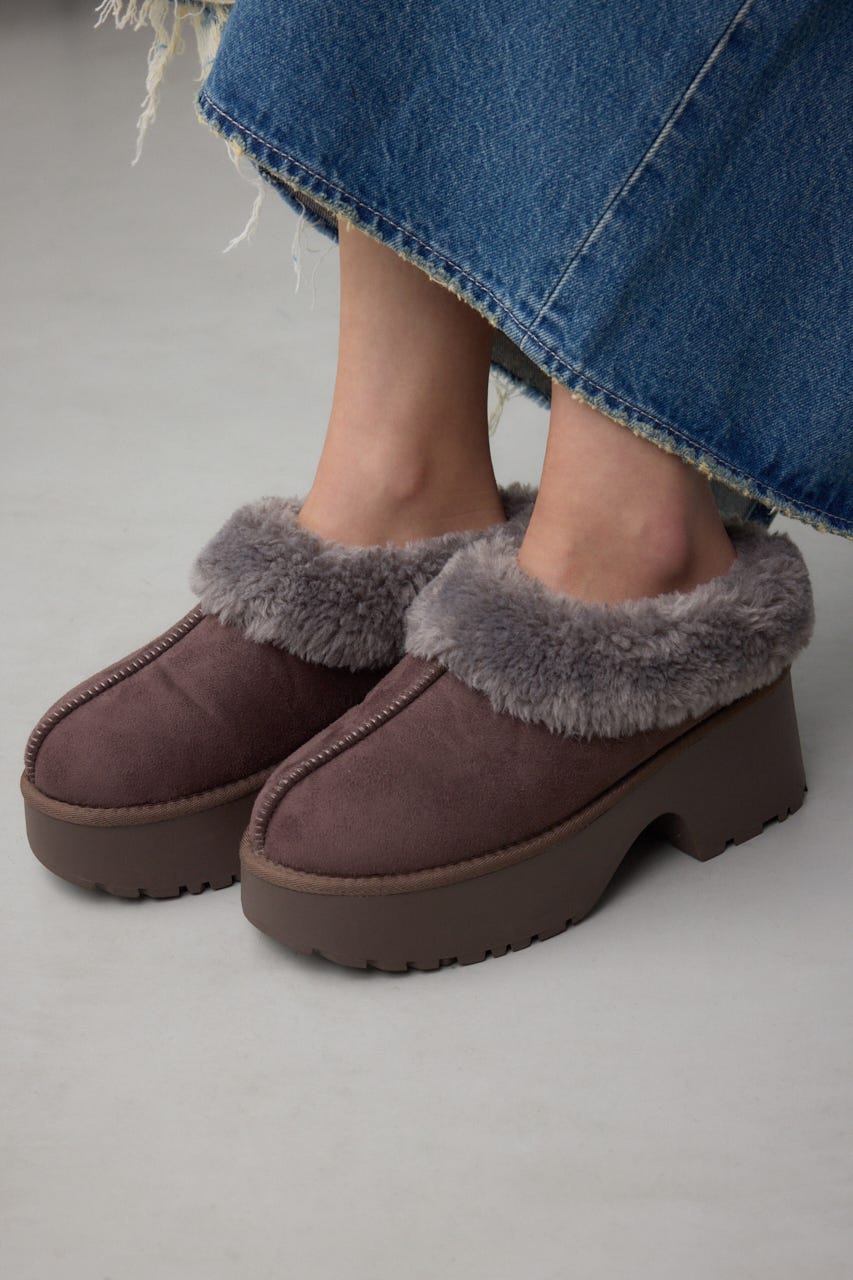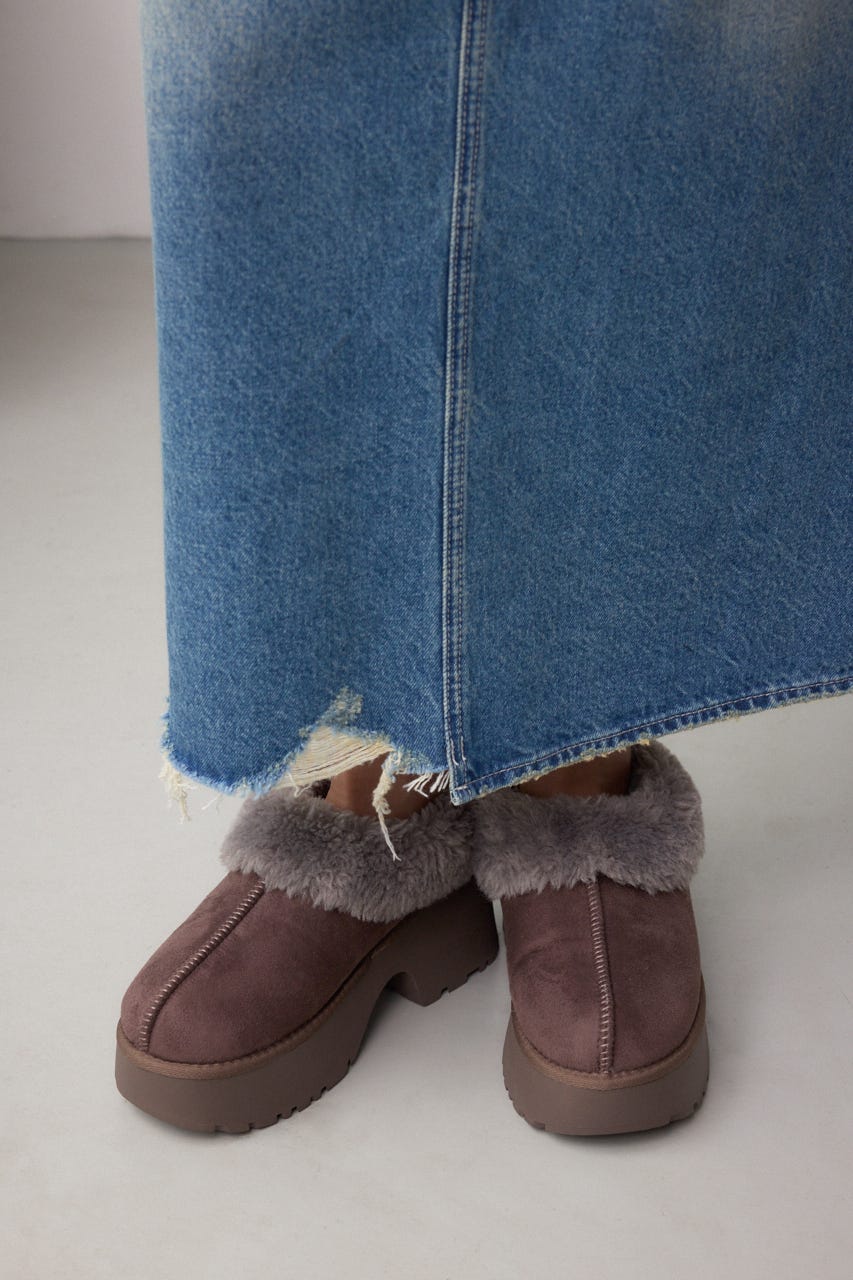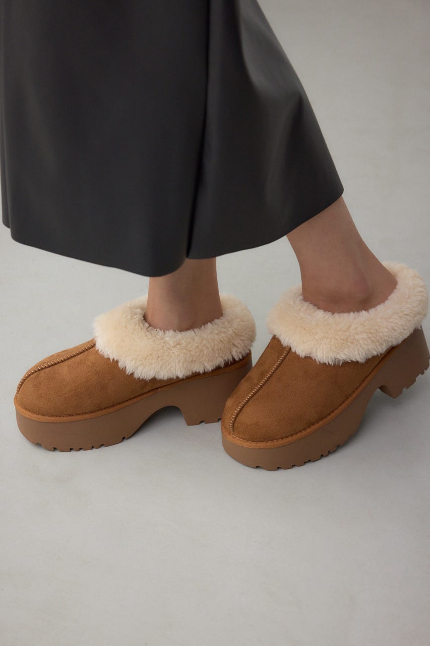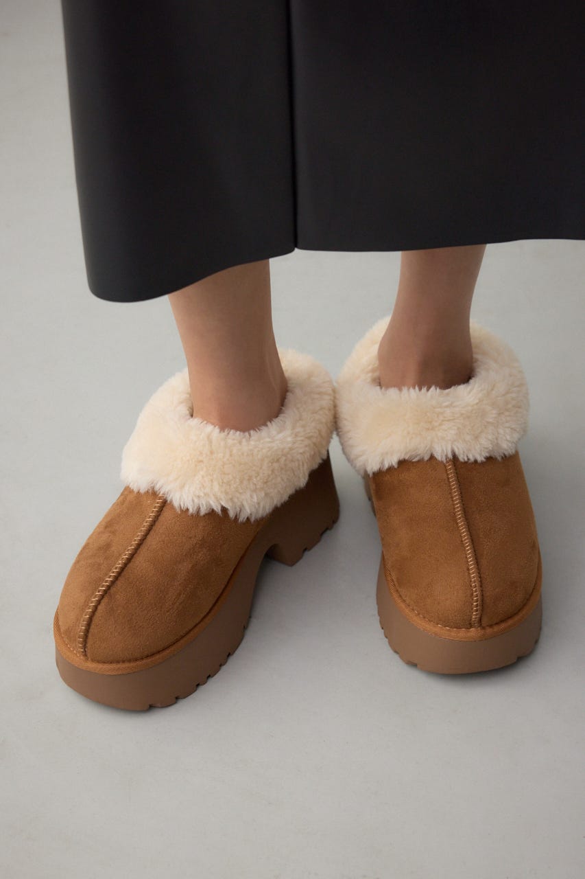 ボリュームソールとふわふわのボア風素材で、シーズンムードたっぷりのトレンドシューズ。