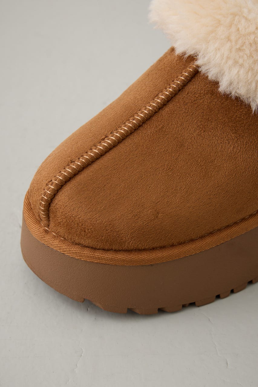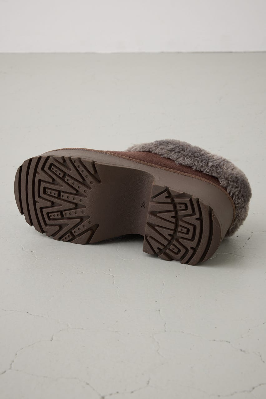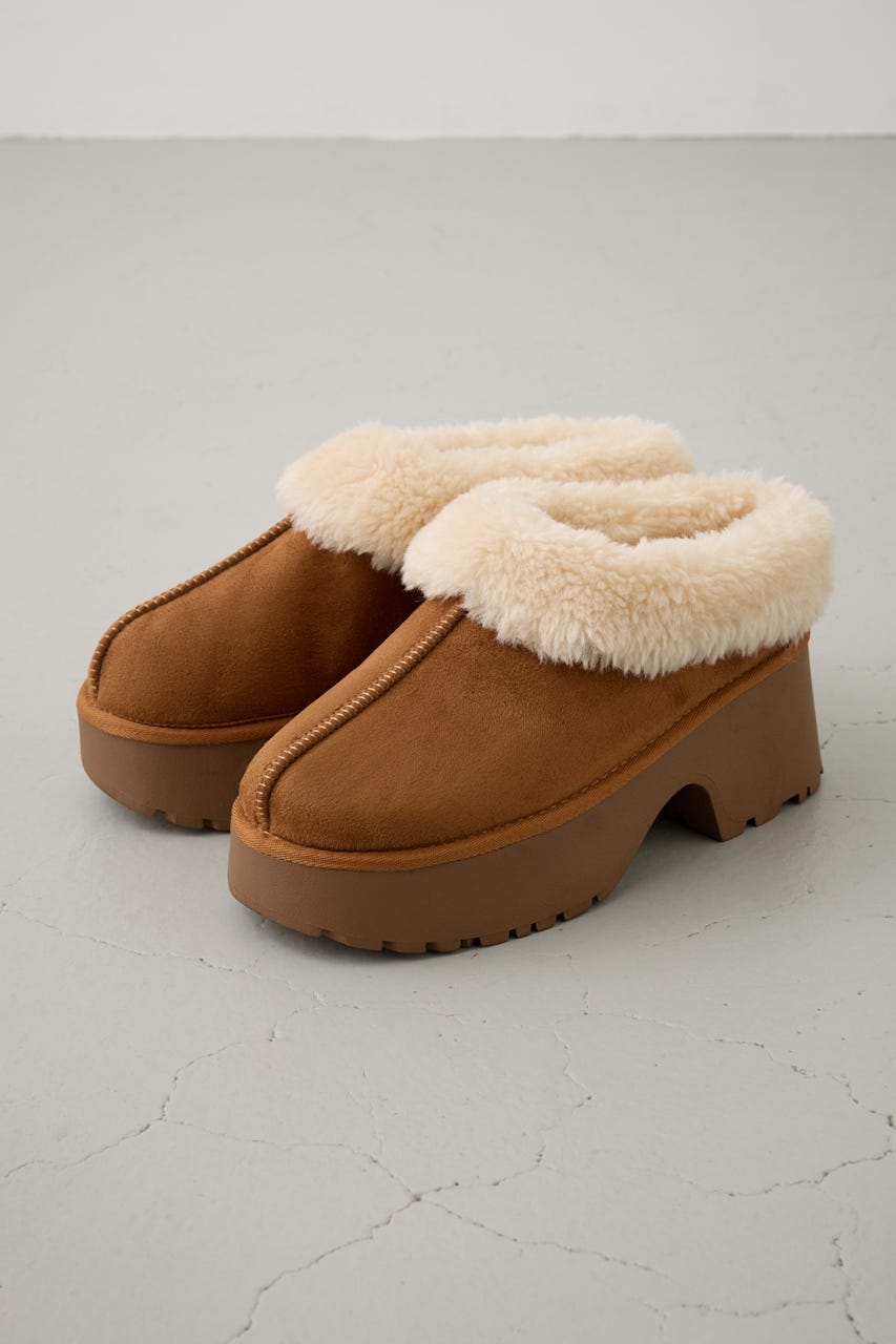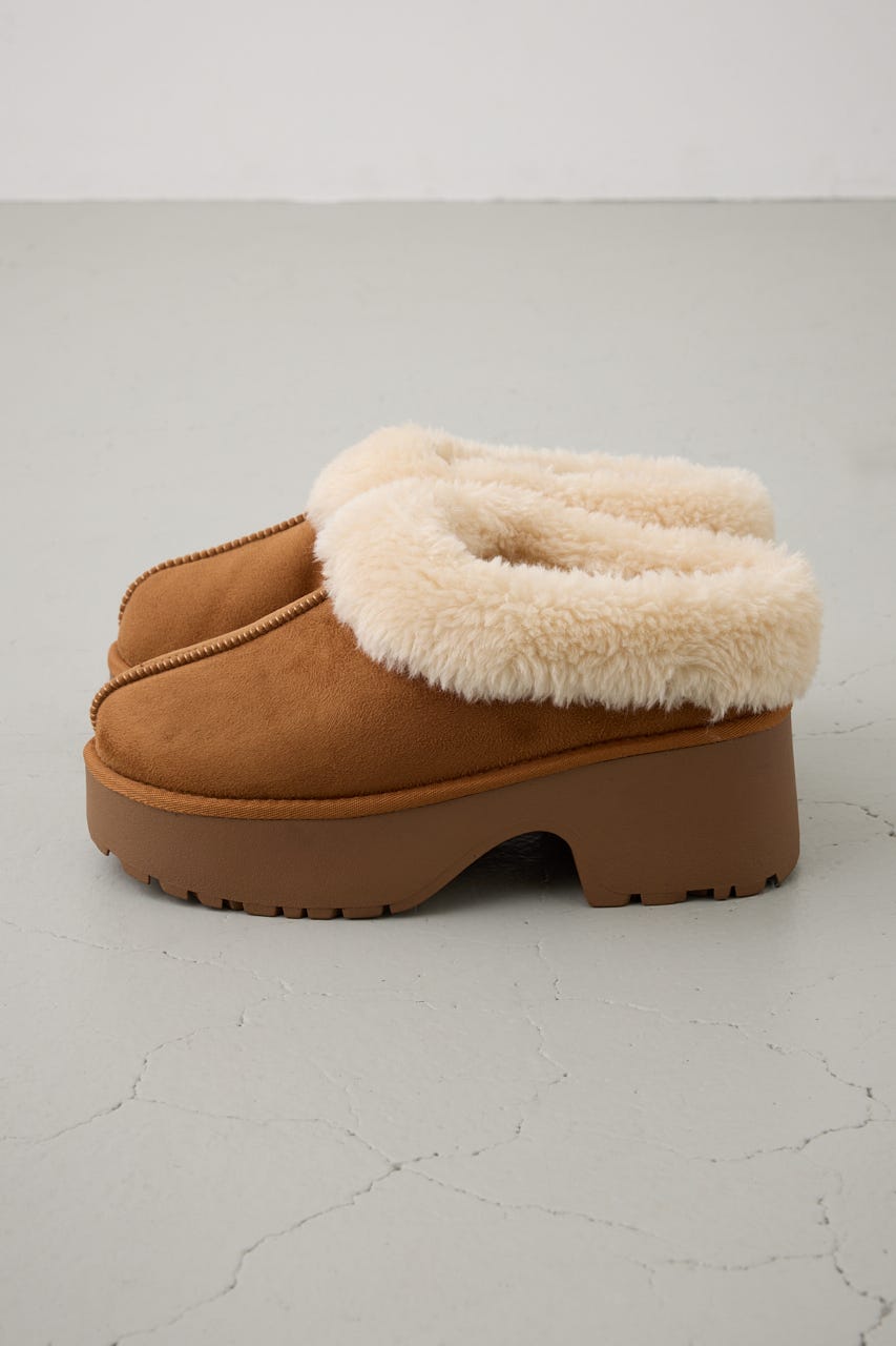 ボリュームソールとふわふわのボア風素材で、シーズンムードたっぷりのトレンドシューズ。