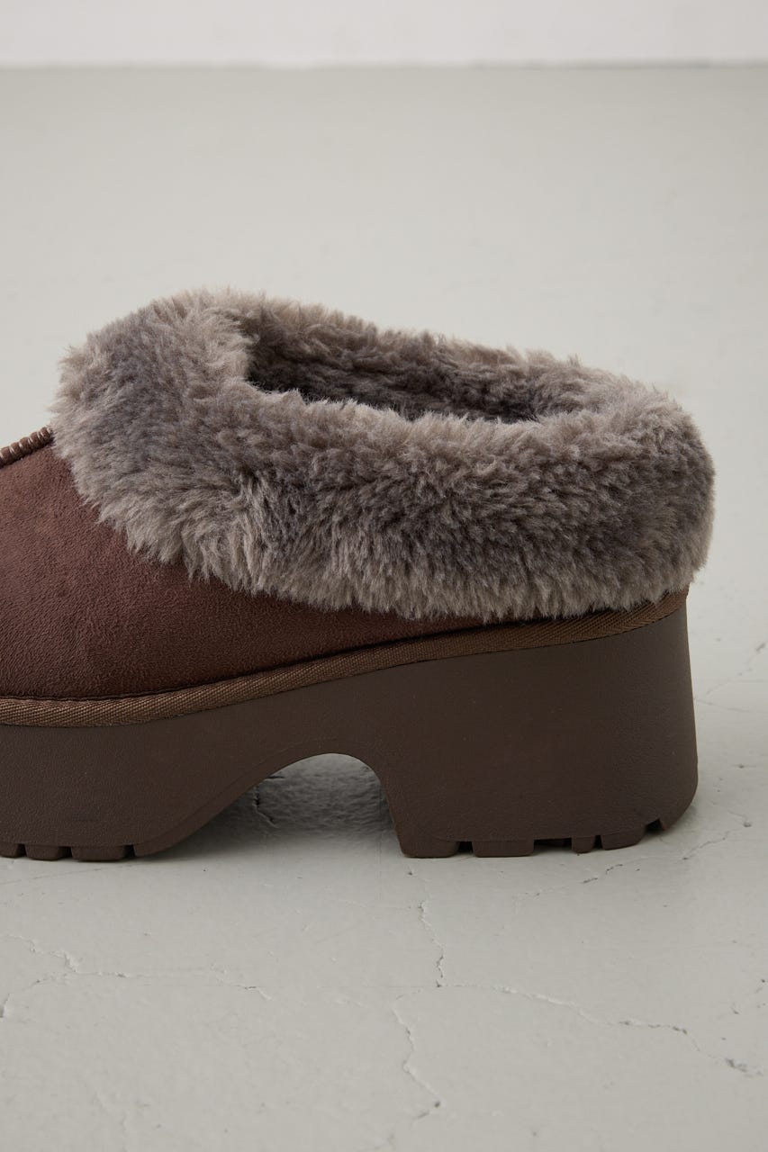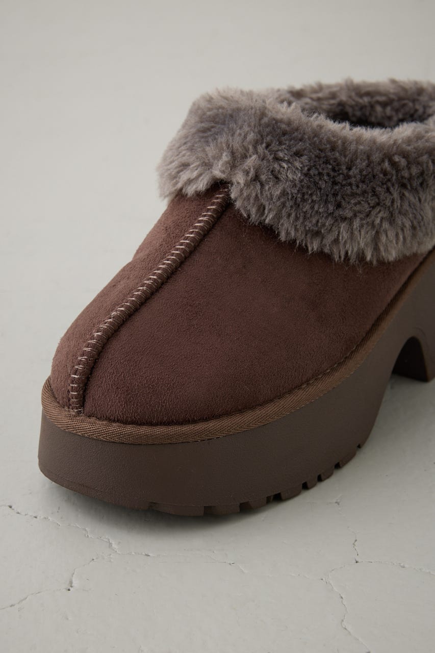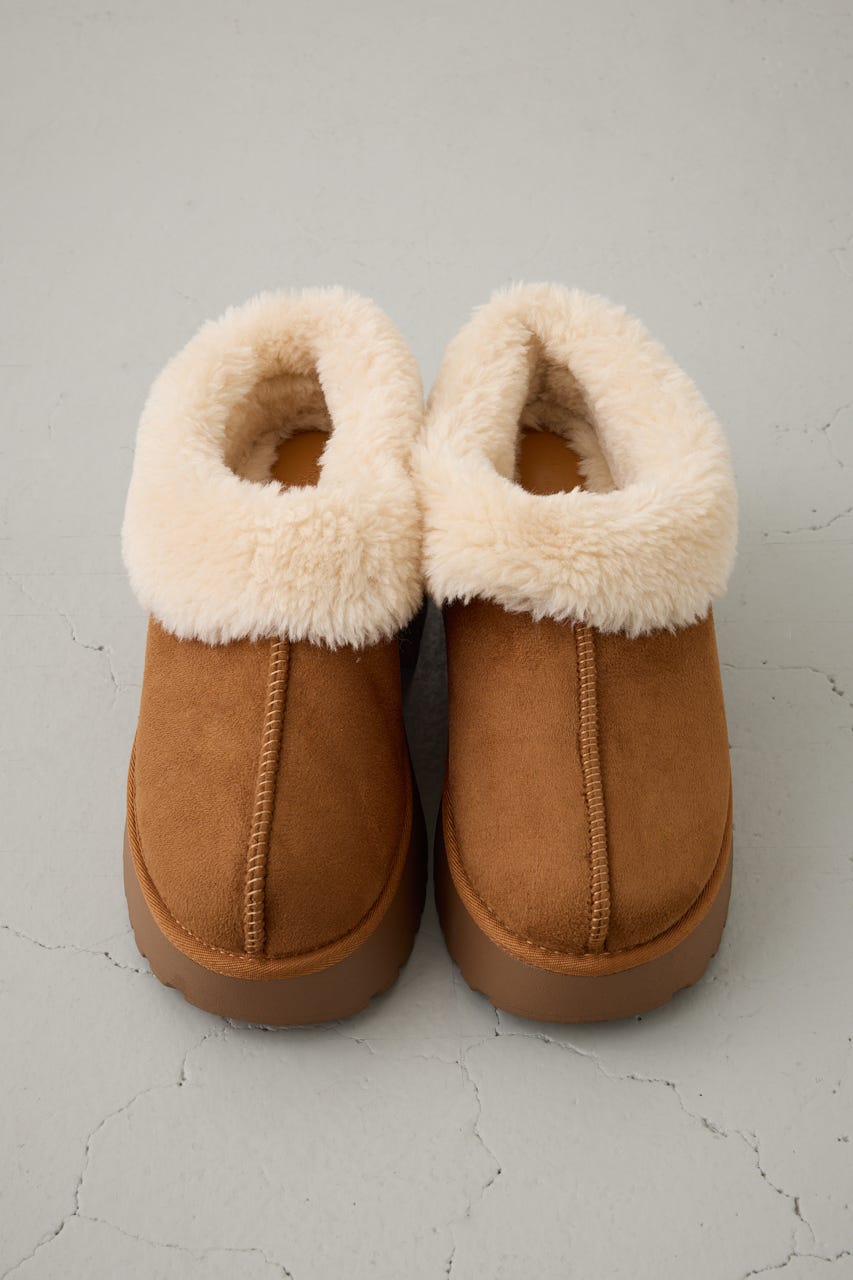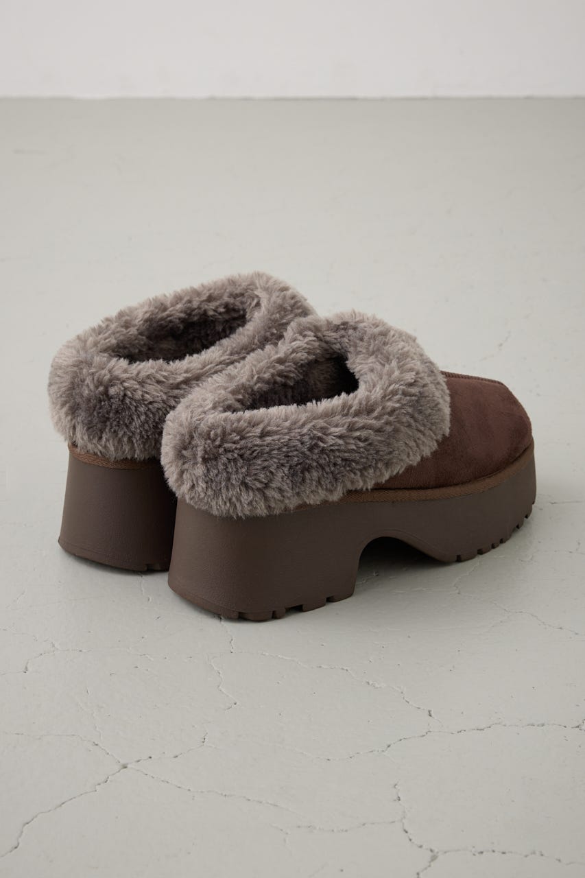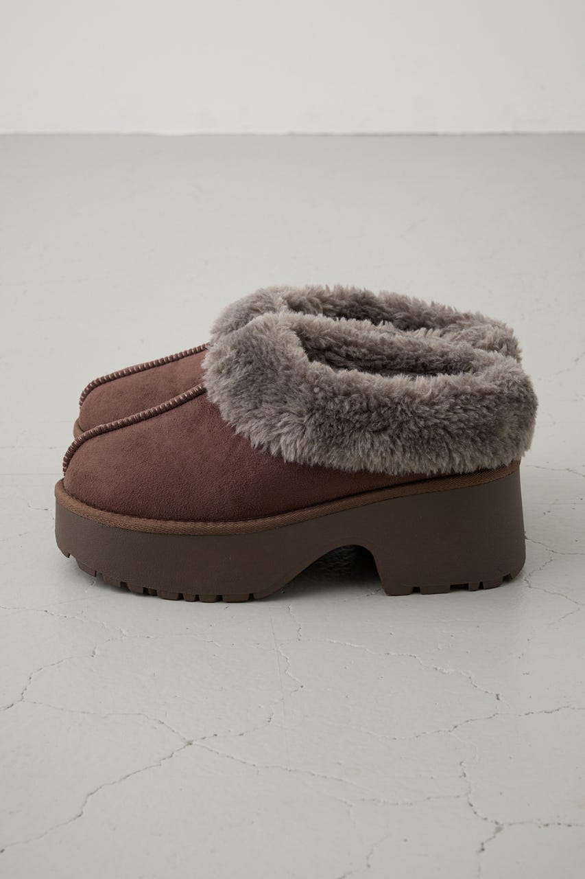 ボリュームソールとふわふわのボア風素材で、シーズンムードたっぷりのトレンドシューズ。