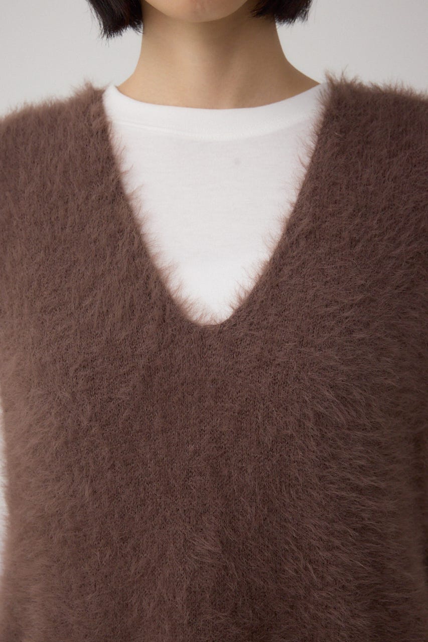 柔らかなシャギーニットで仕立てたゆったりとしたVネックニットベストです。