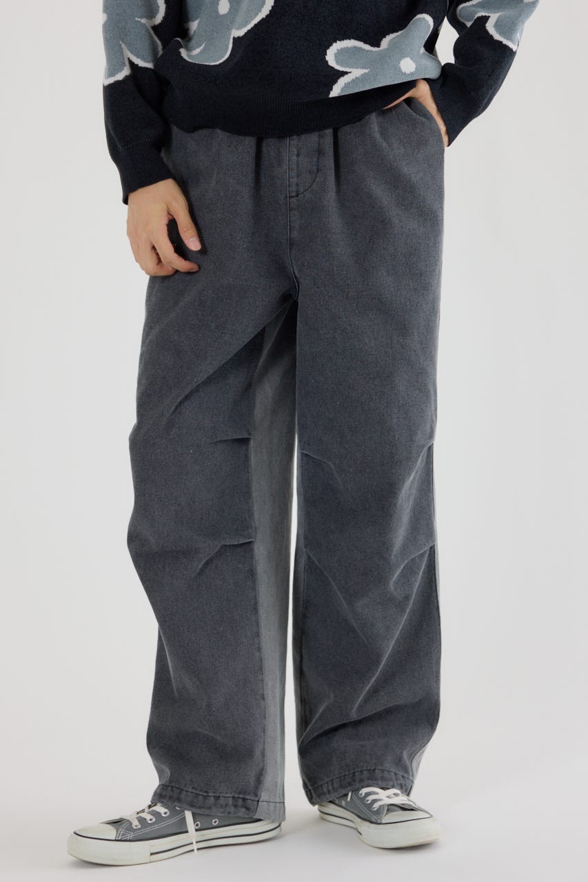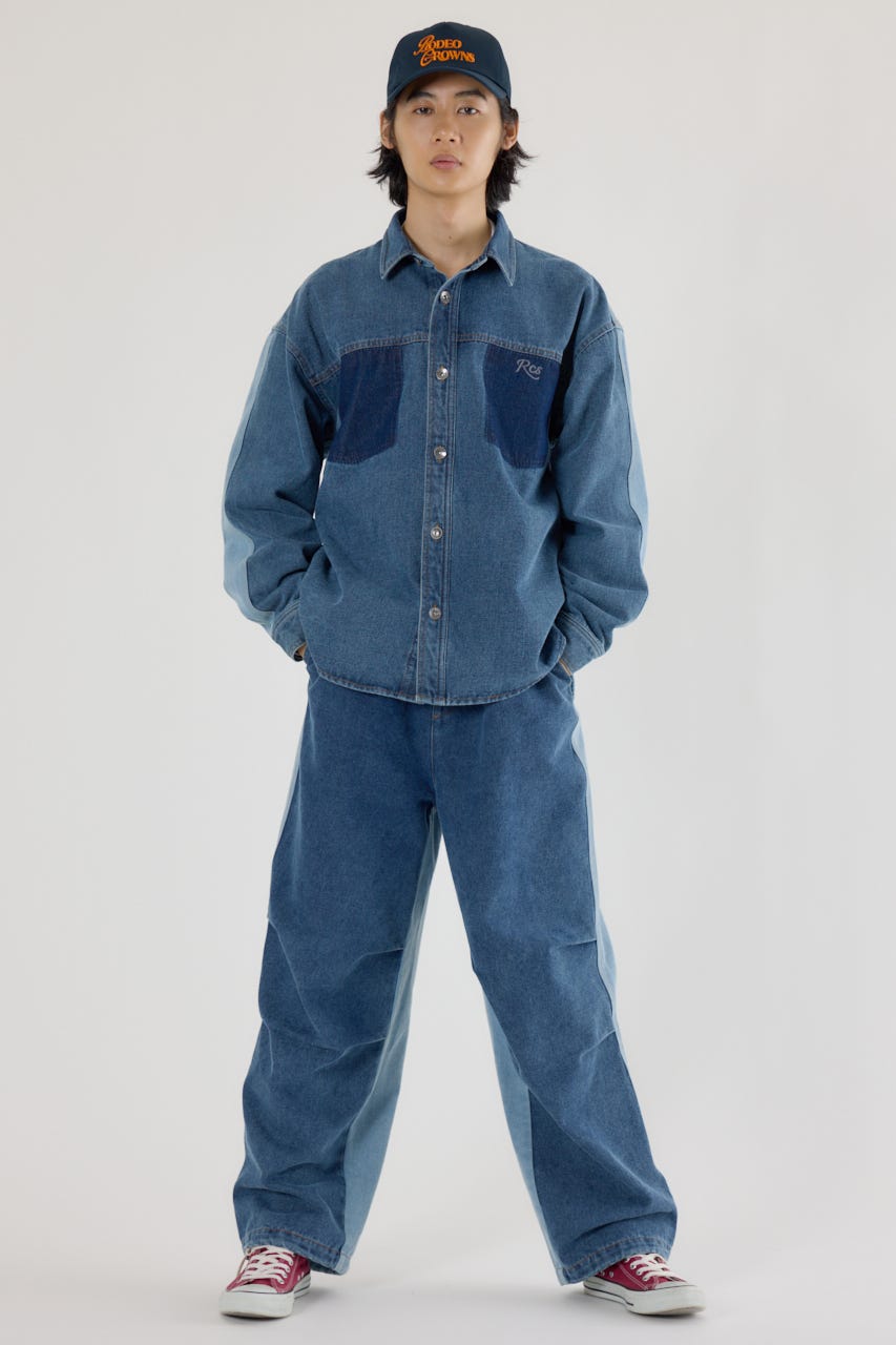 しっかりとしたデニム生地を使用し、ゆったりとしたシルエット。