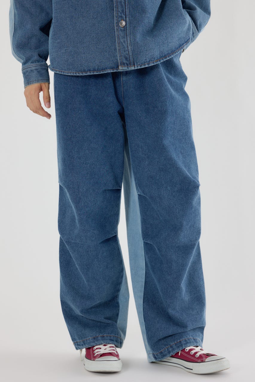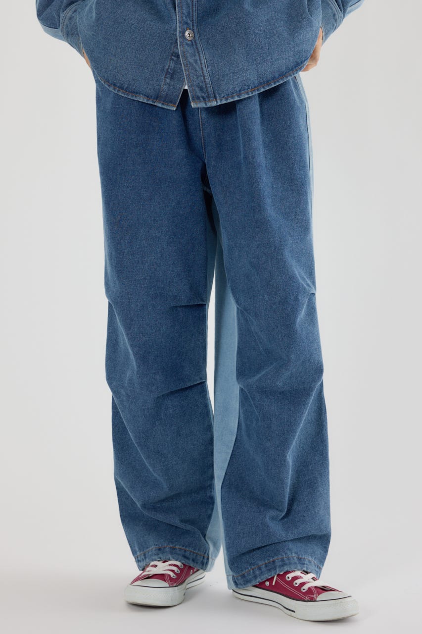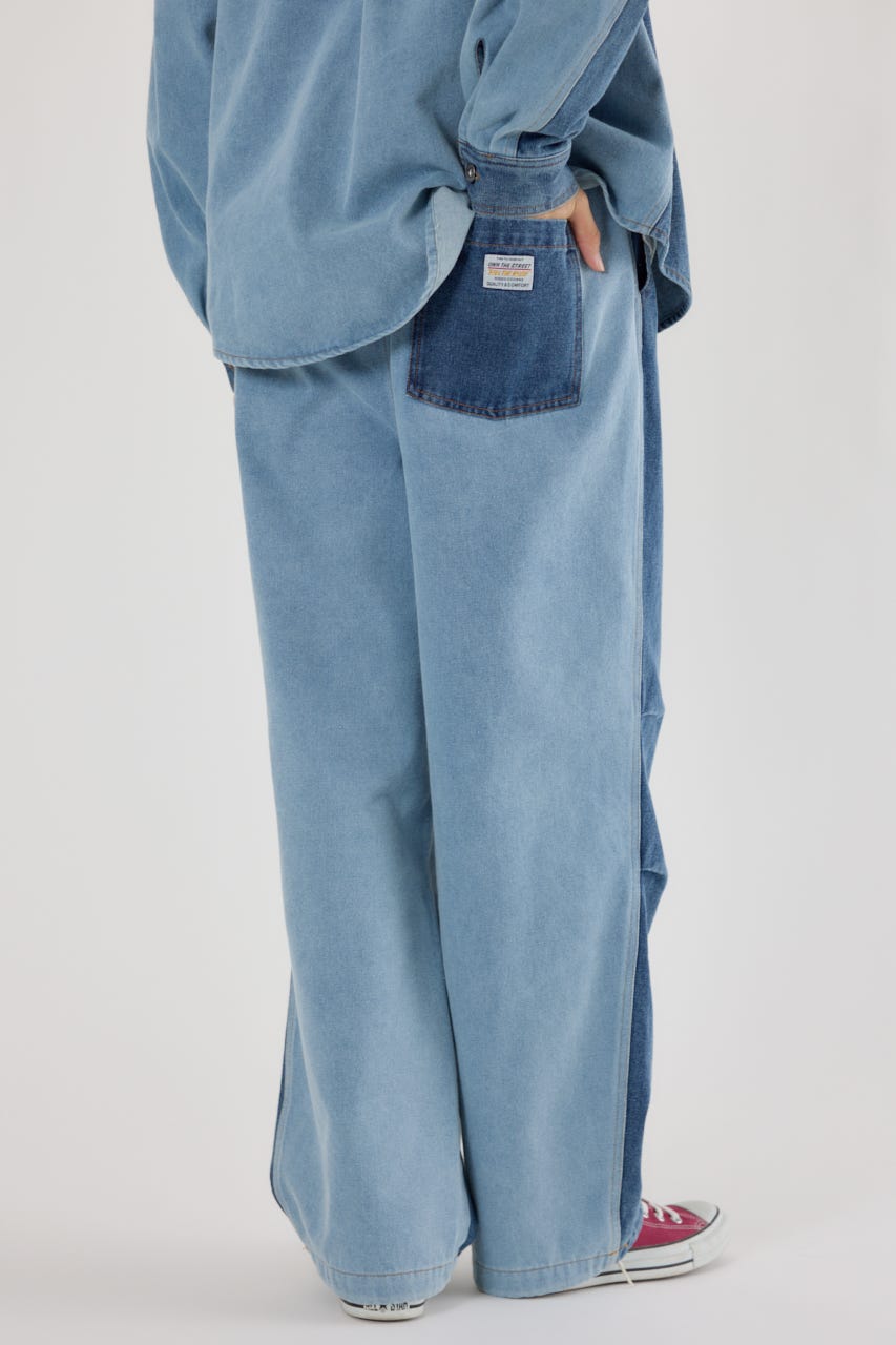 前後で濃淡の色差を出したヴィンテージ感のある加工デニムパンツ。
