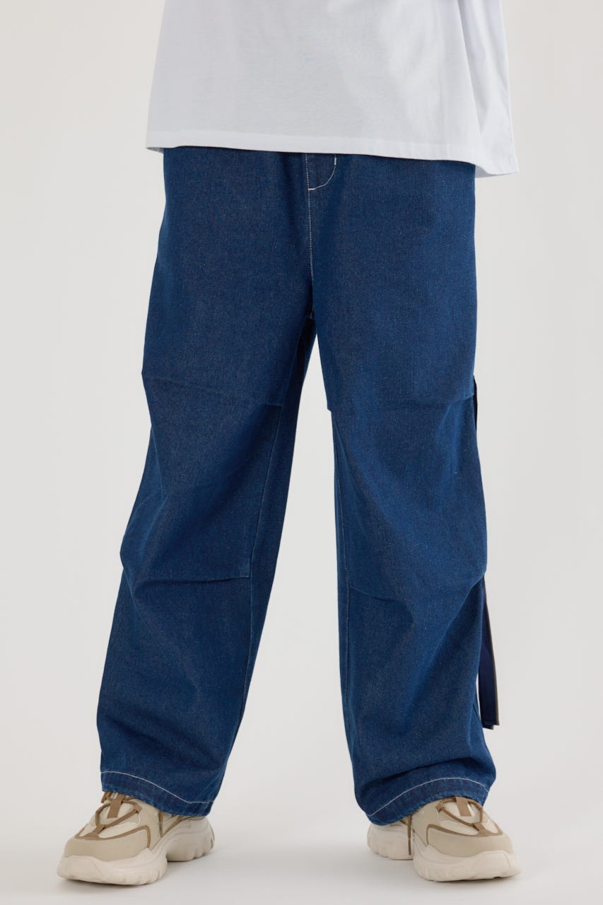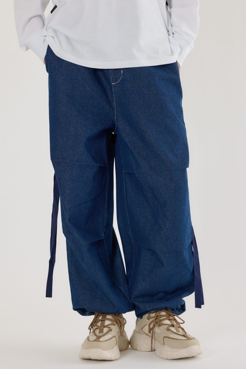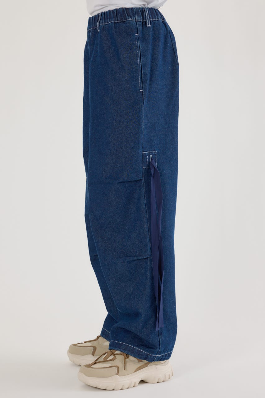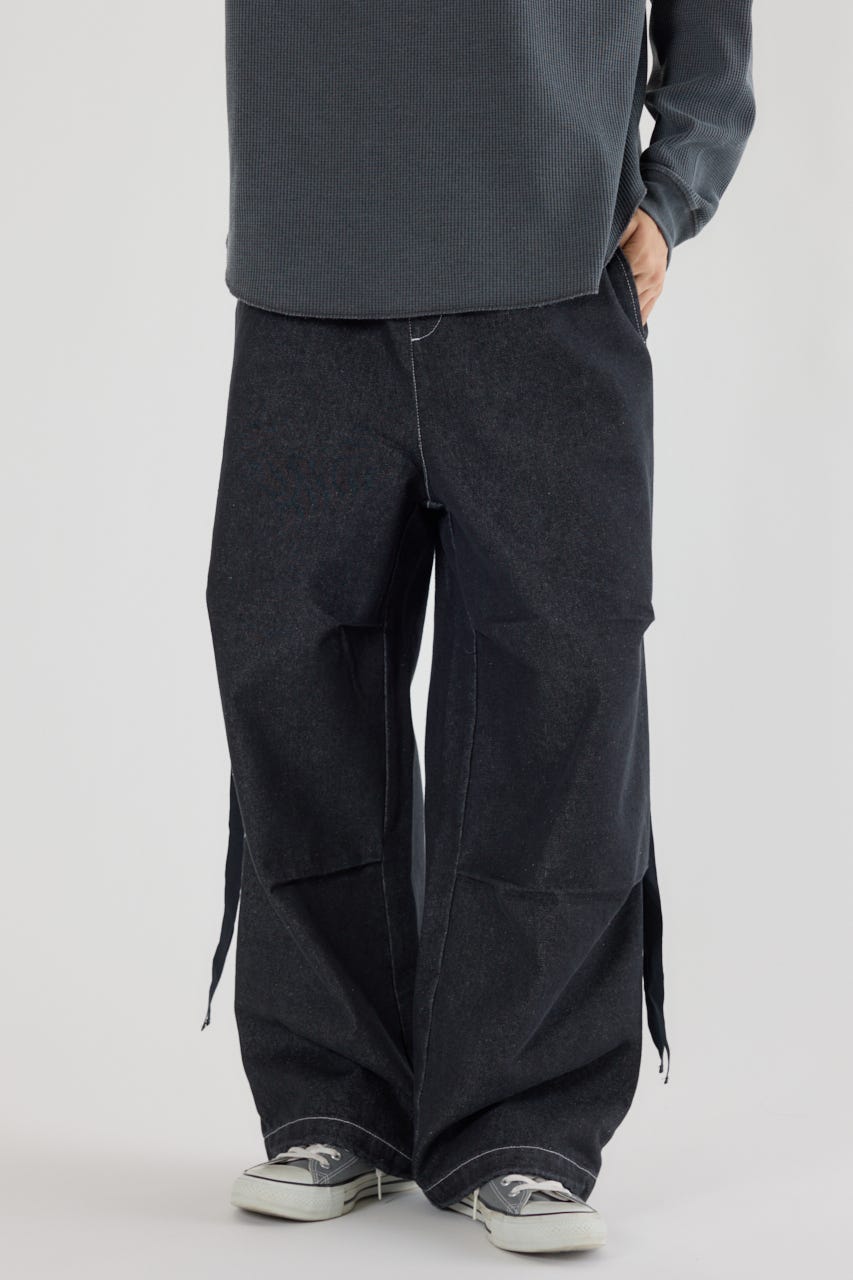 ミリタリーテイストのパラシュートパンツを、シンプルながらデザイン性のある1本に仕上げました。
