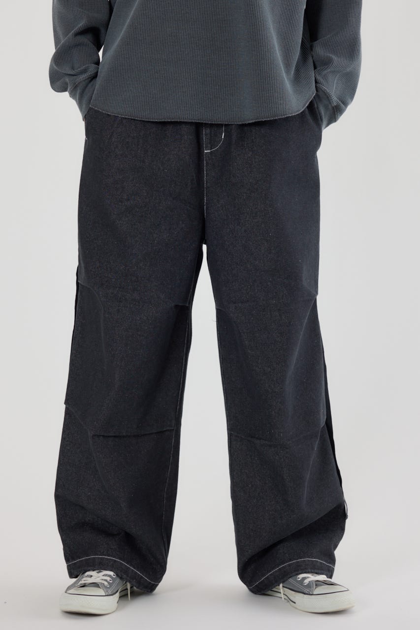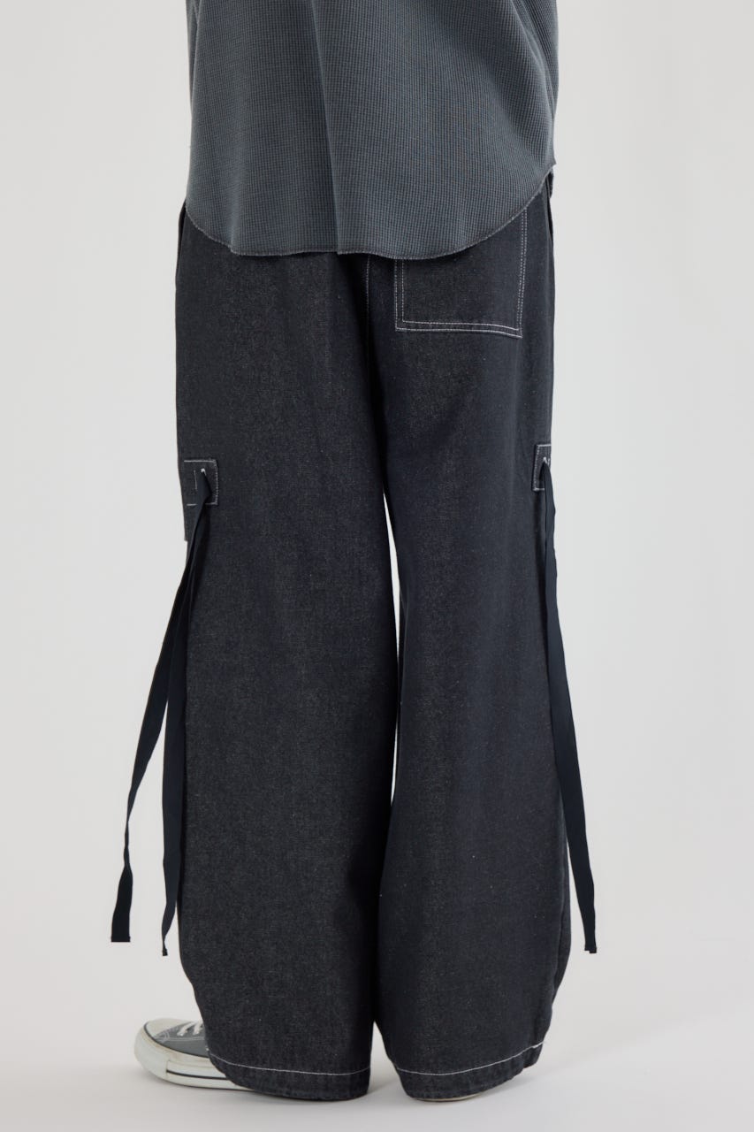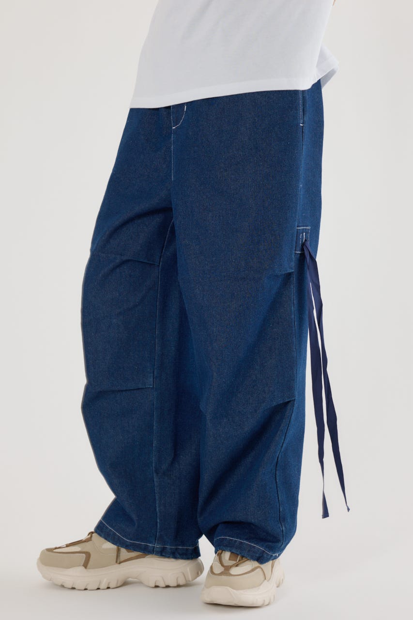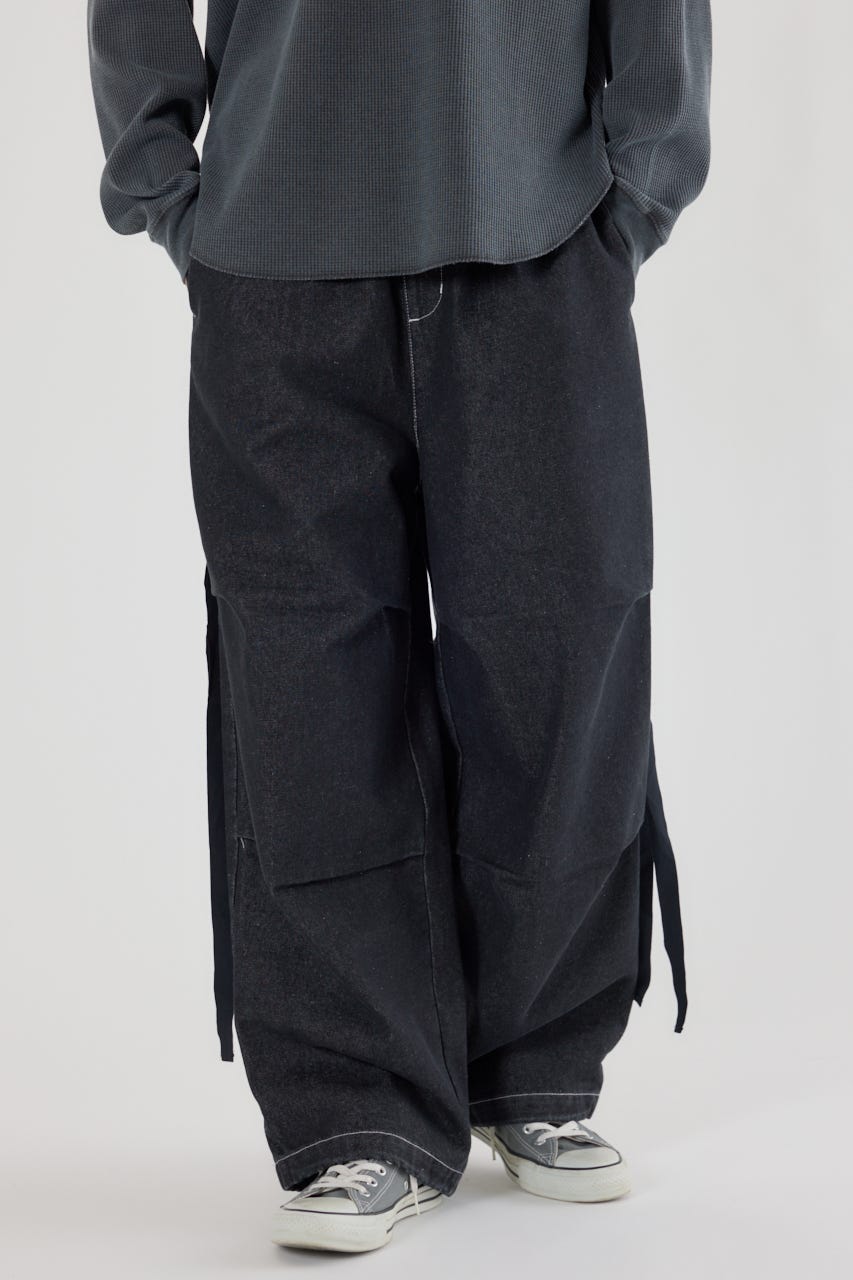 ミリタリーテイストのパラシュートパンツを、シンプルながらデザイン性のある1本に仕上げました。