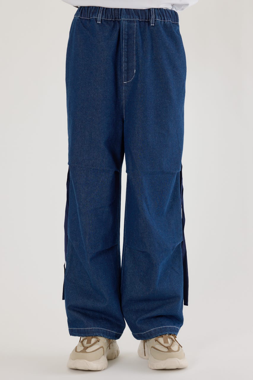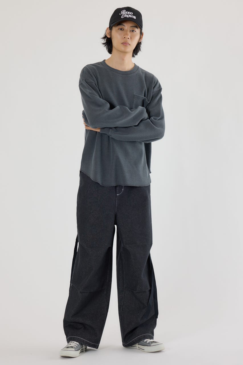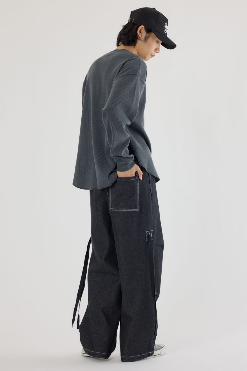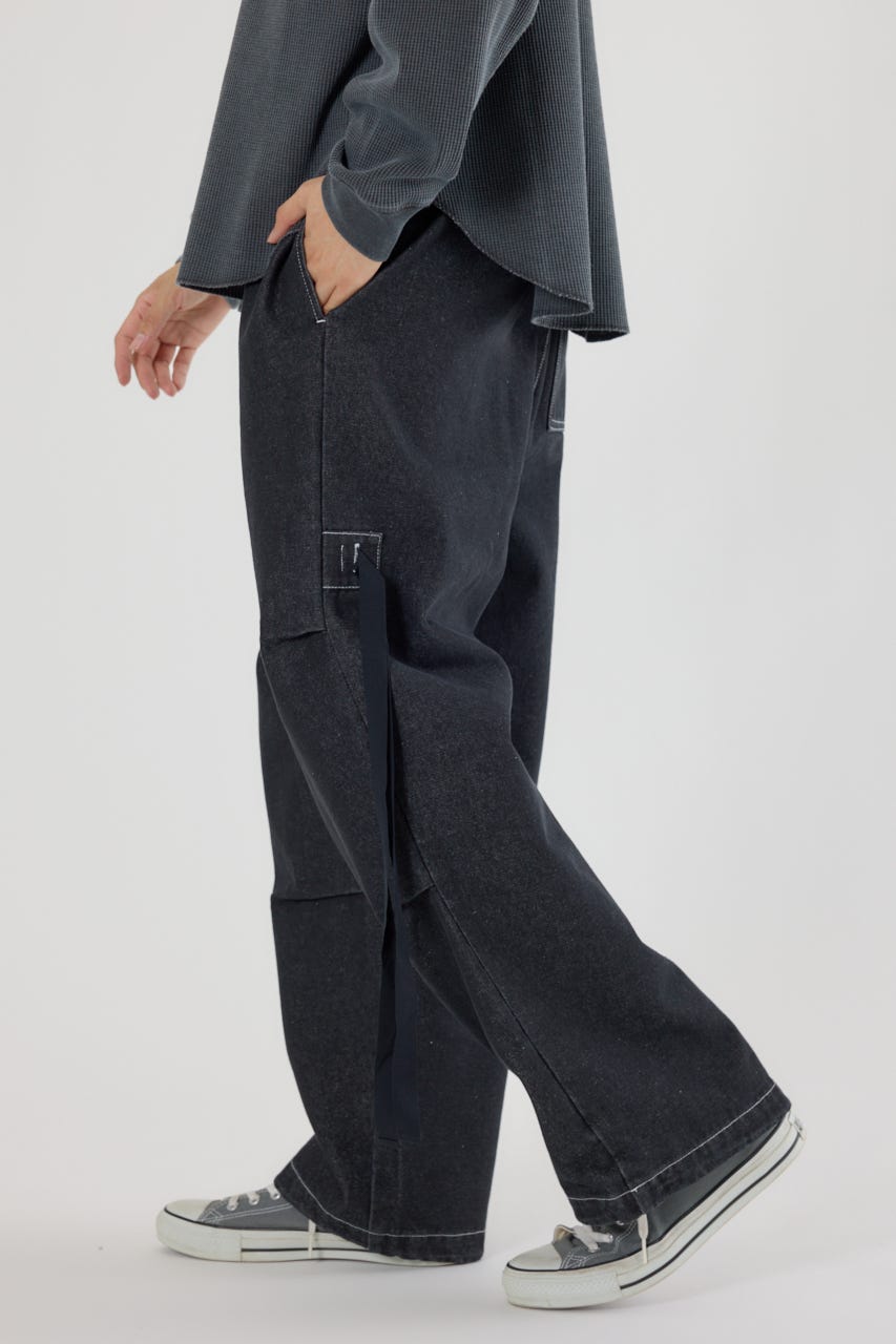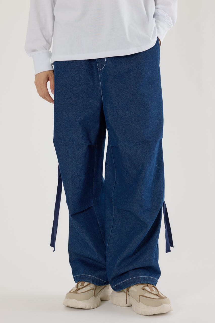 ワイドシルエットで膝のタックにより快適な着用感です。