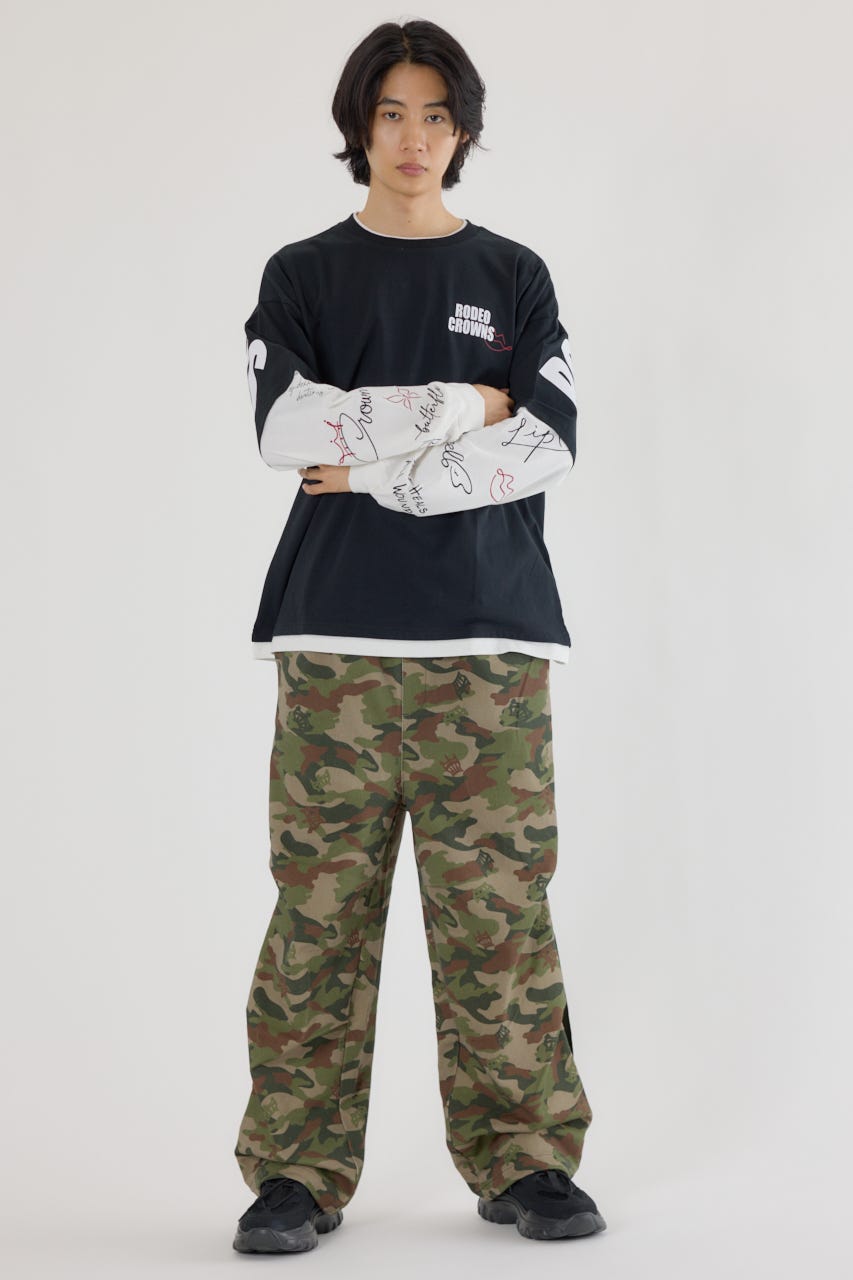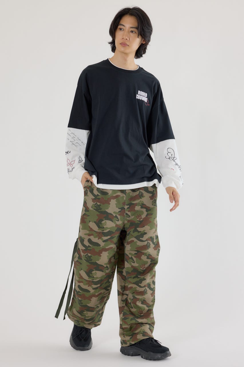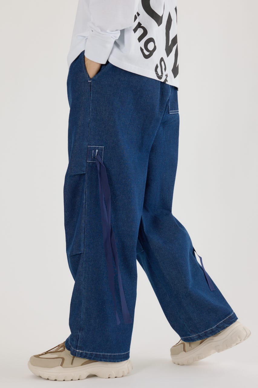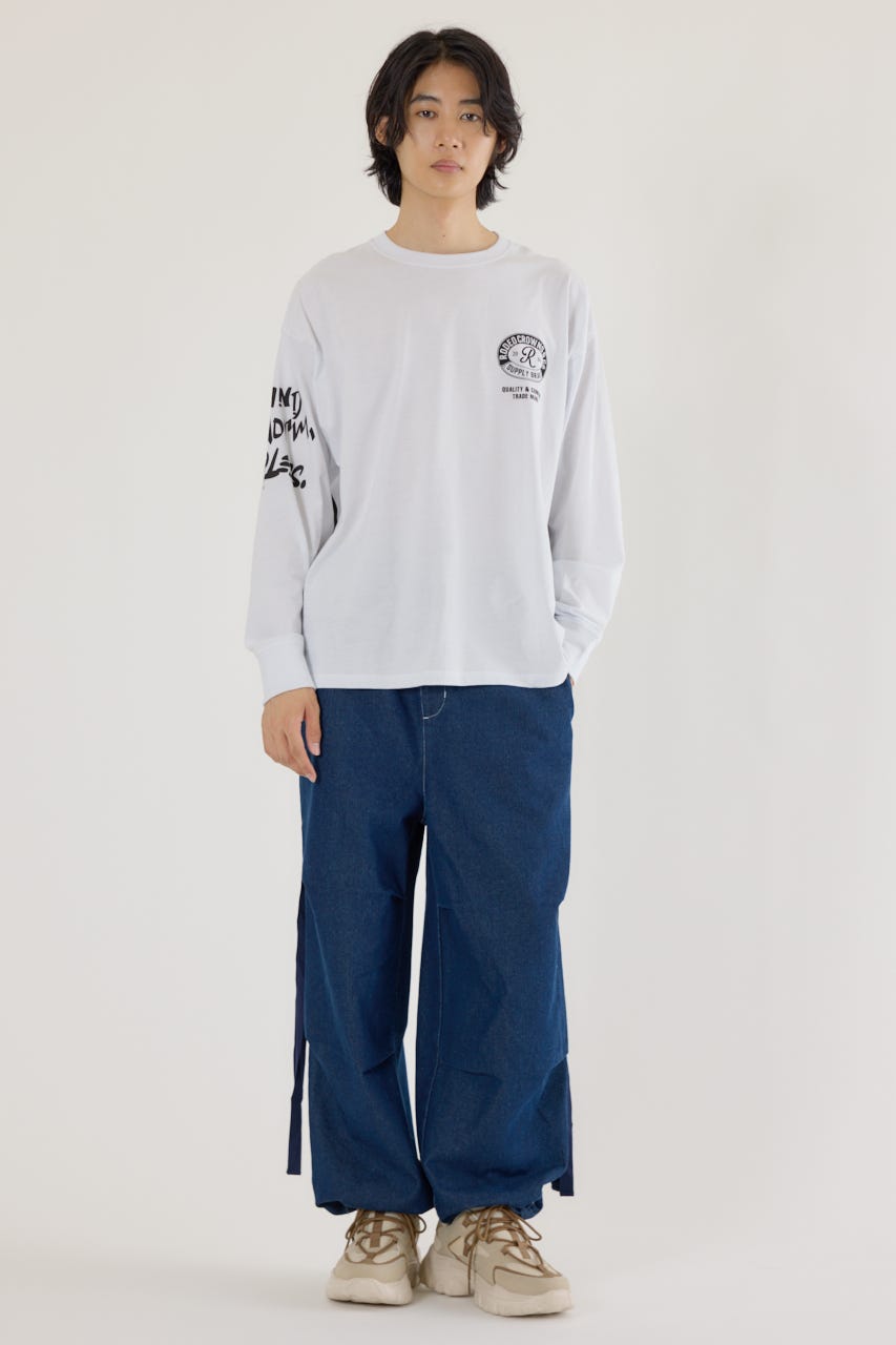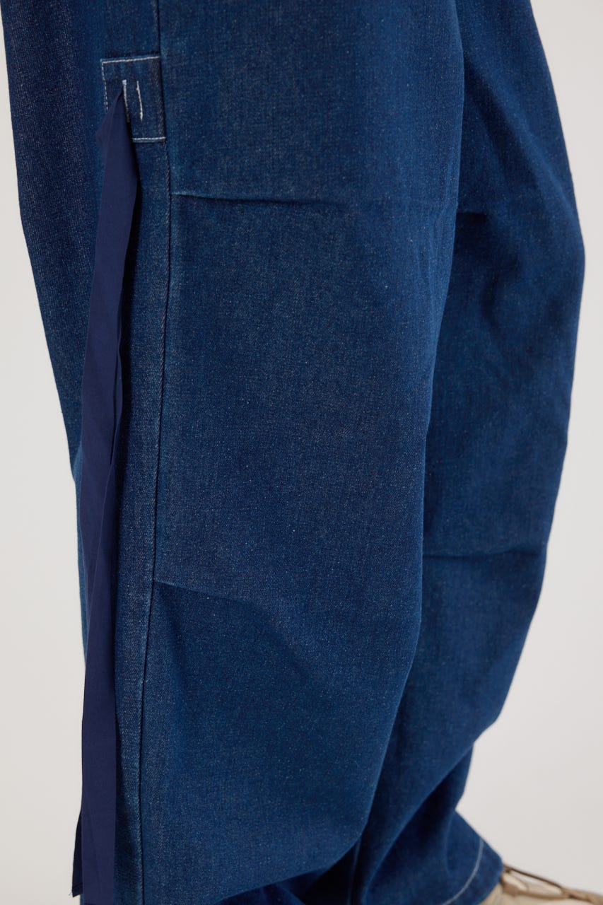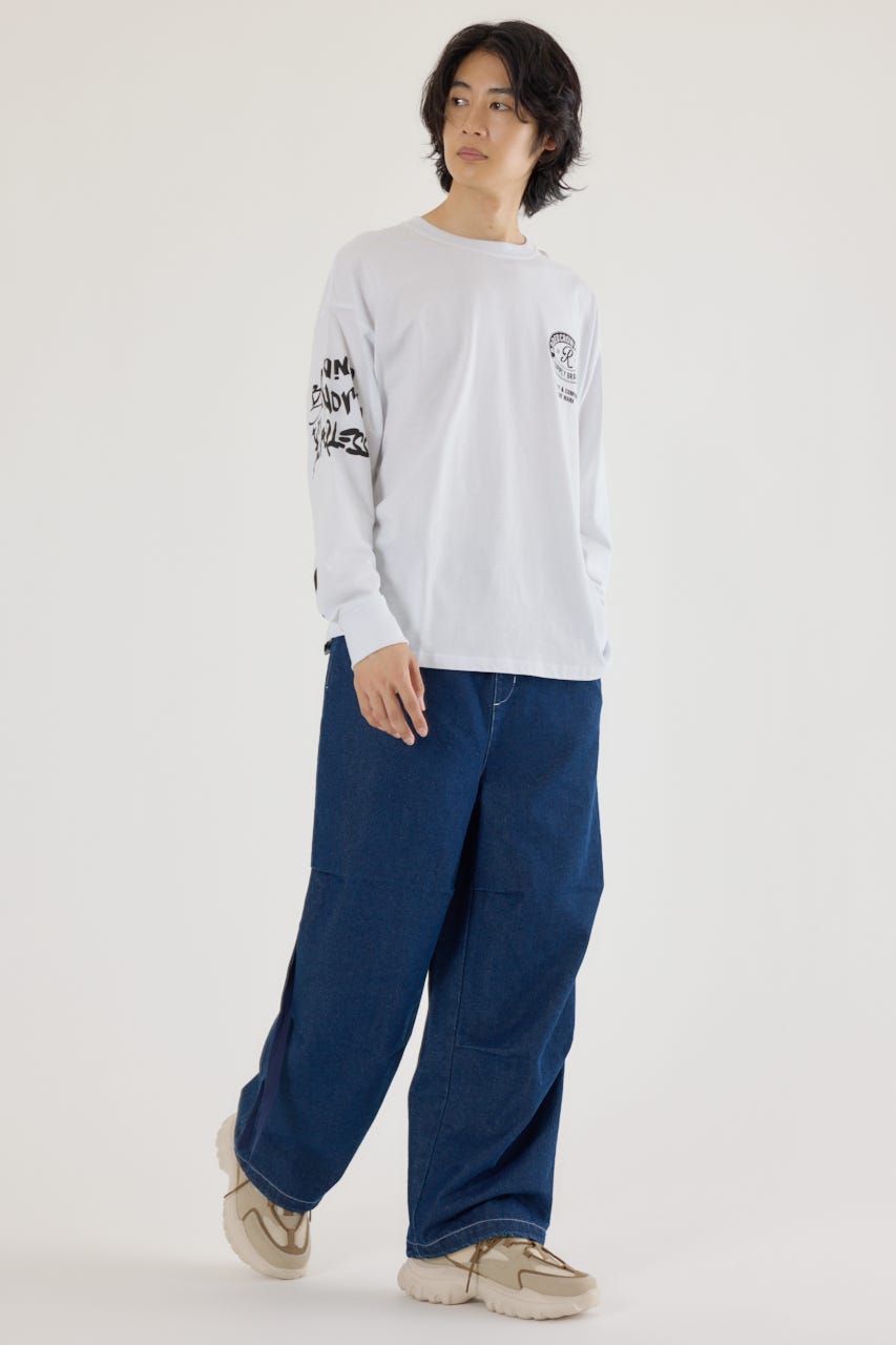 ワイドシルエットで膝のタックにより快適な着用感です。