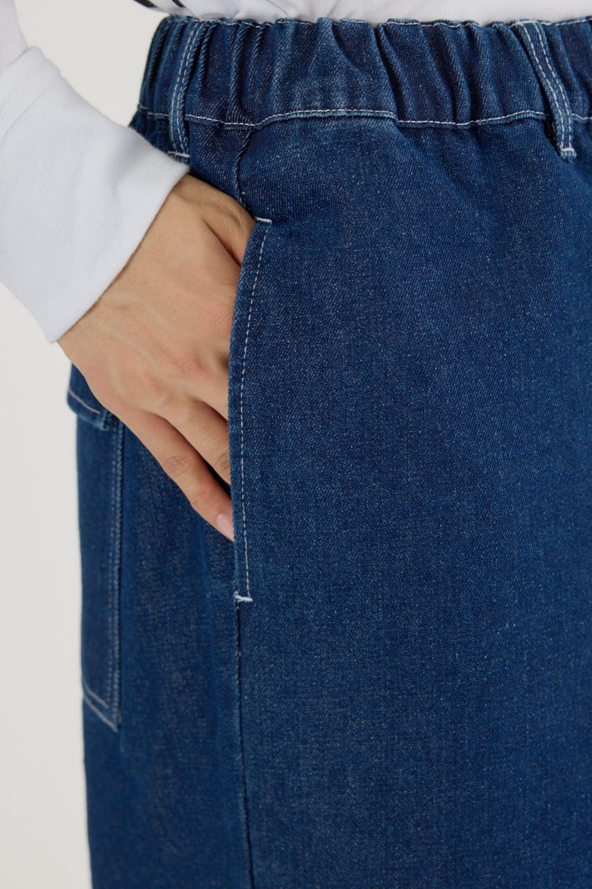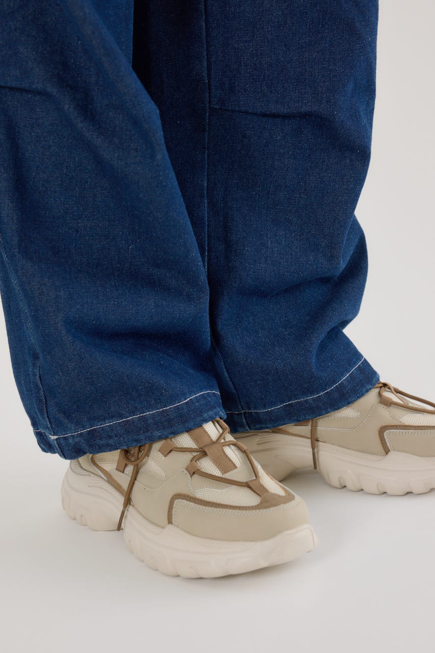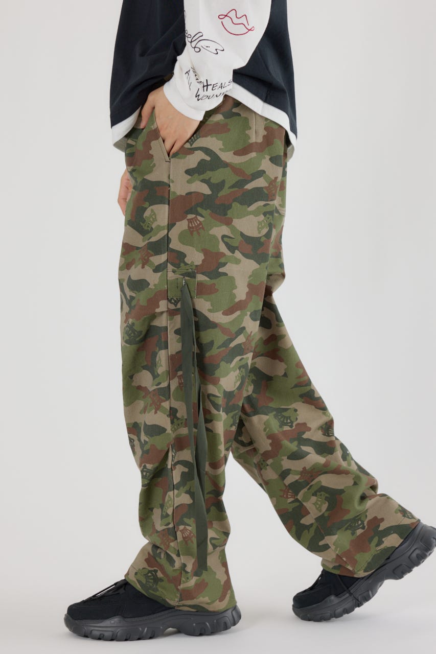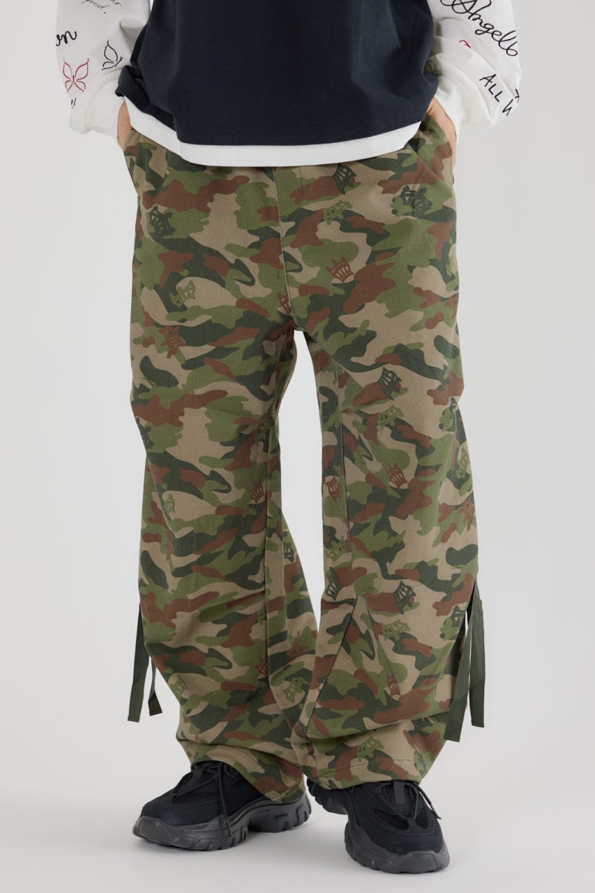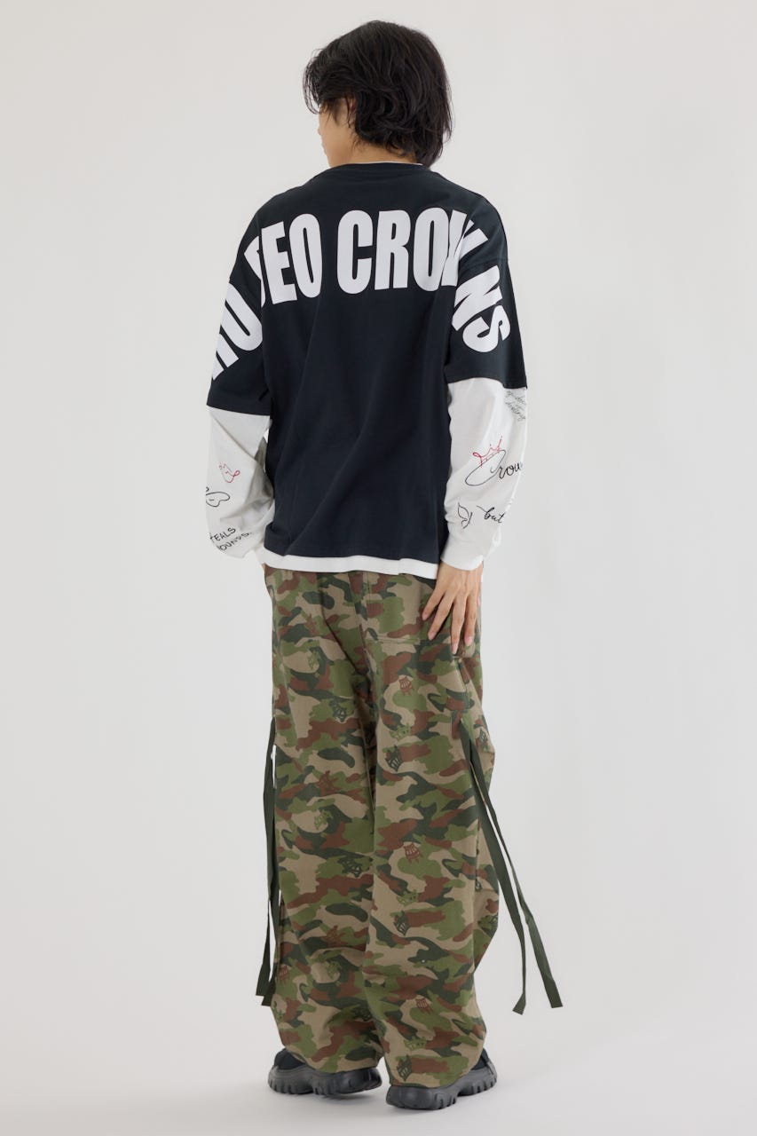 ワイドシルエットで膝のタックにより快適な着用感です。