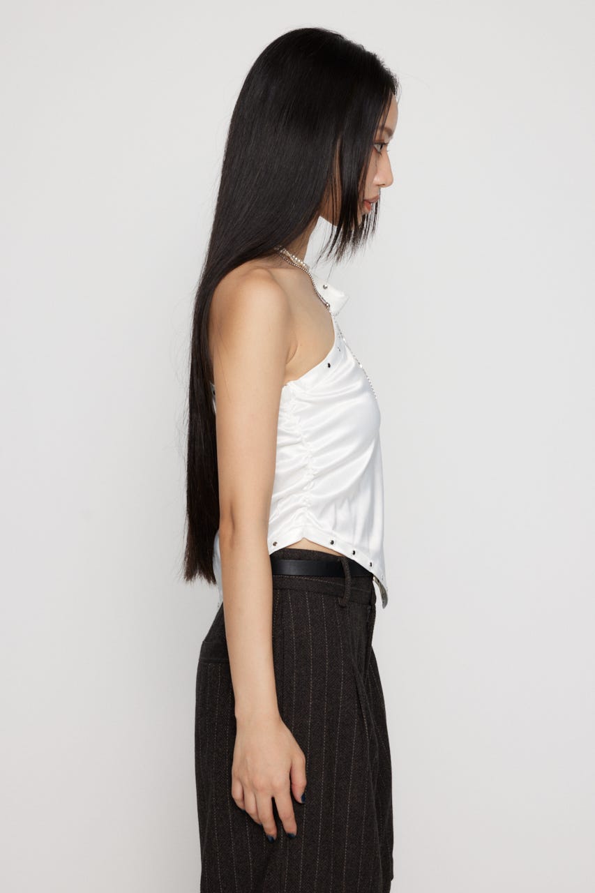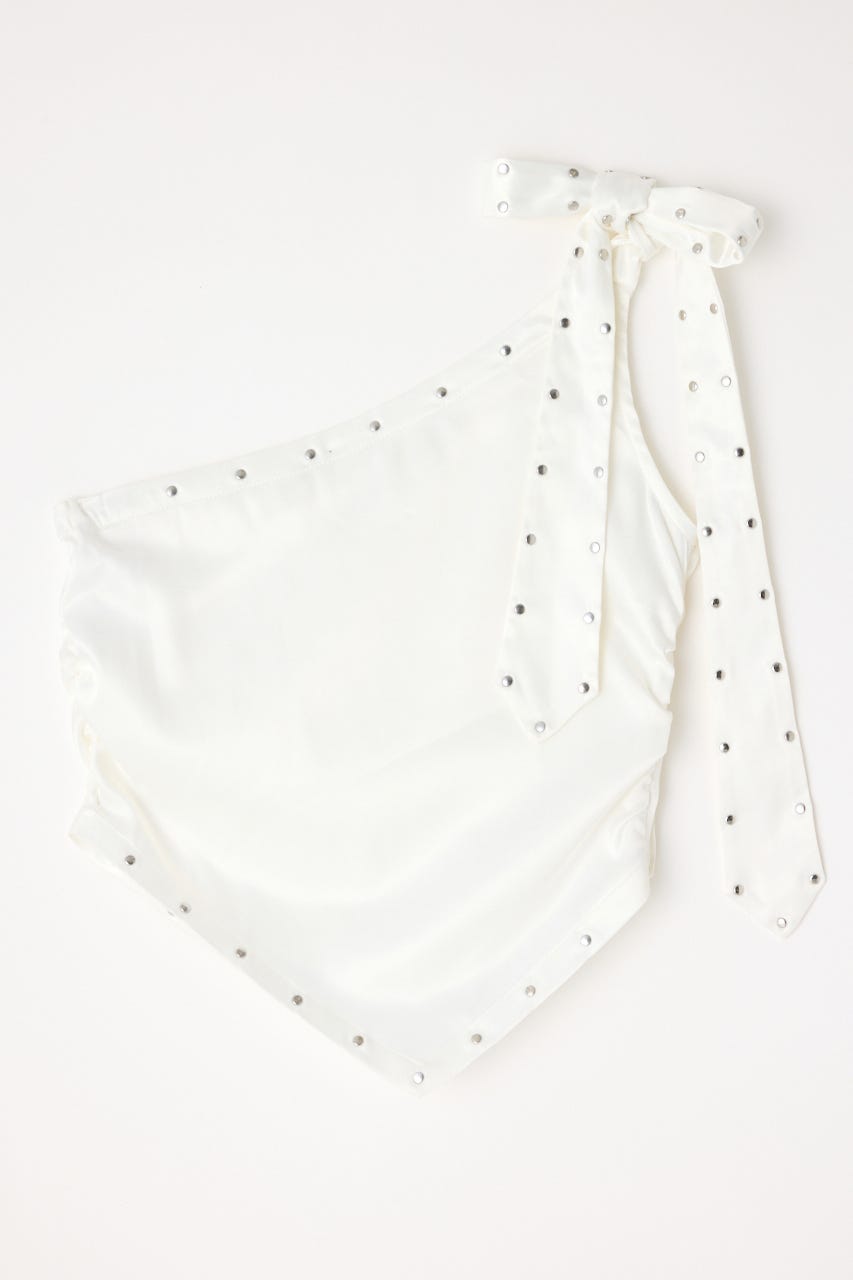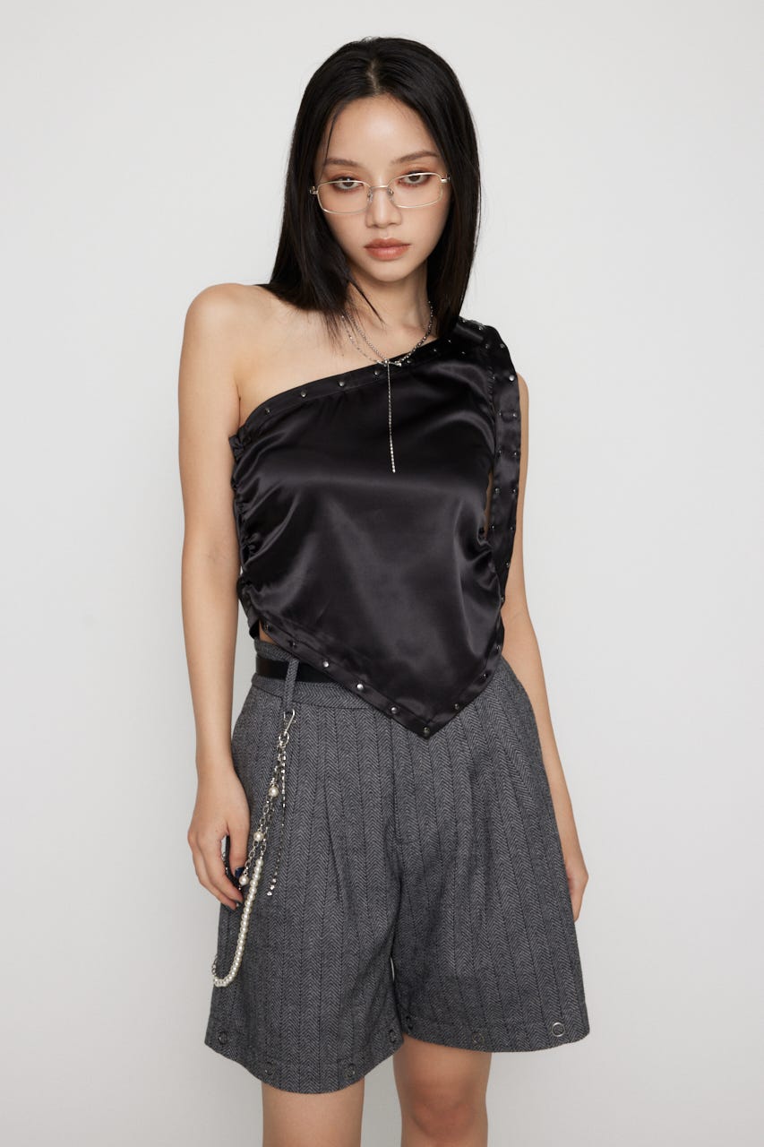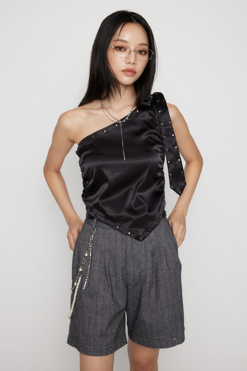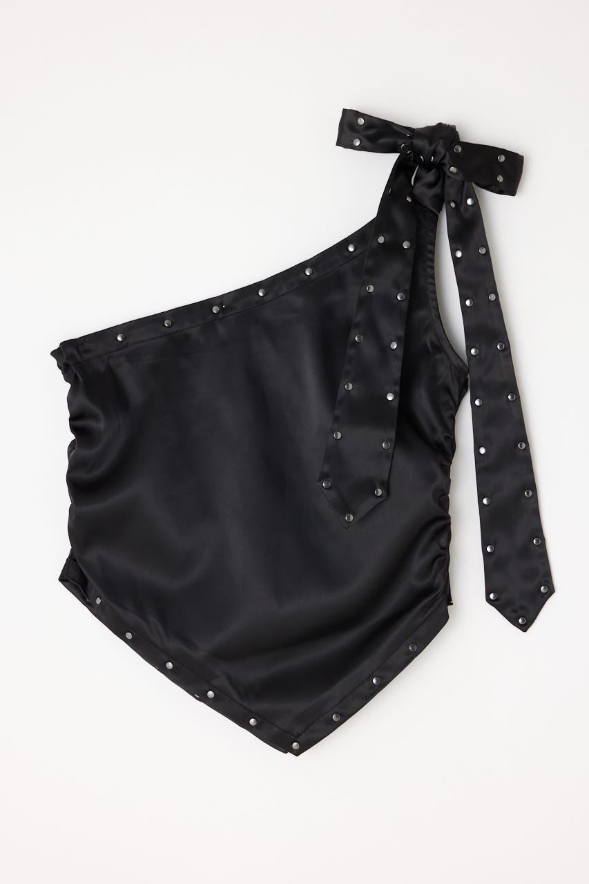 ■POINT:サテンの光沢感とスタッズが存在感のあるトップス。