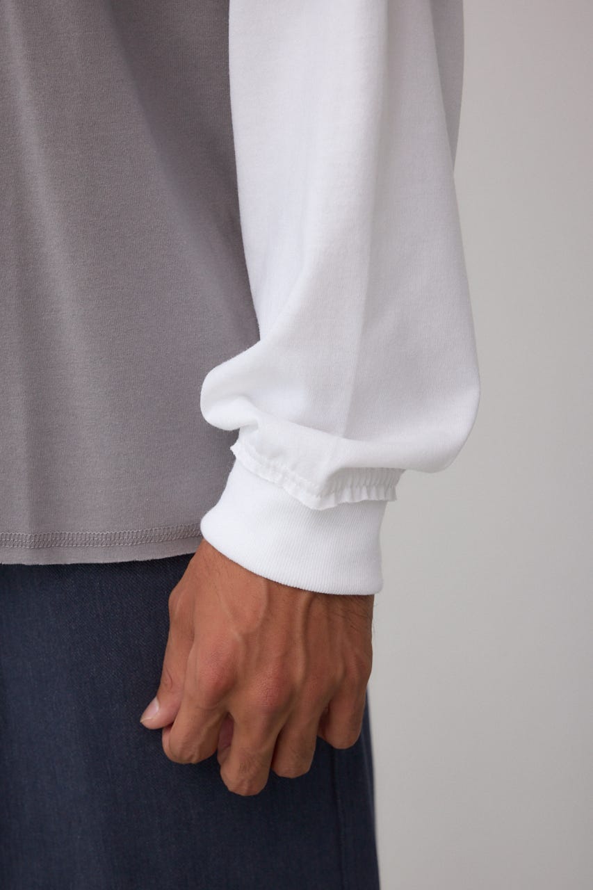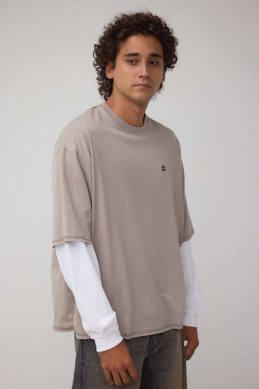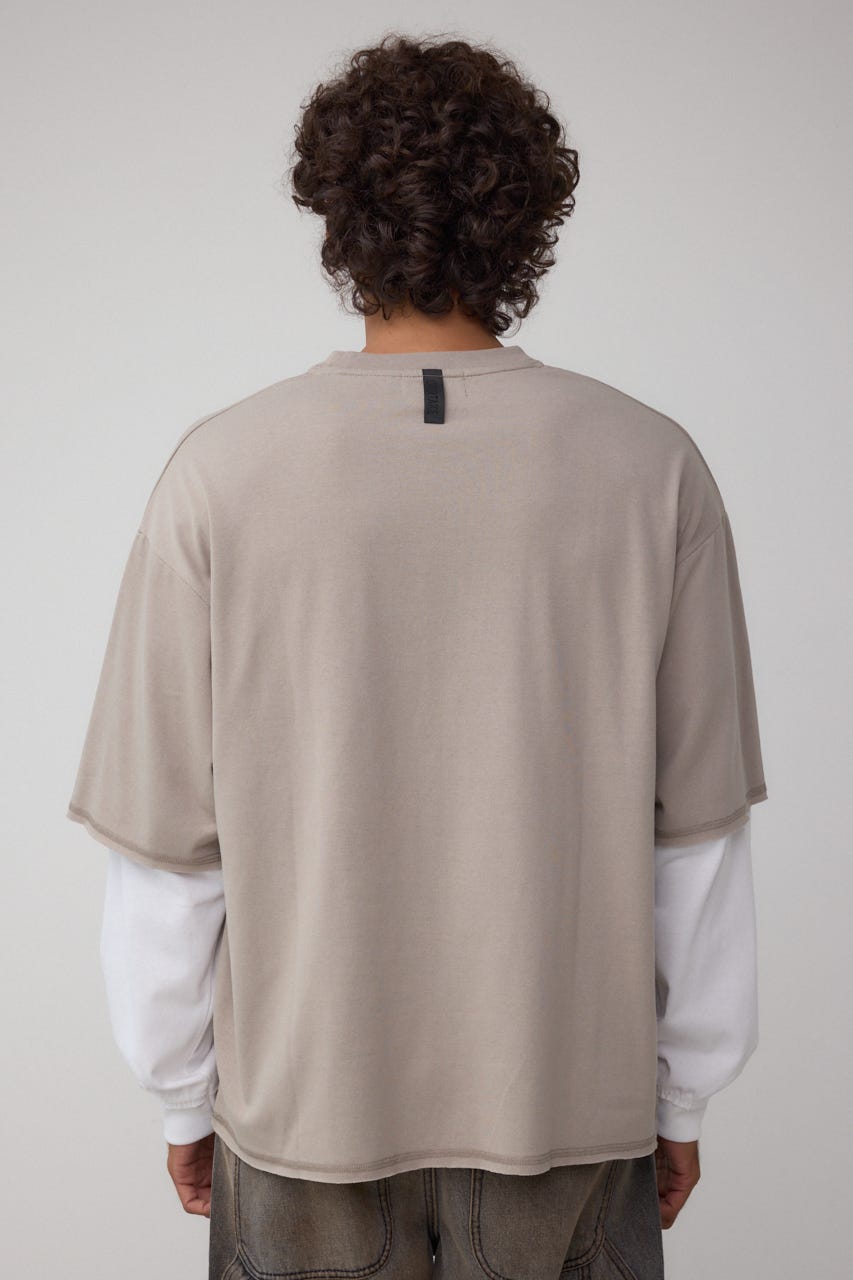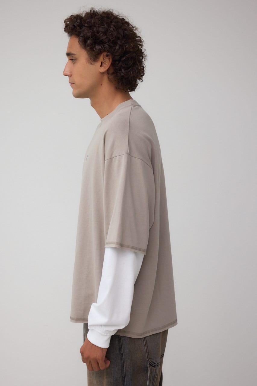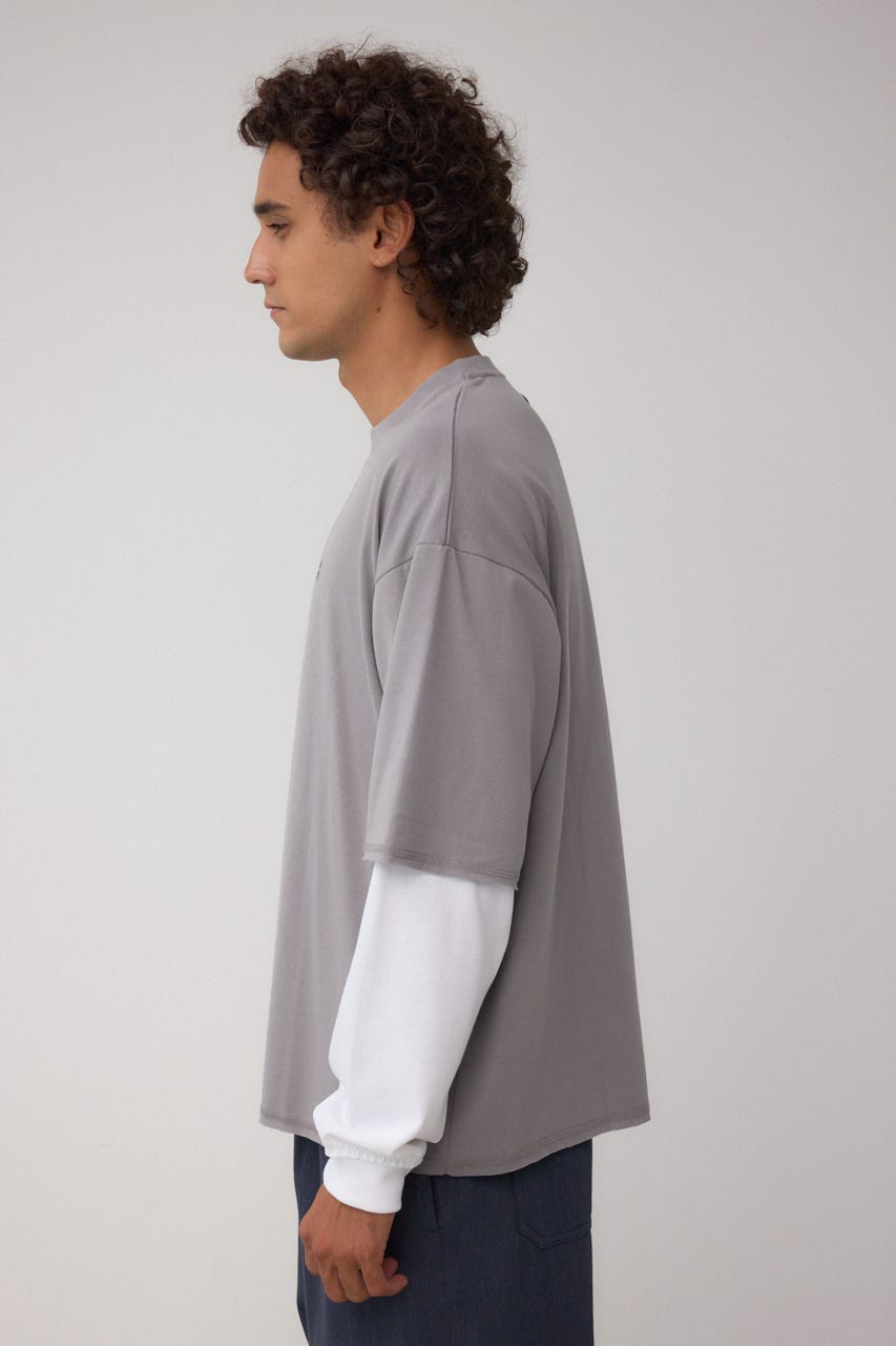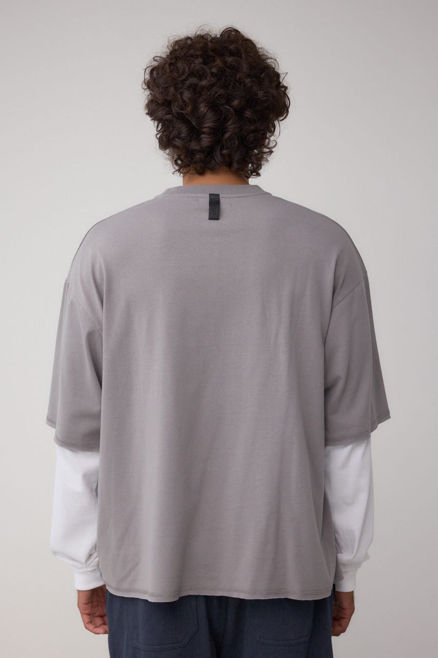 微配色のフェイクレイヤードで、重ね着の印象を1枚で演出出来るロングTシャツになります。