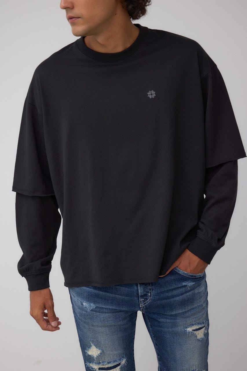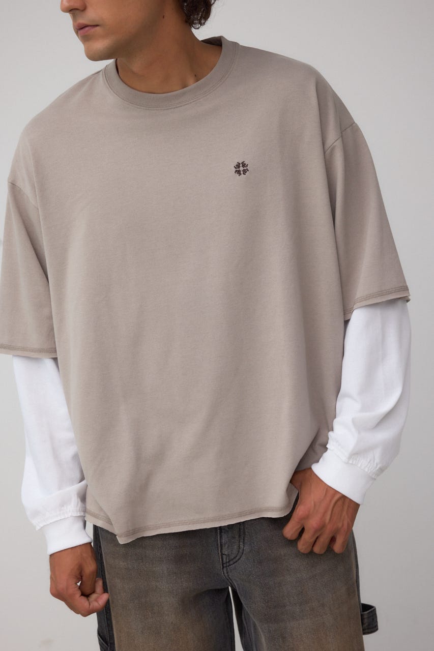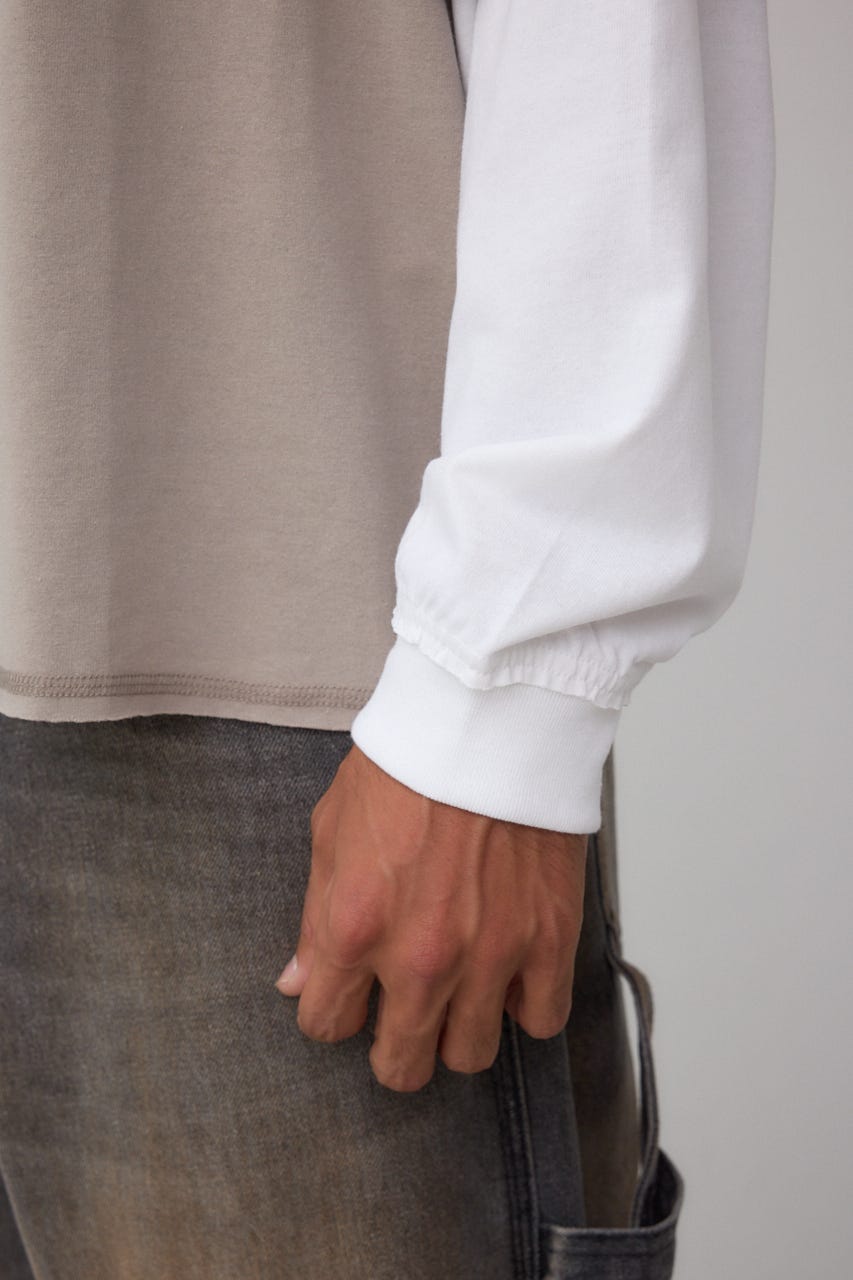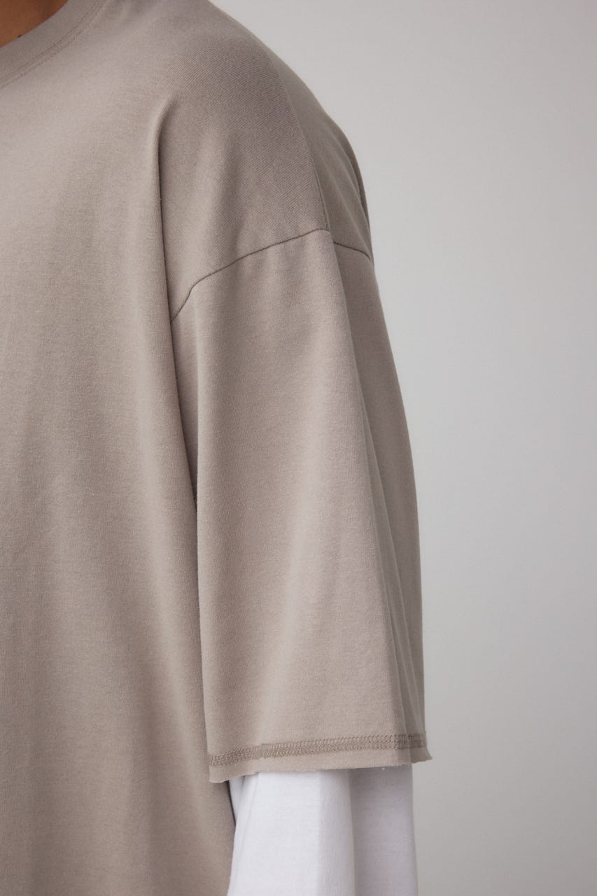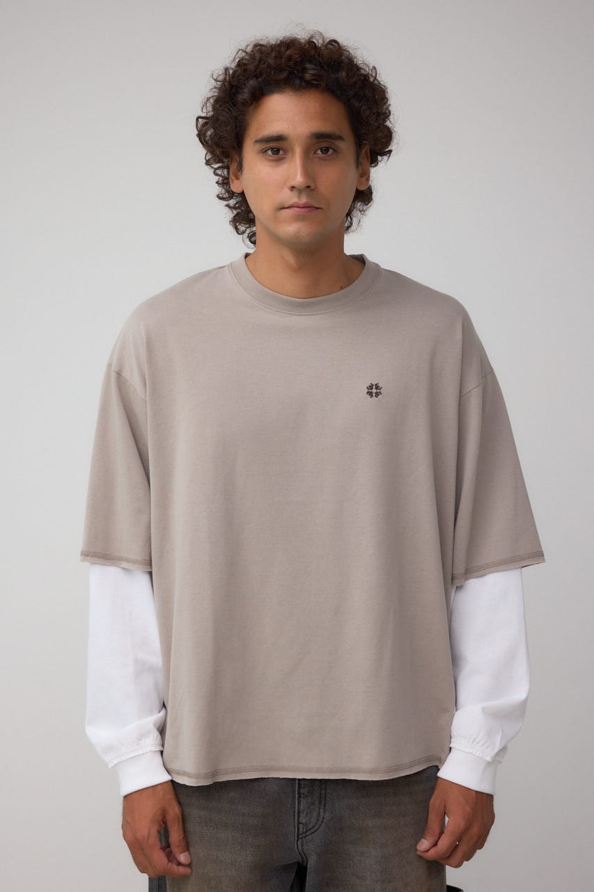 微配色のフェイクレイヤードで、重ね着の印象を1枚で演出出来るロングTシャツになります。
