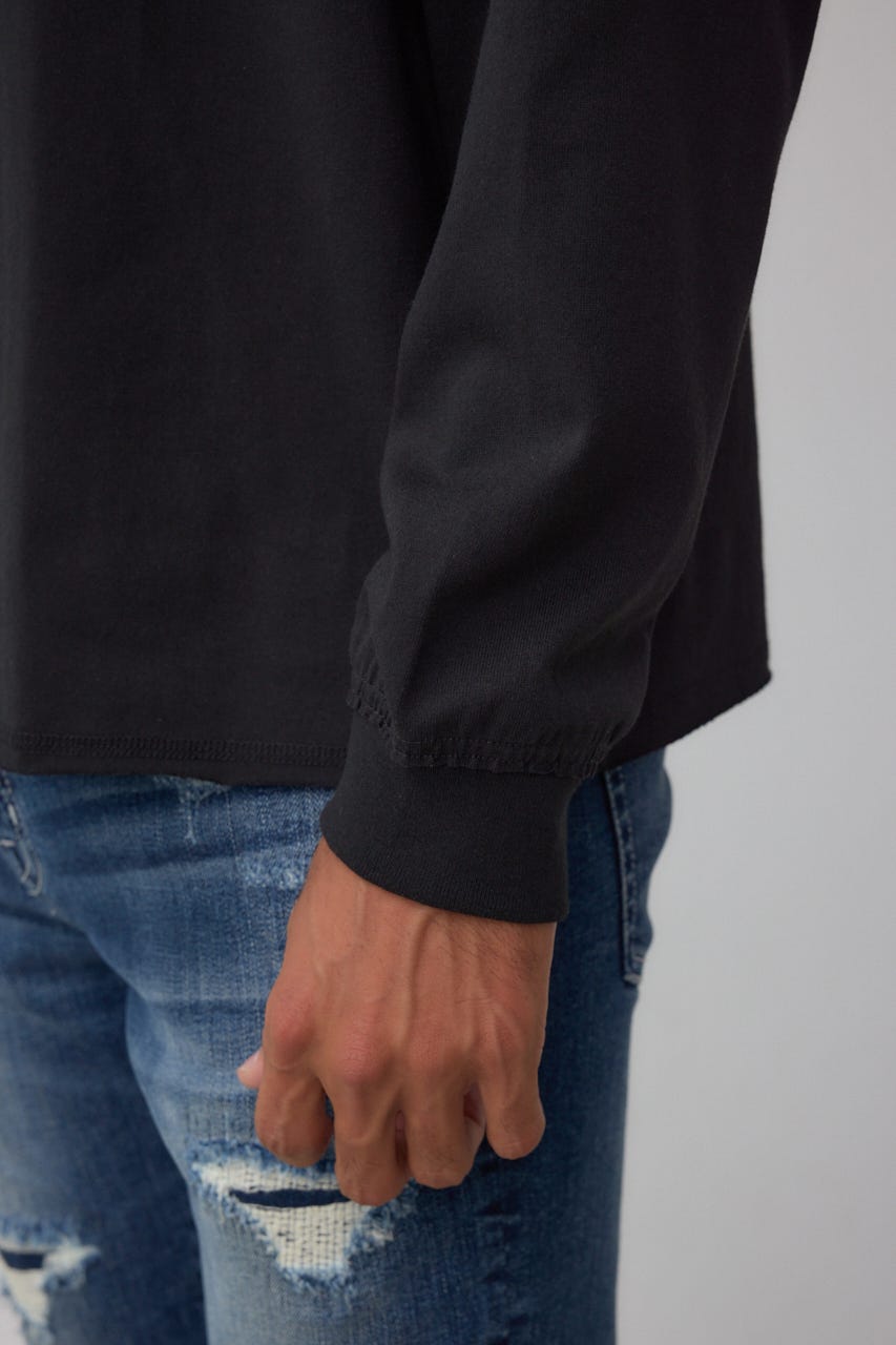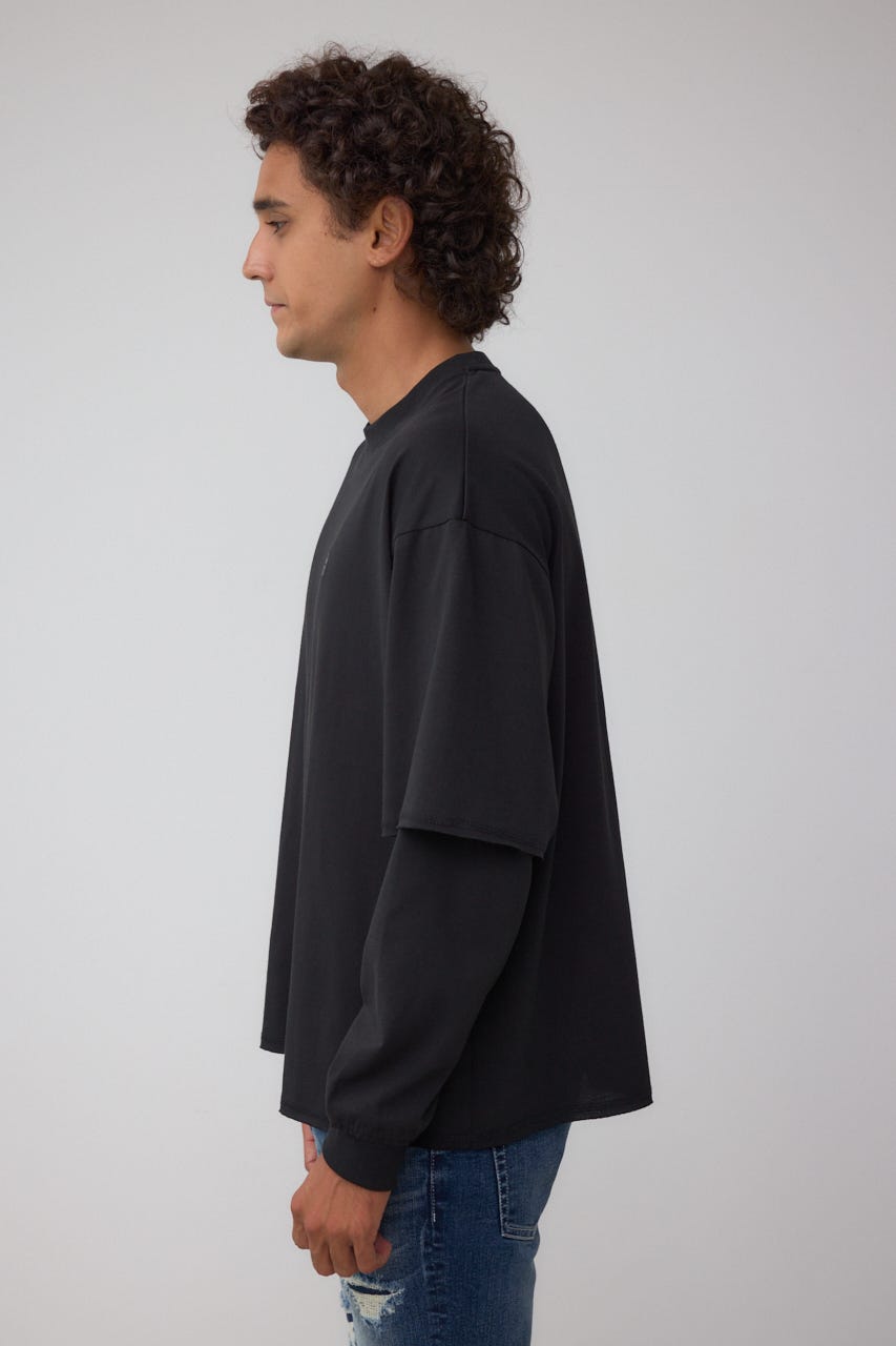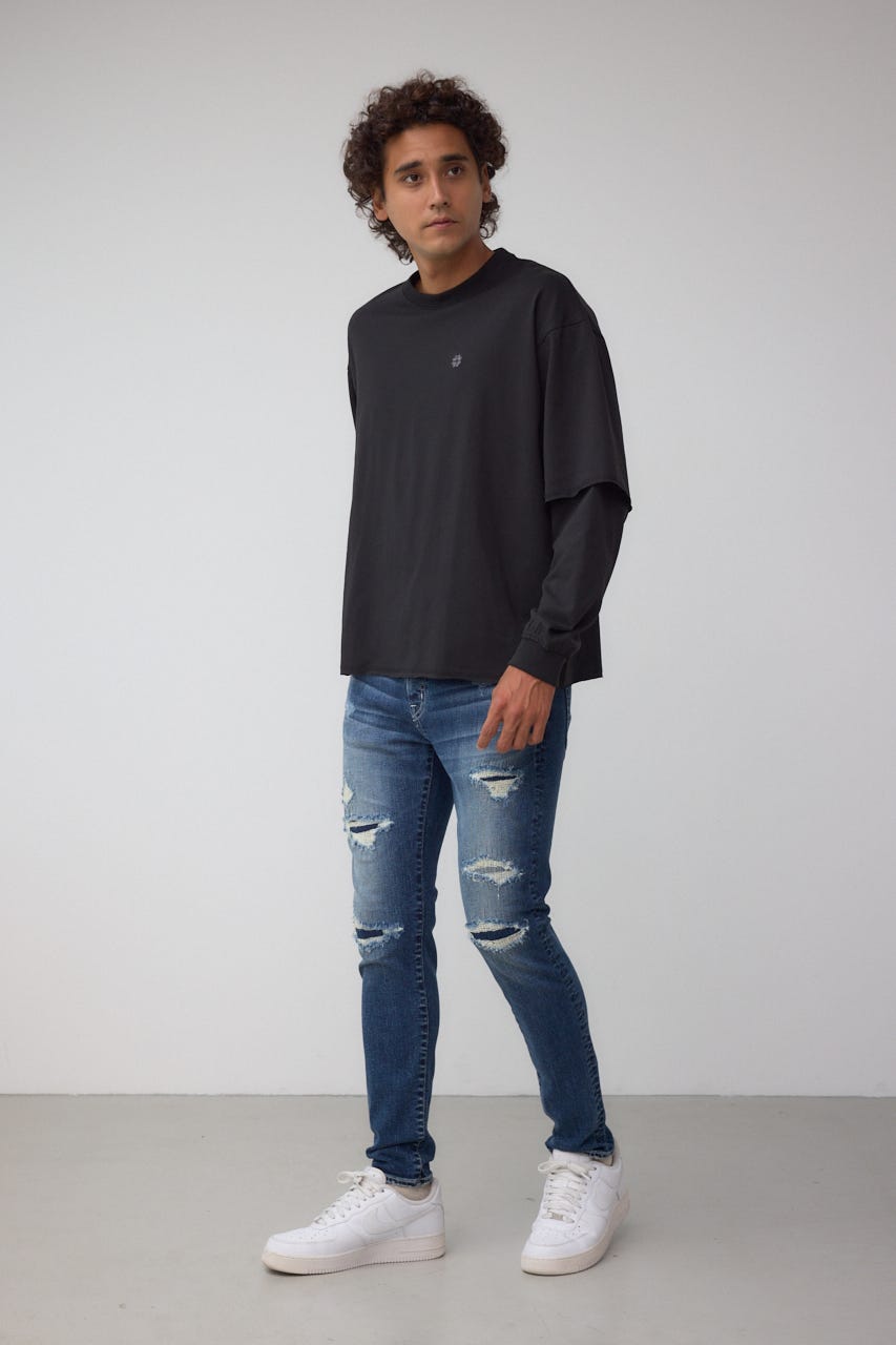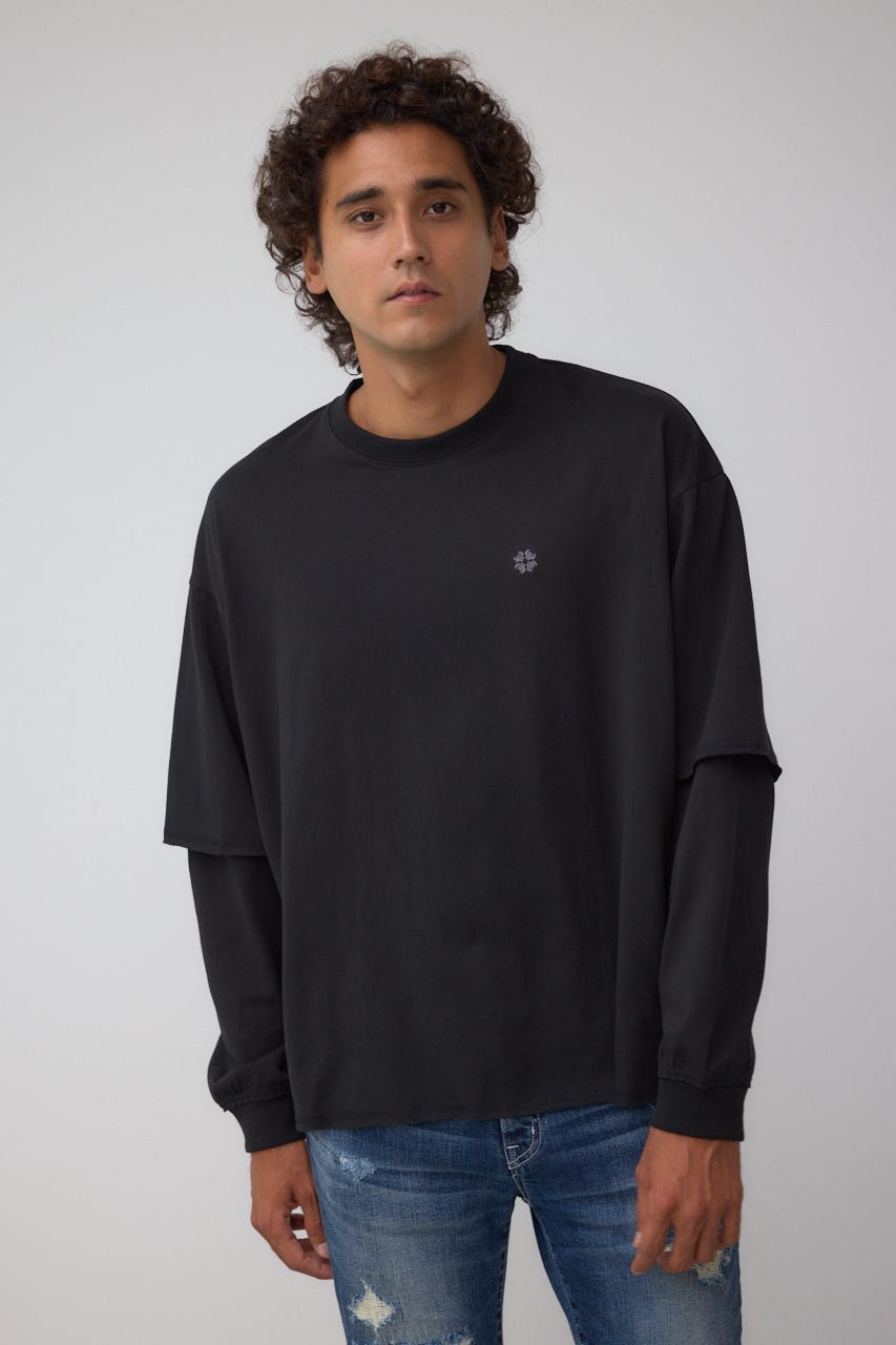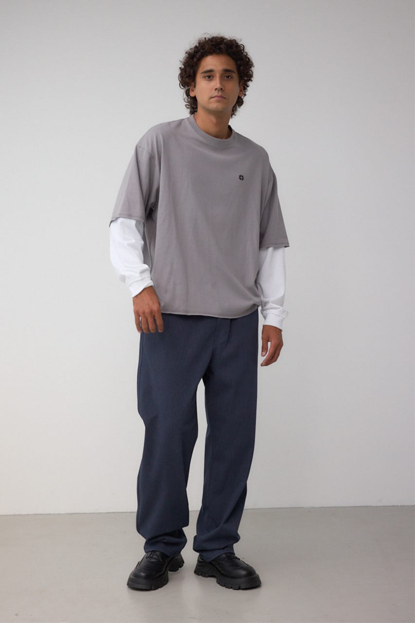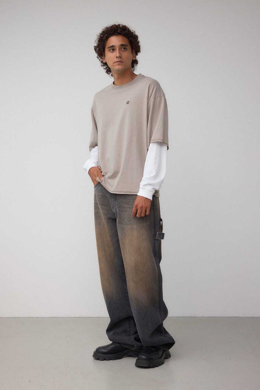 微配色のフェイクレイヤードで、重ね着の印象を1枚で演出出来るロングTシャツになります。