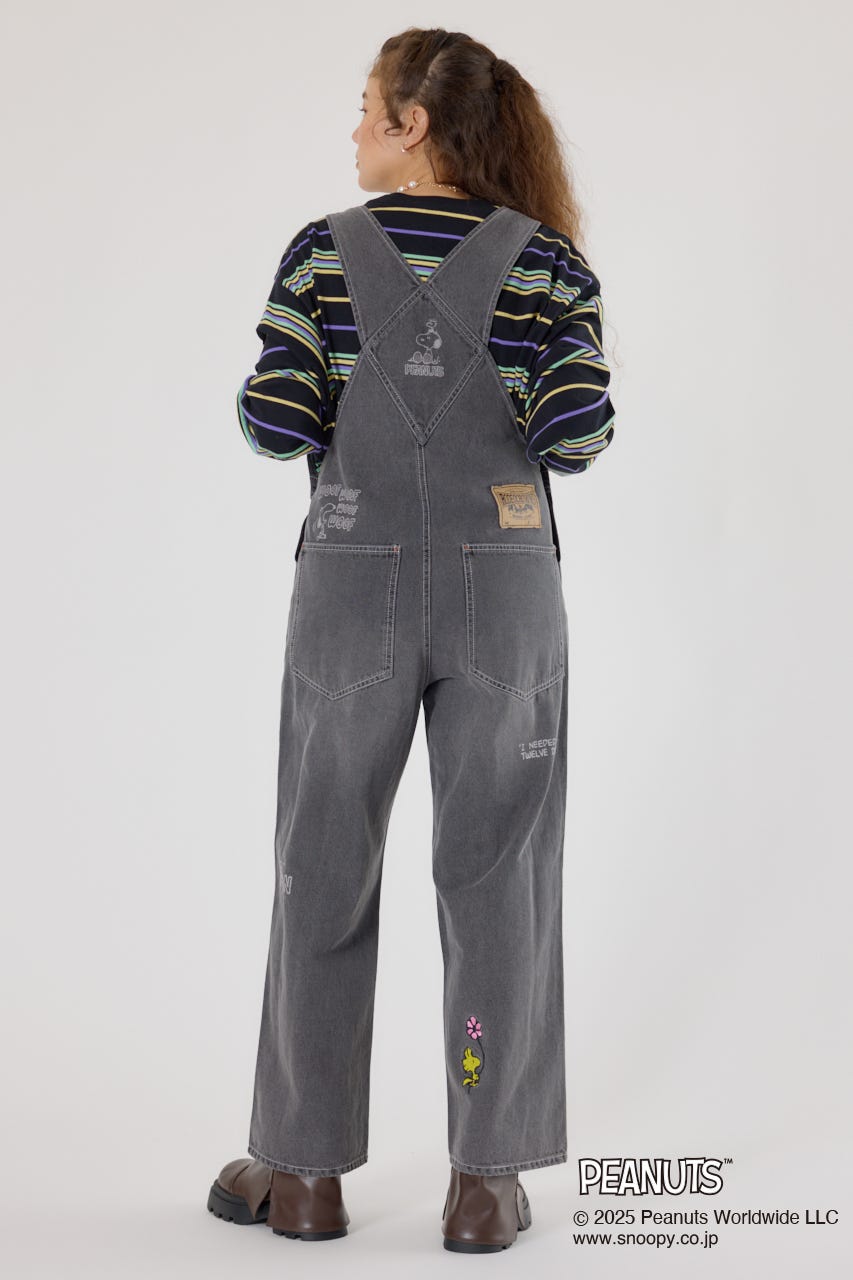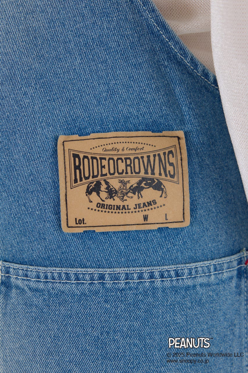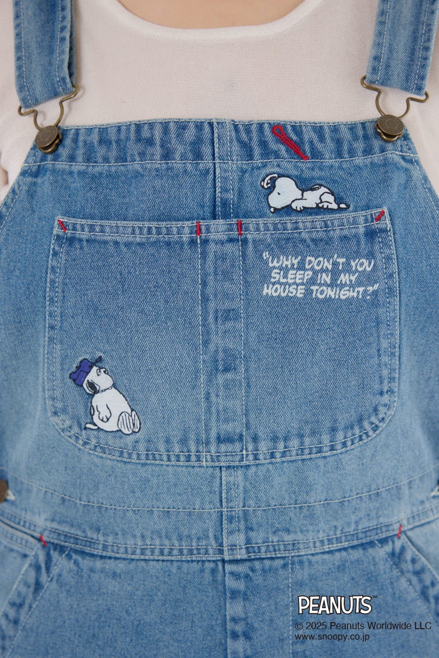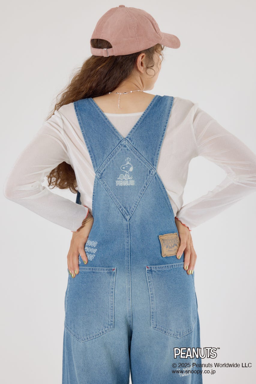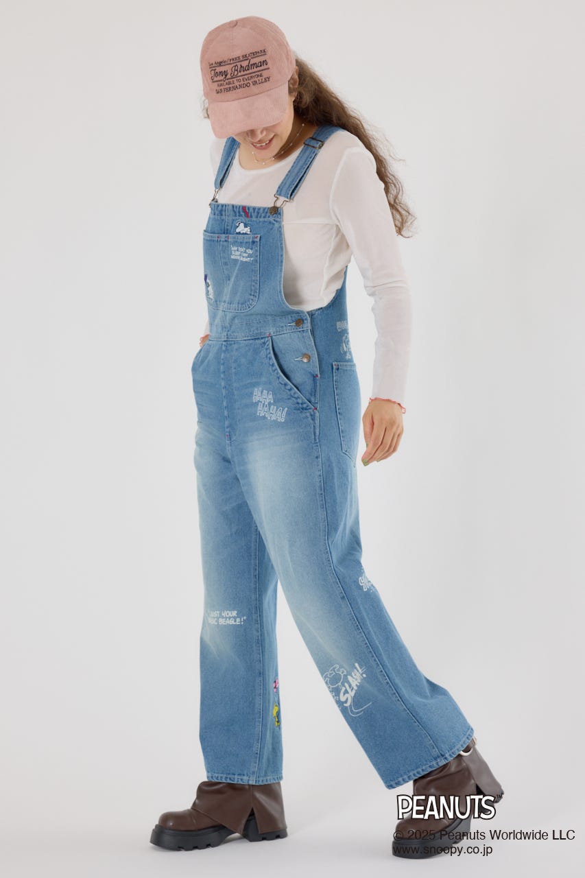 RODEOならではの着こなしやすいオーバーオールに刺繍やプリントでのったPEANUTSキャラ達がかわいいスペシャルな1枚。