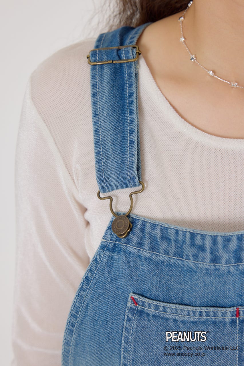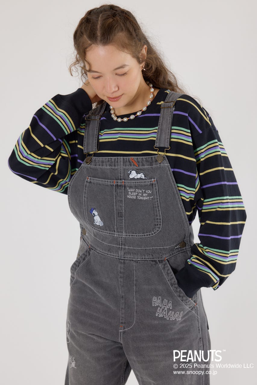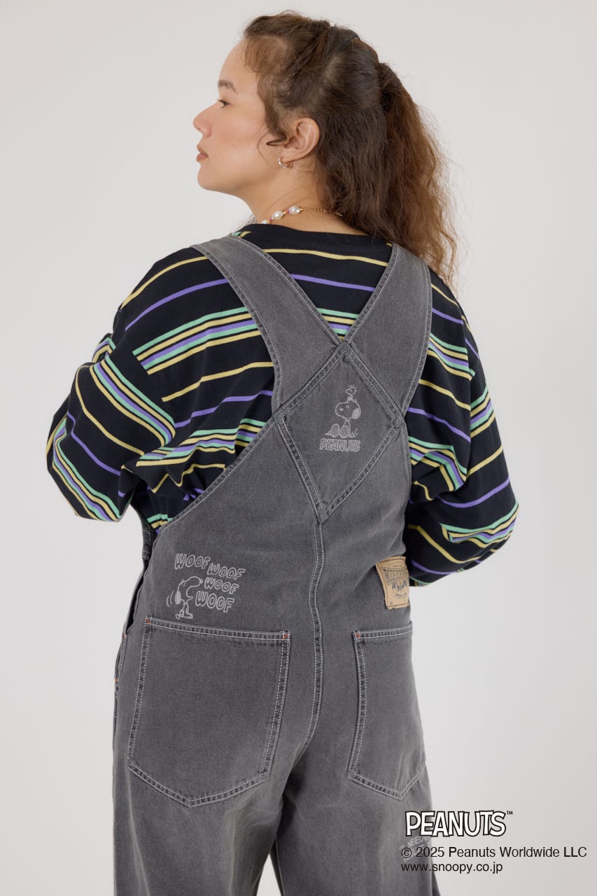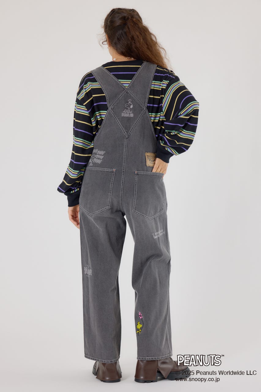 RODEOならではの着こなしやすいオーバーオールに刺繍やプリントでのったPEANUTSキャラ達がかわいいスペシャルな1枚。