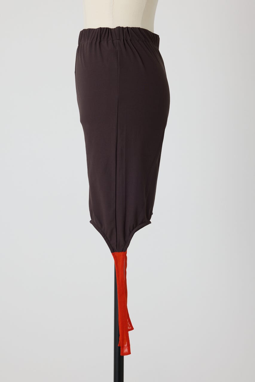 股引の様なデザインで、裾に付いた切り替えのテープデザインの配色がポイントです。