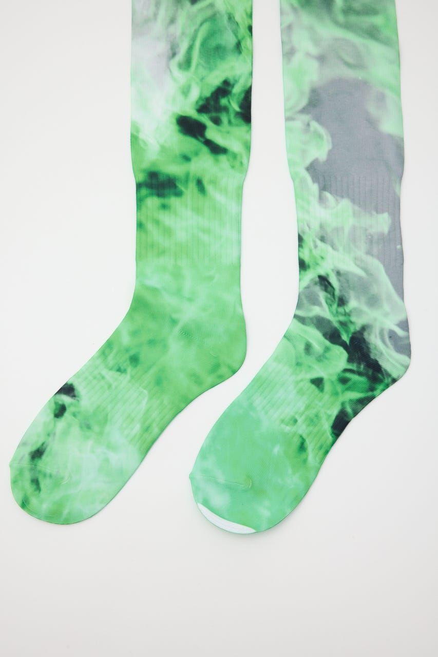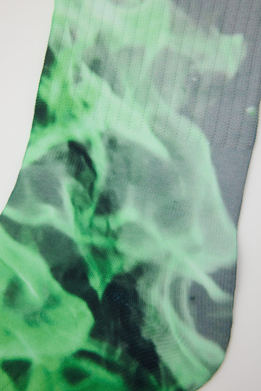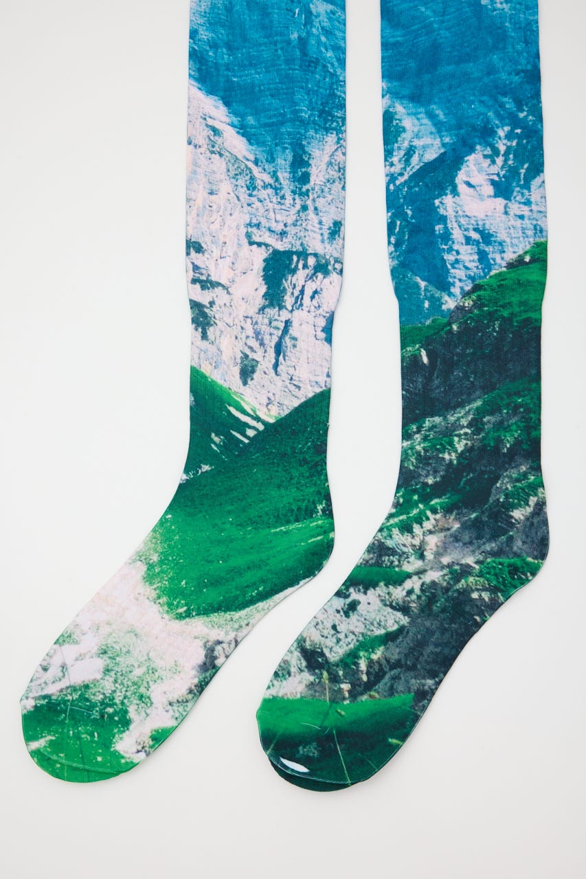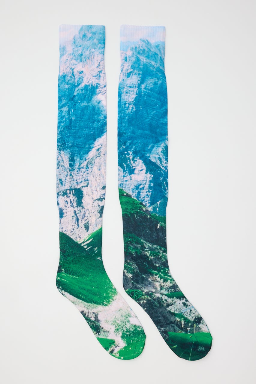 ダイレクトに転写プリントが施されたロングソックス。