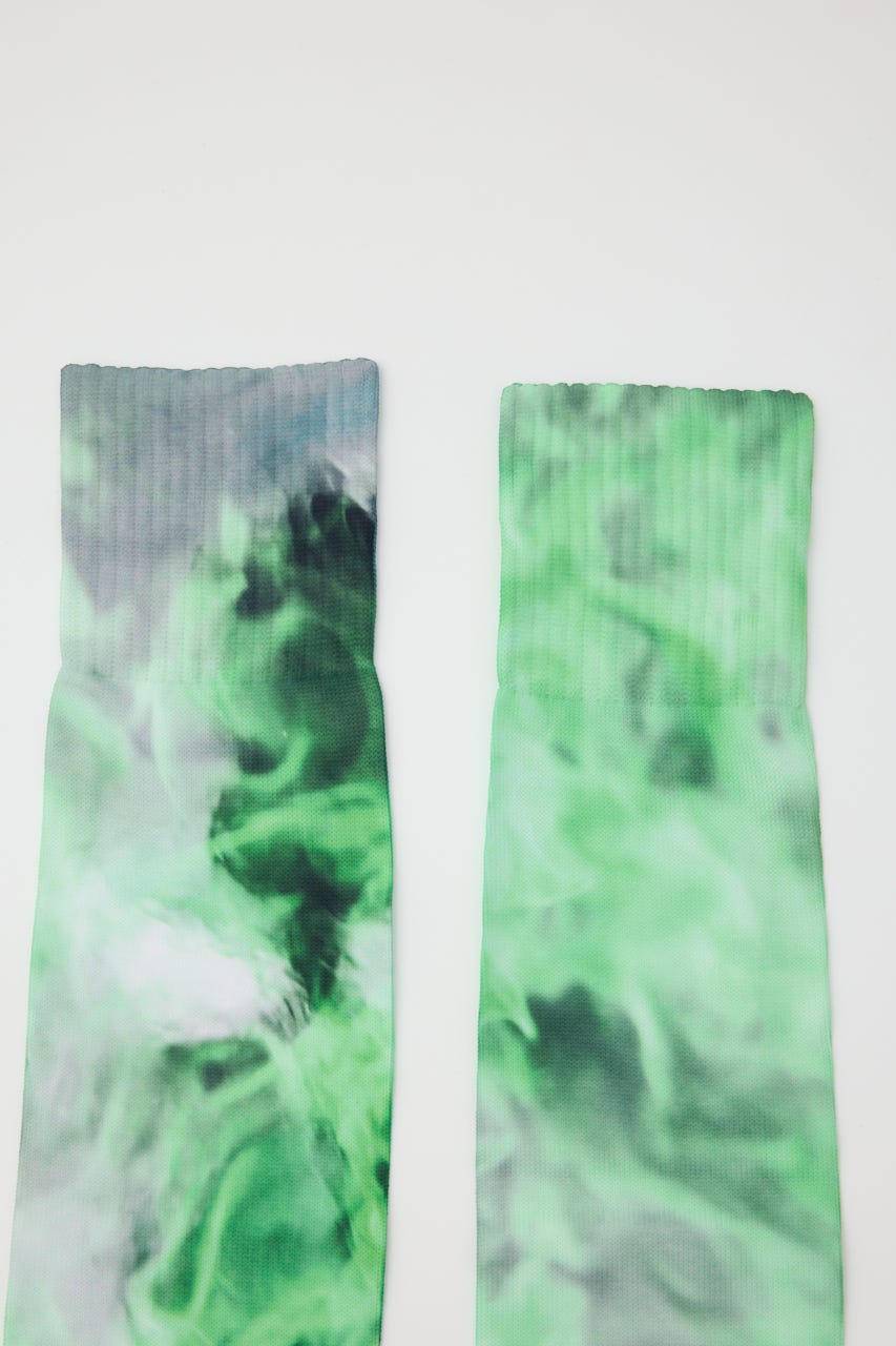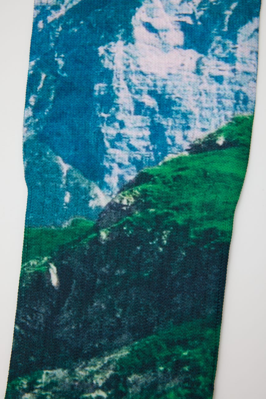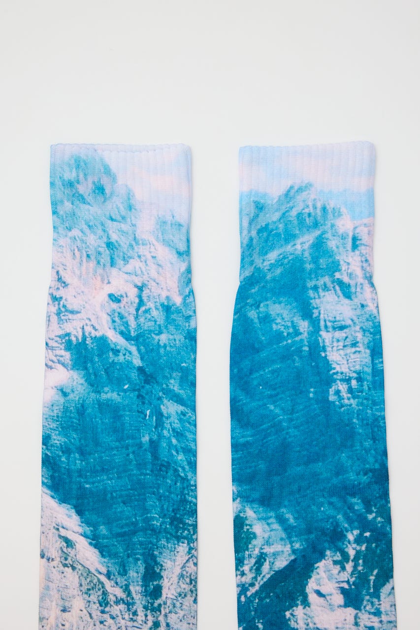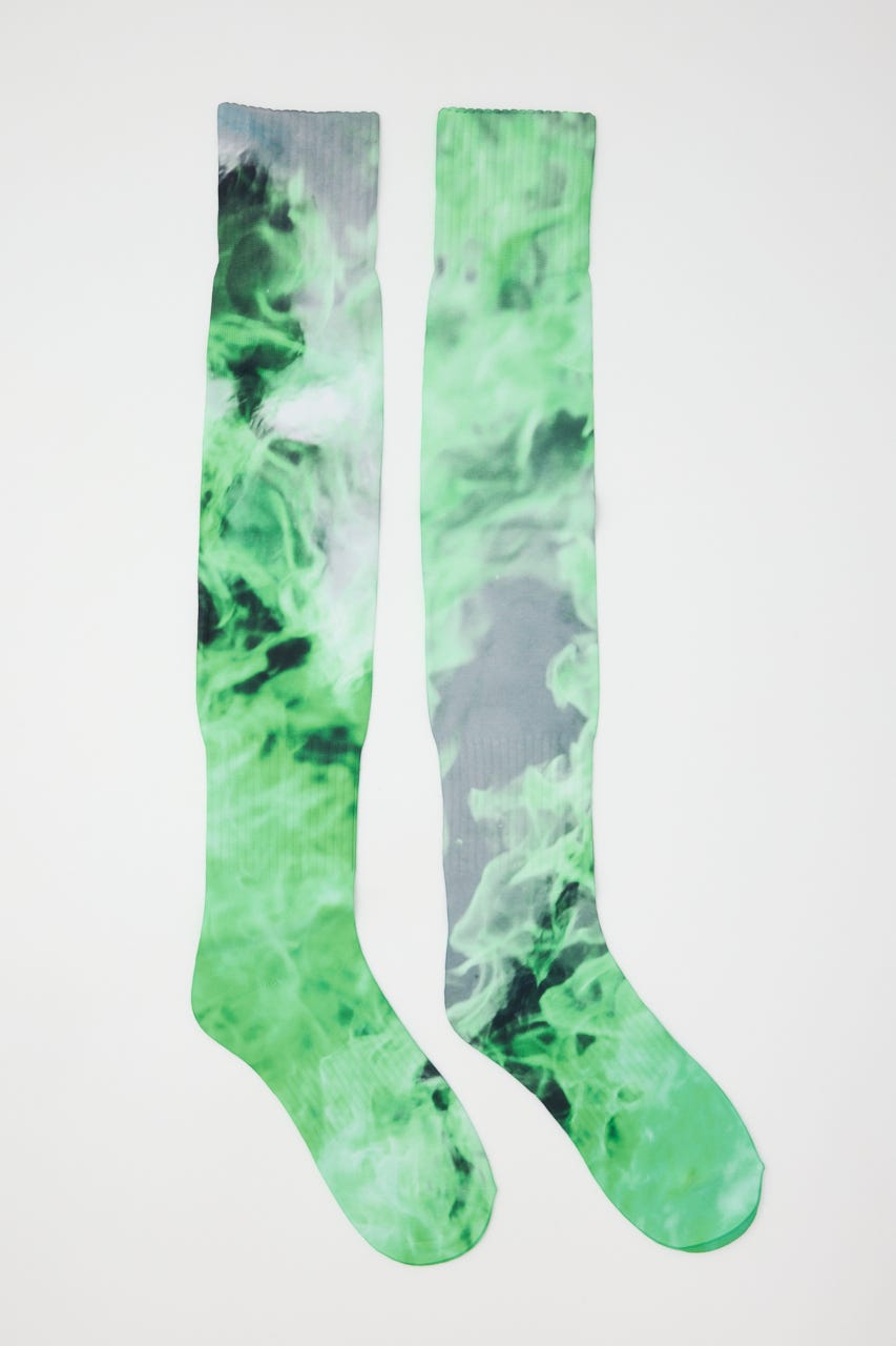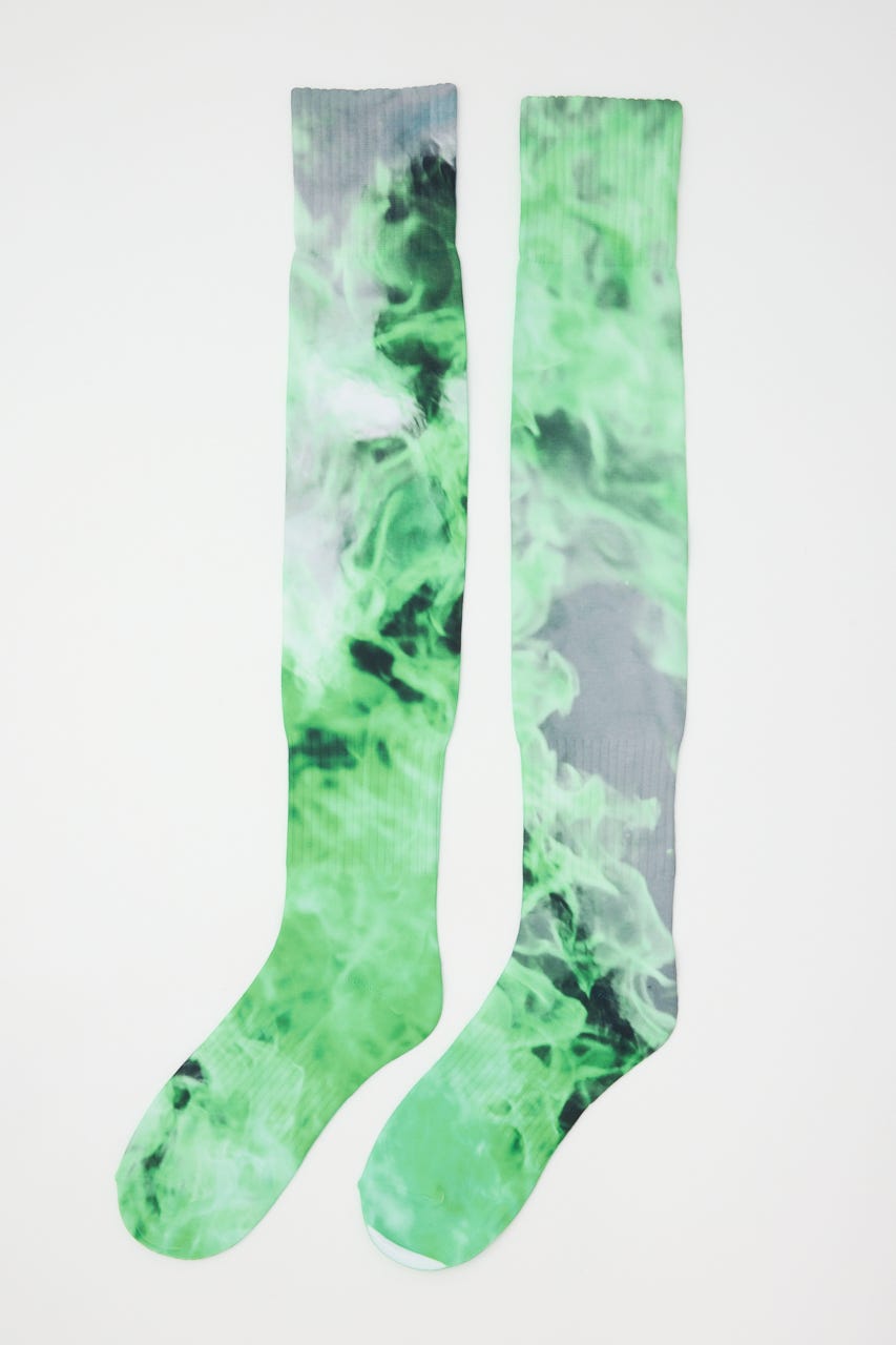 ダイレクトに転写プリントが施されたロングソックス。