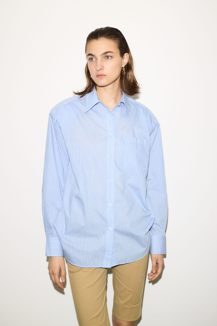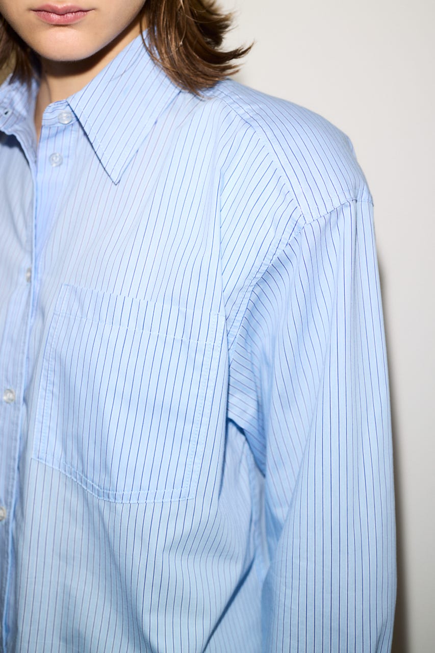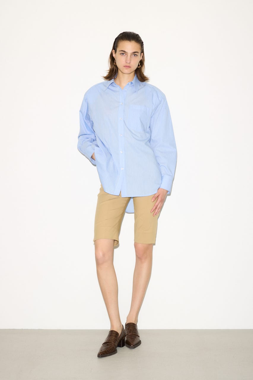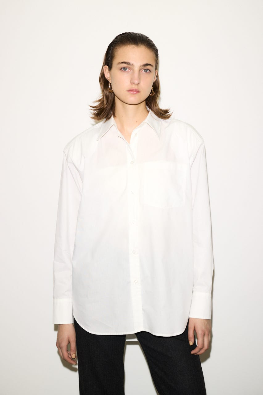 ■POINT:構築的なシルエットが魅力の肩パッド入りシャツ。