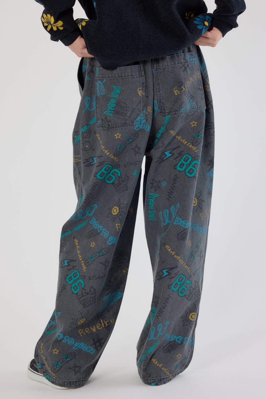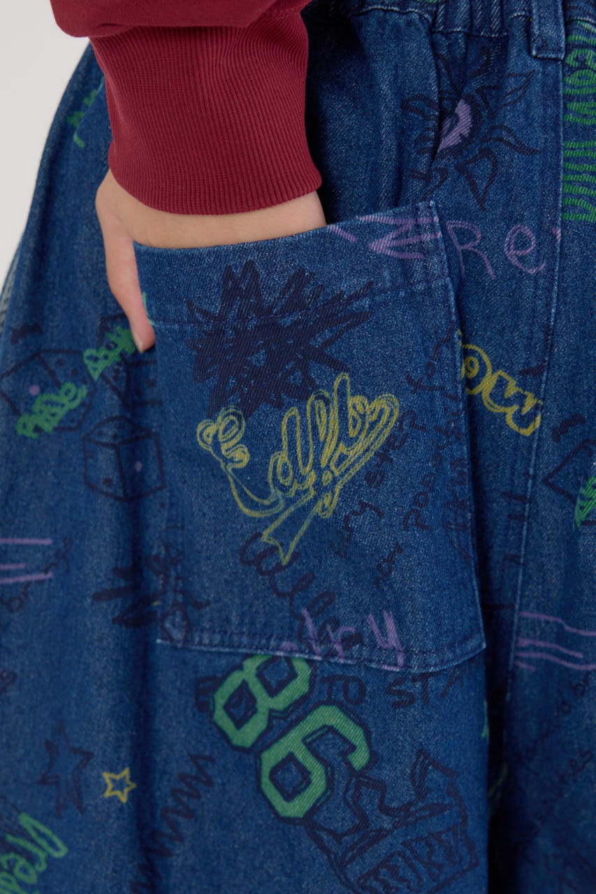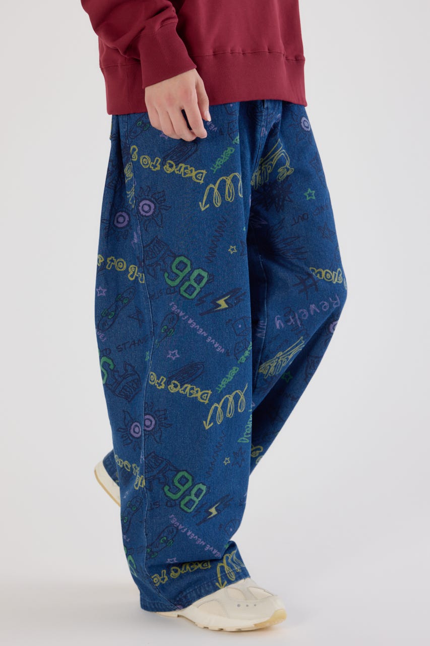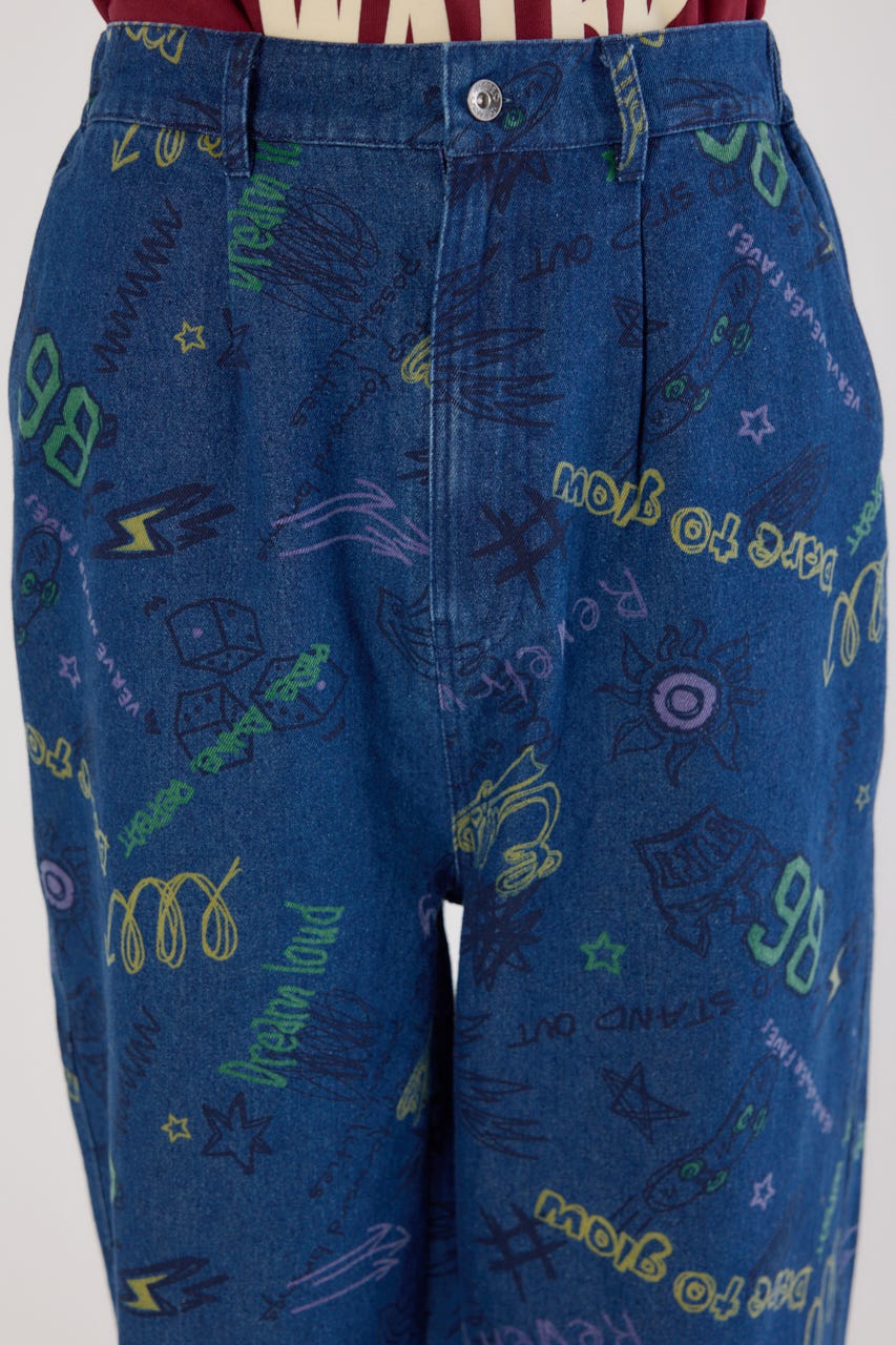 ベーシックなデニムスタイルにユーモアとアート感をプラスしてくれます。
