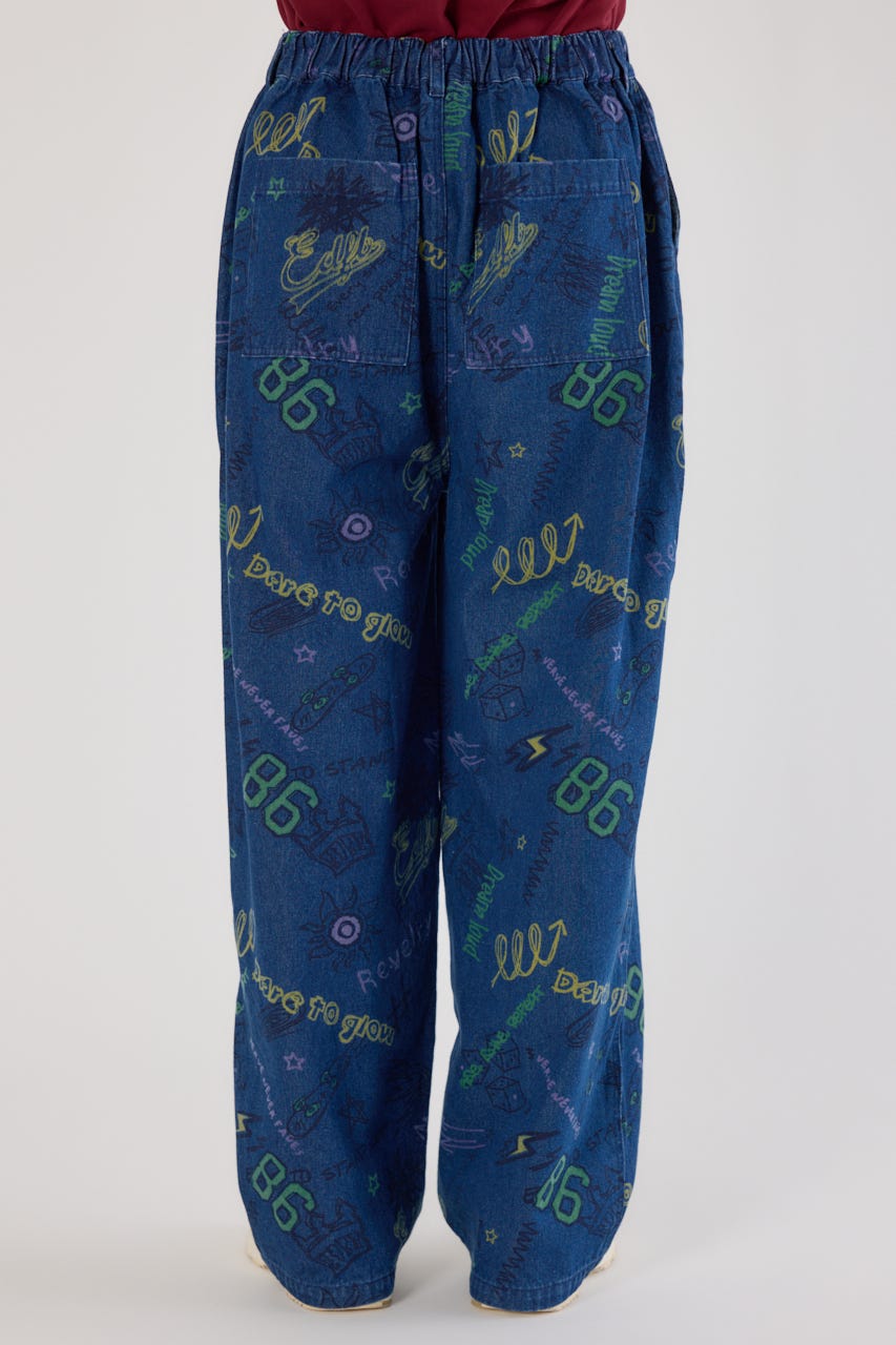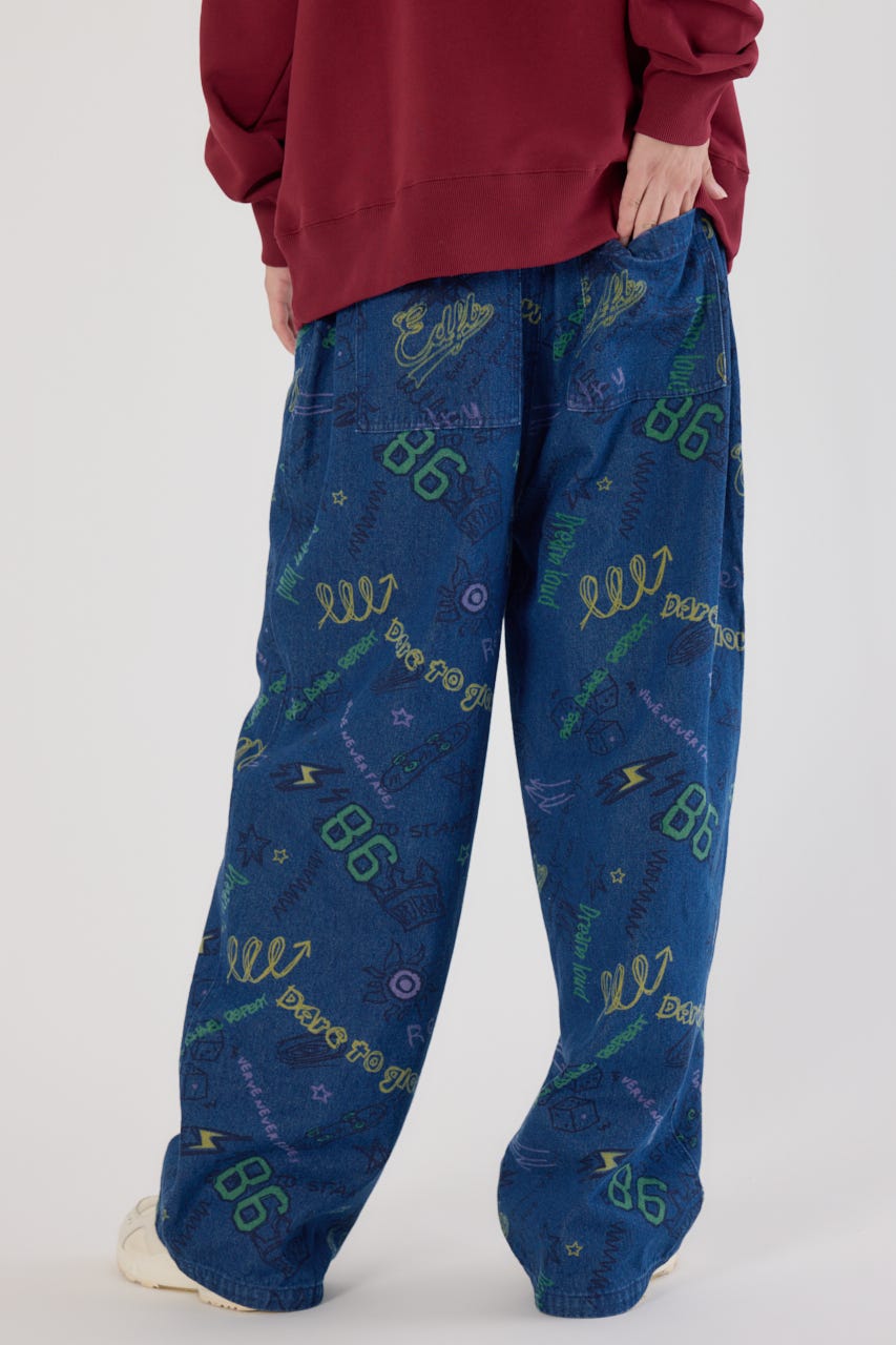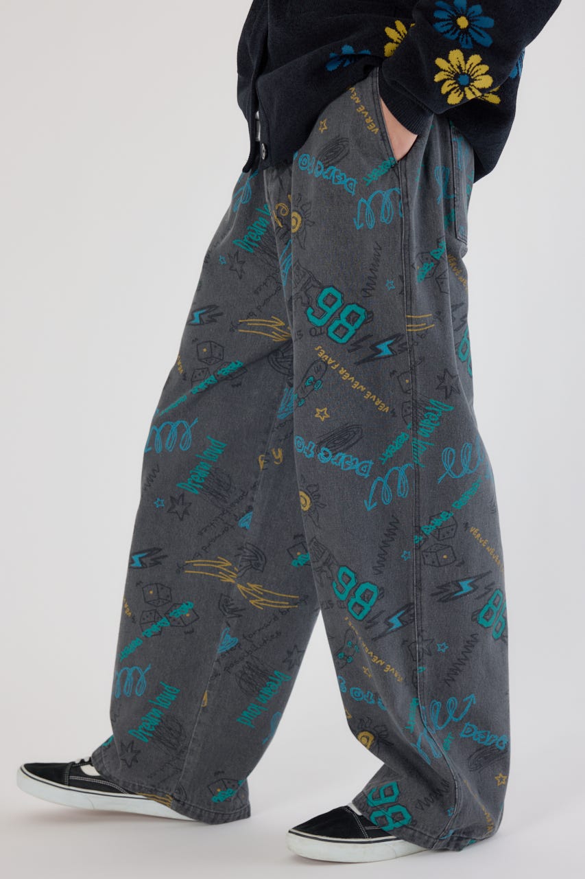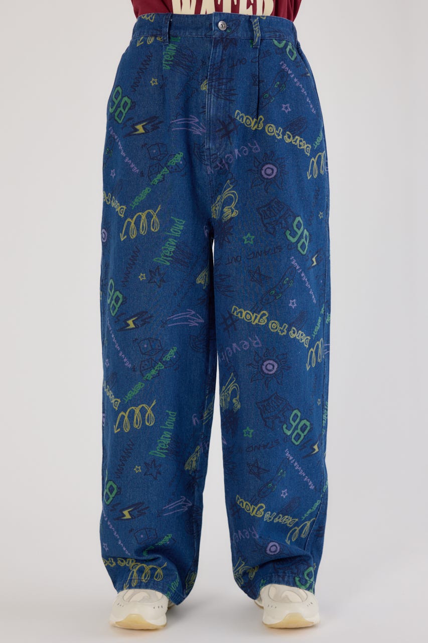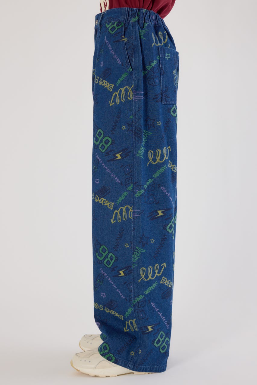 ベーシックなデニムスタイルにユーモアとアート感をプラスしてくれます。
