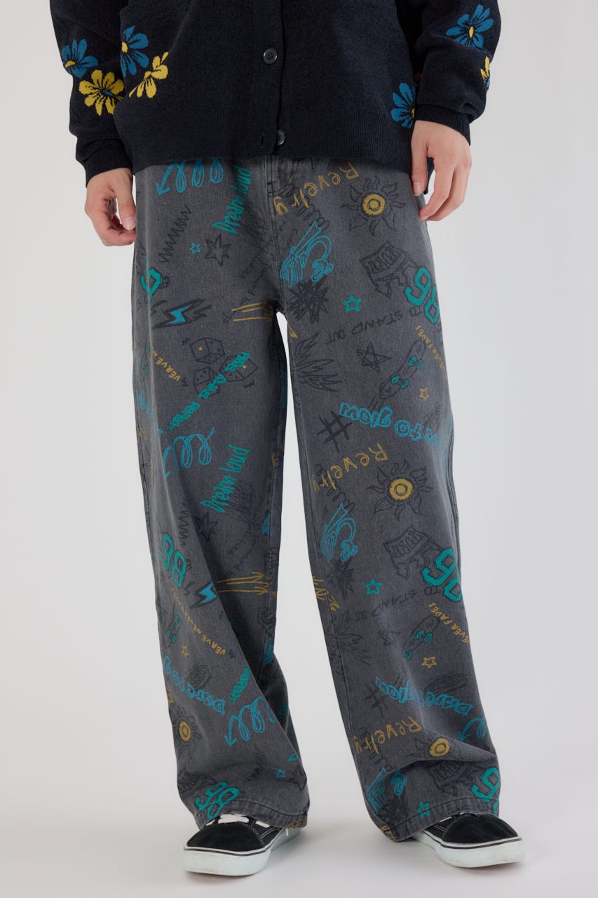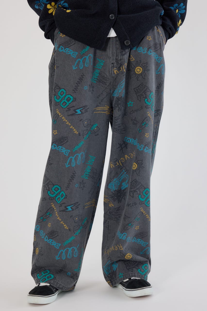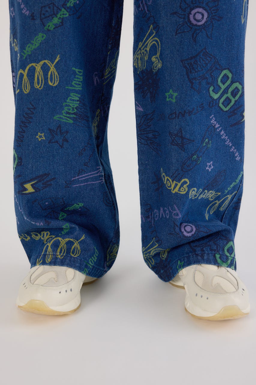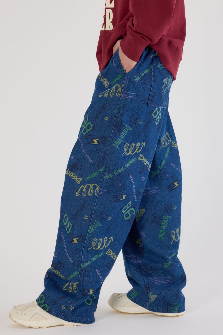 ベーシックなデニムスタイルにユーモアとアート感をプラスしてくれます。