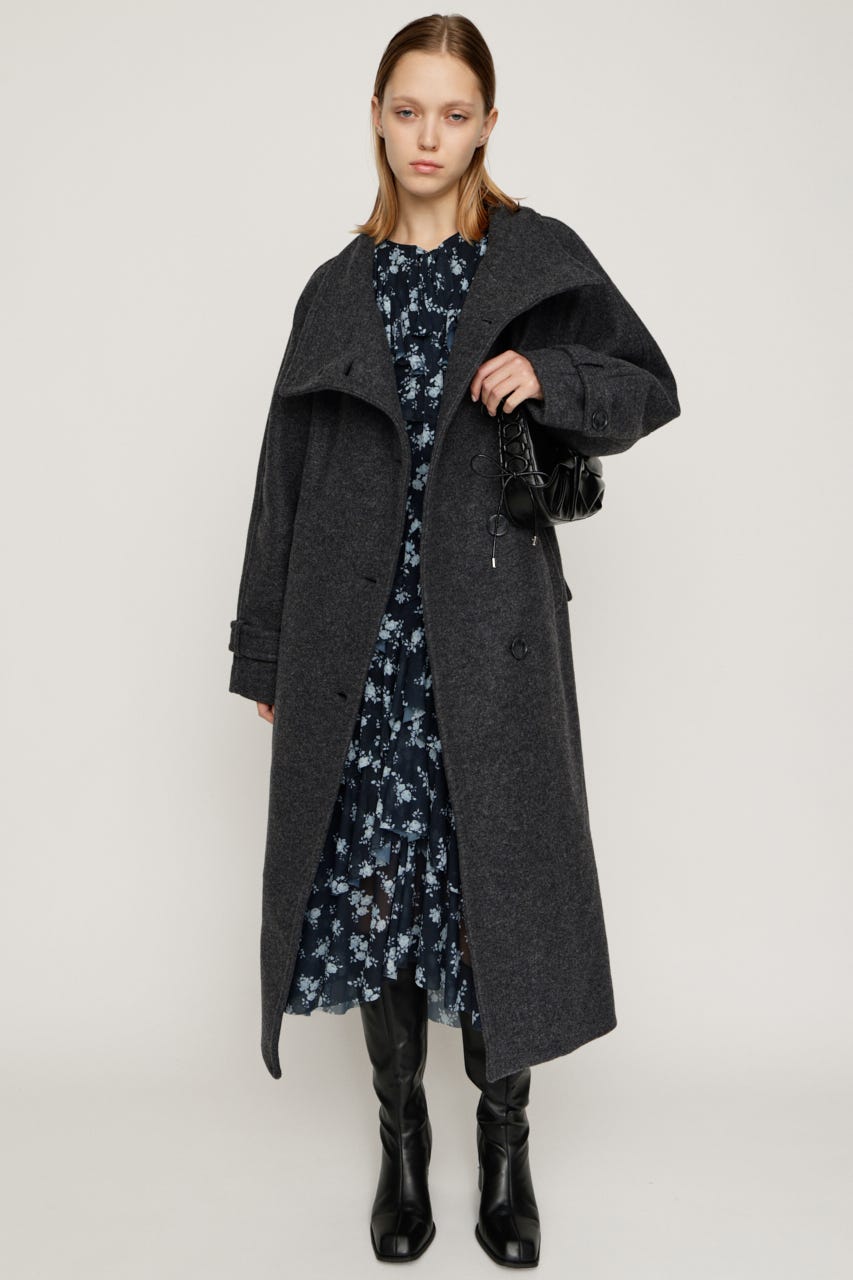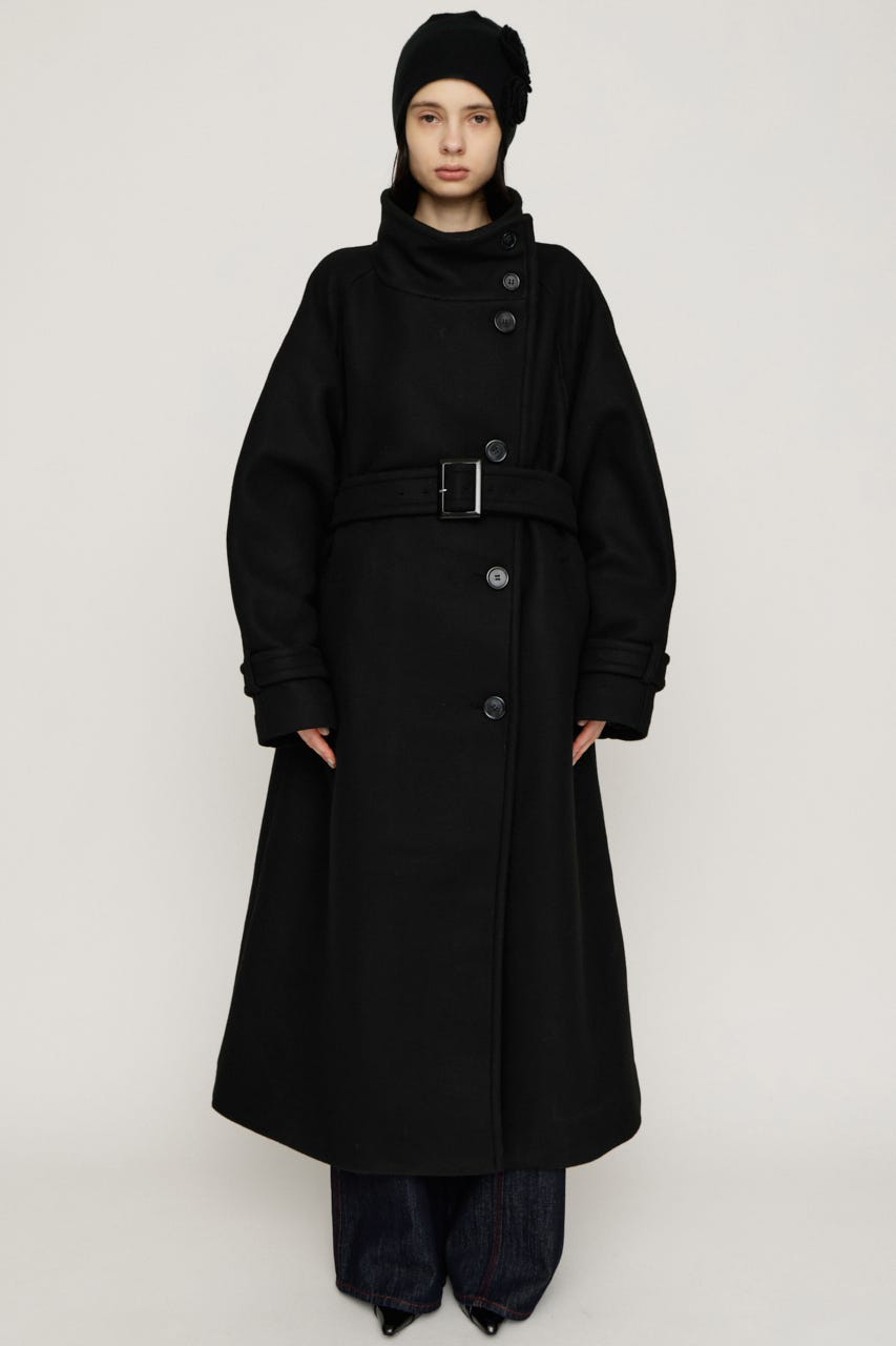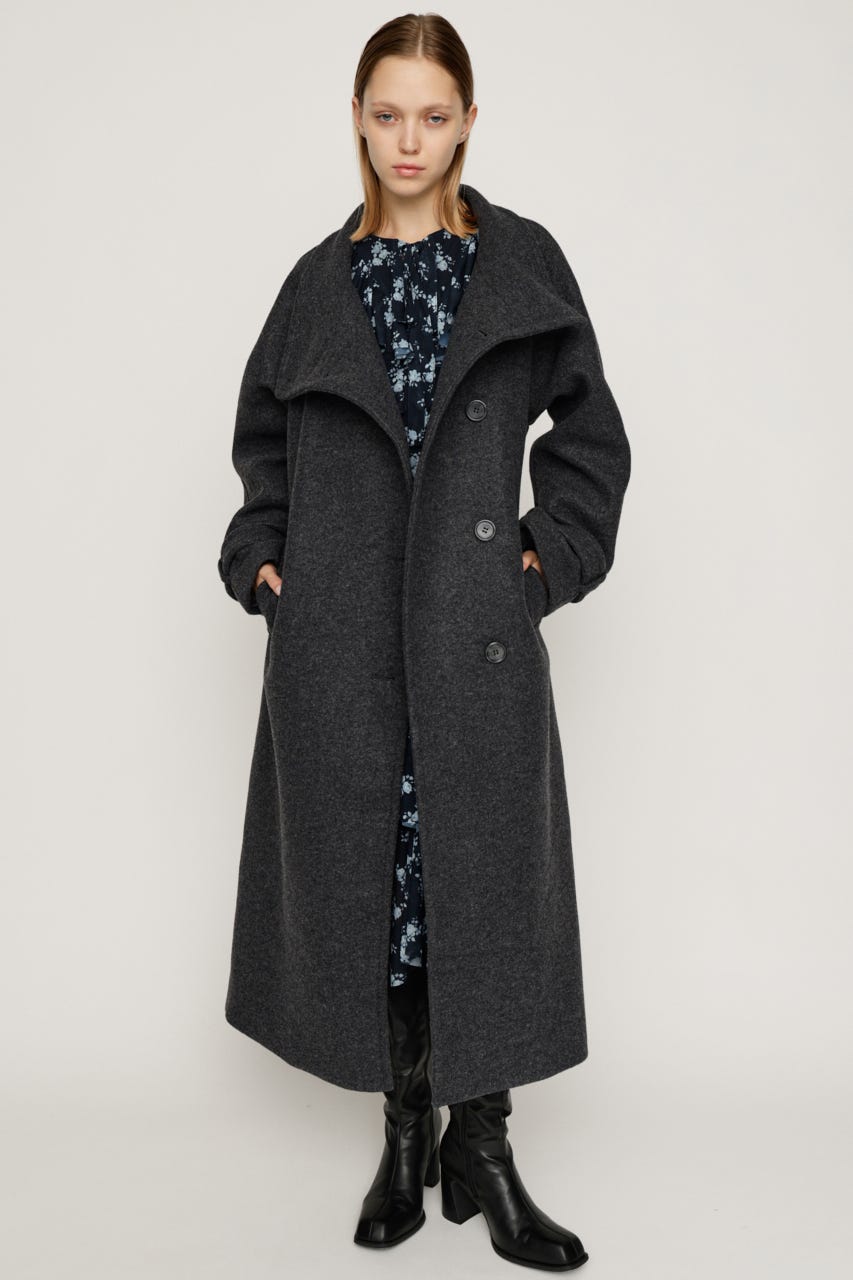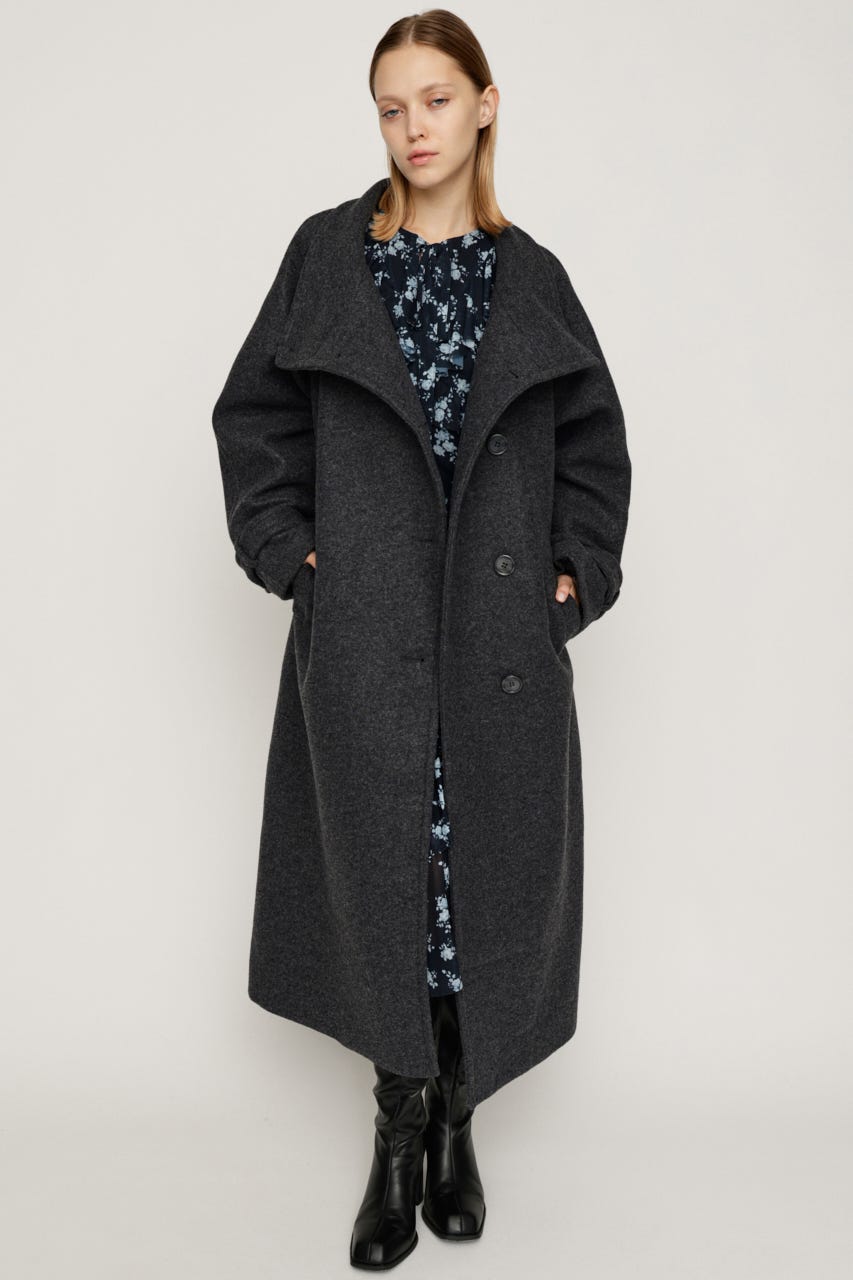 ■POINT:ワイドなスタンドネックが洗練された大人っぽい印象のロングコート。