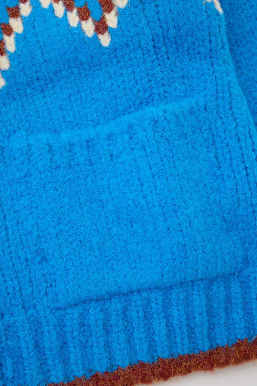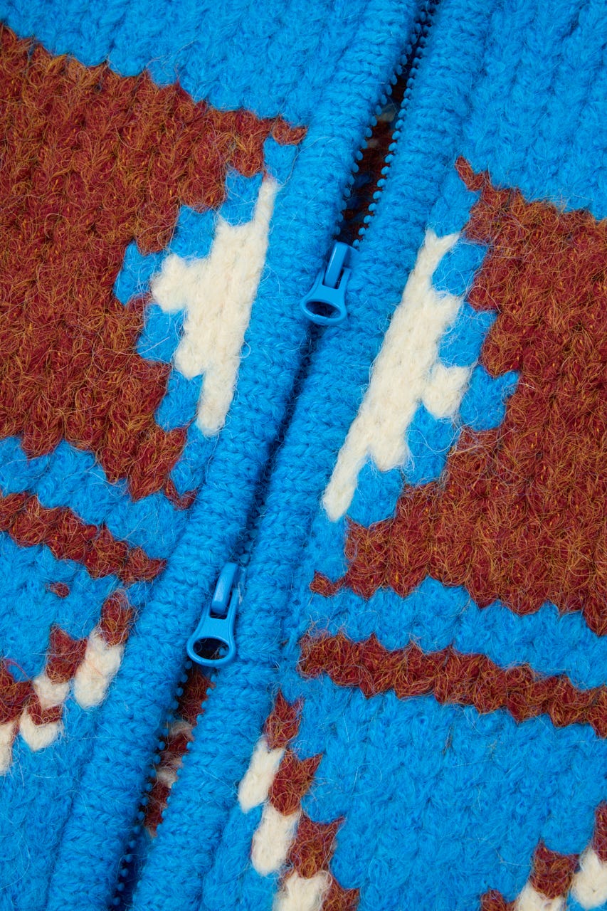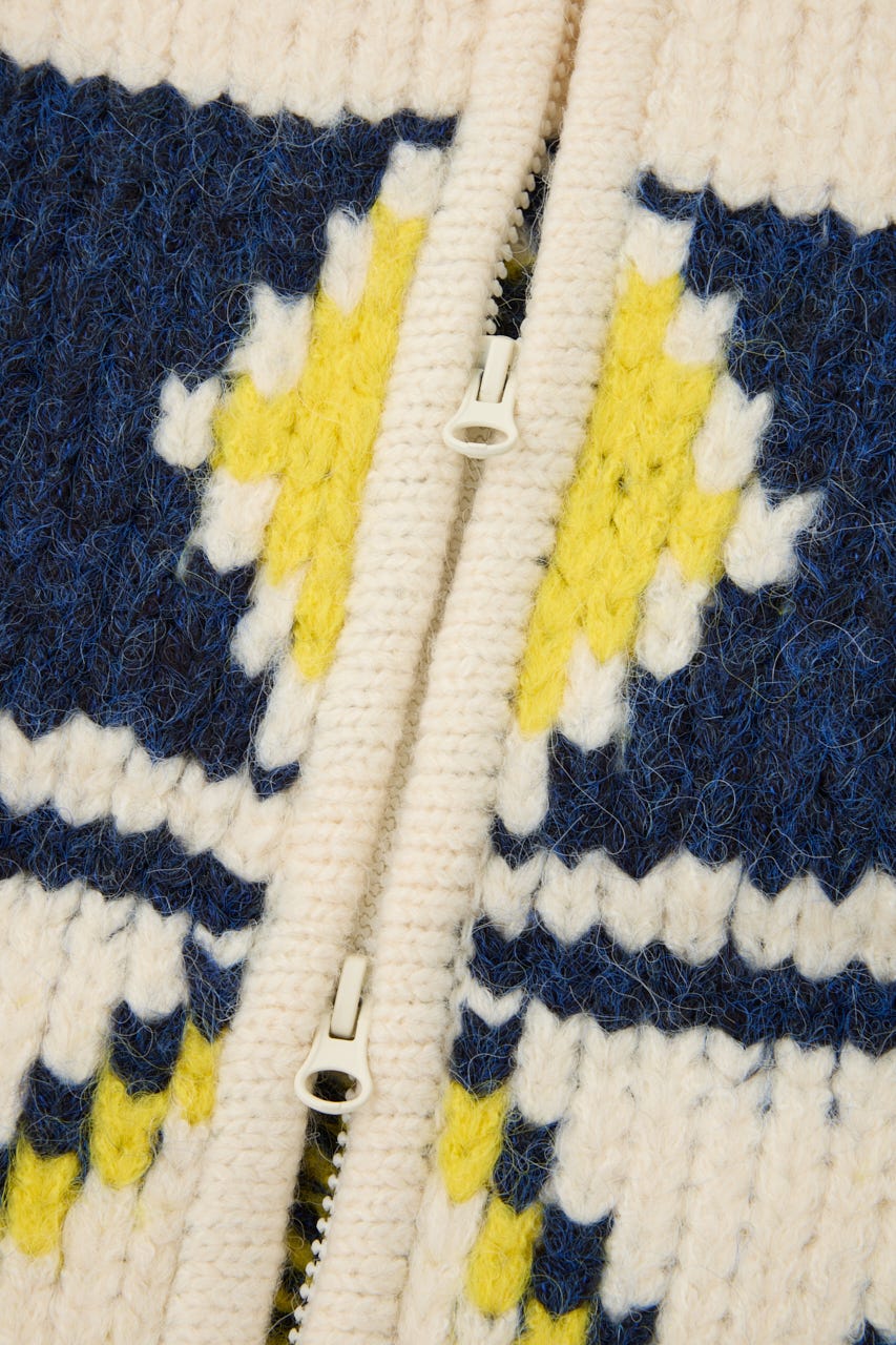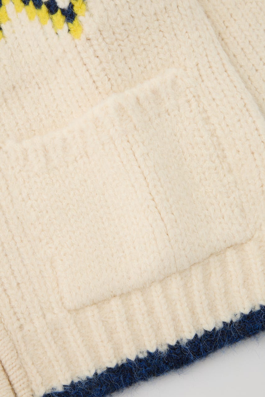鮮やかな糸をミックスしたカウチン風カーディガン。