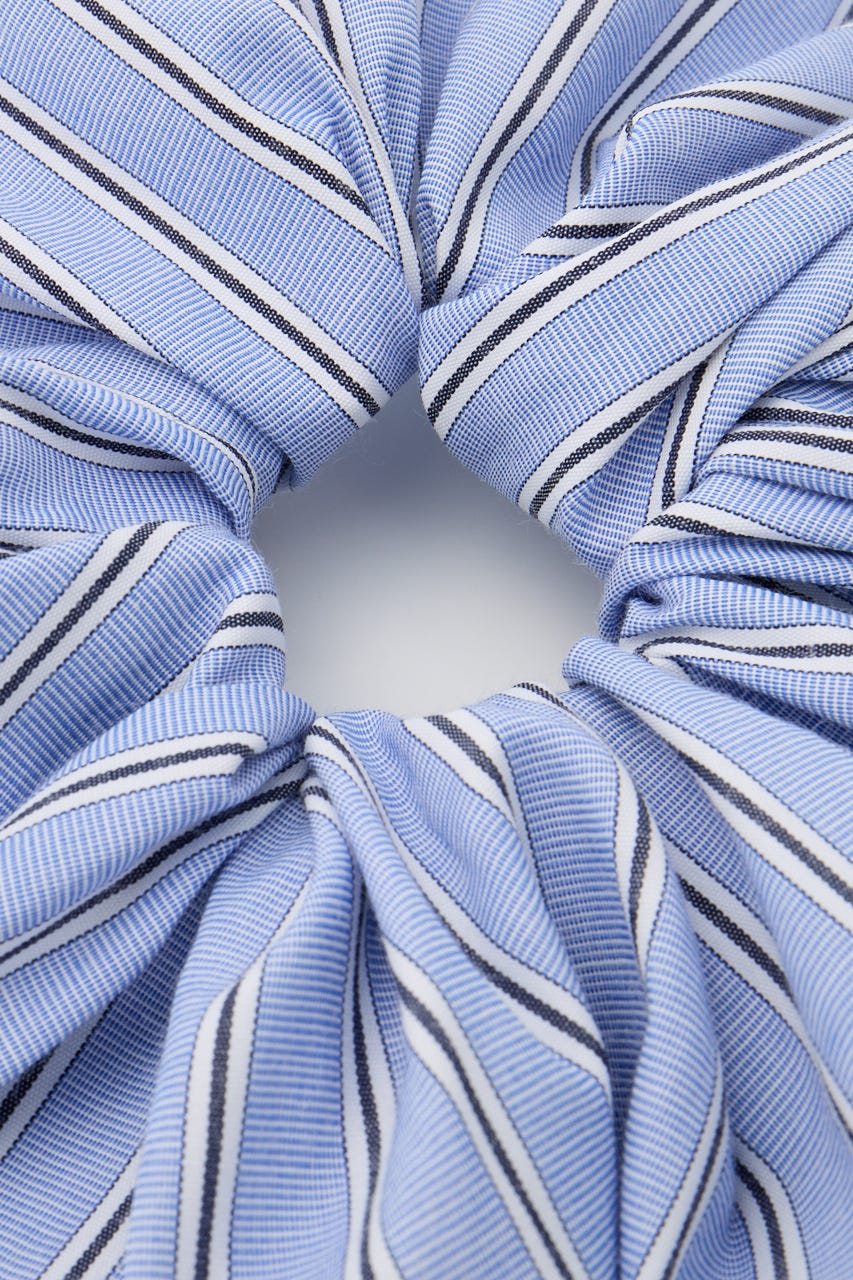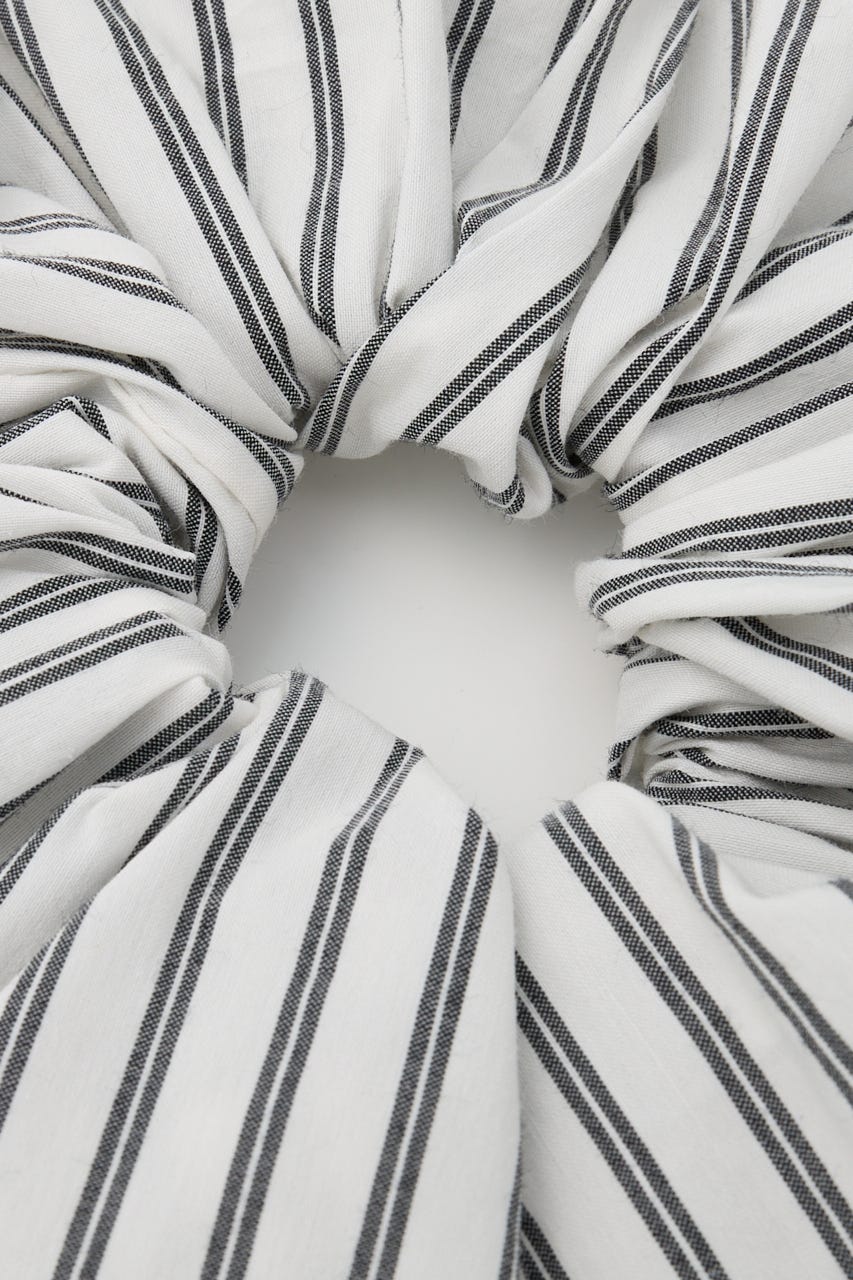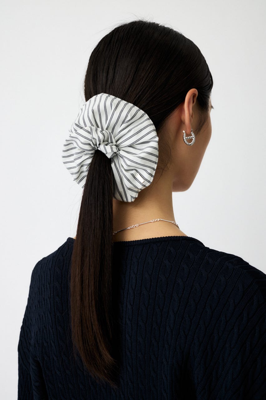 ストライプ柄が、大人可愛いうしろ姿を演出するシュシュ。