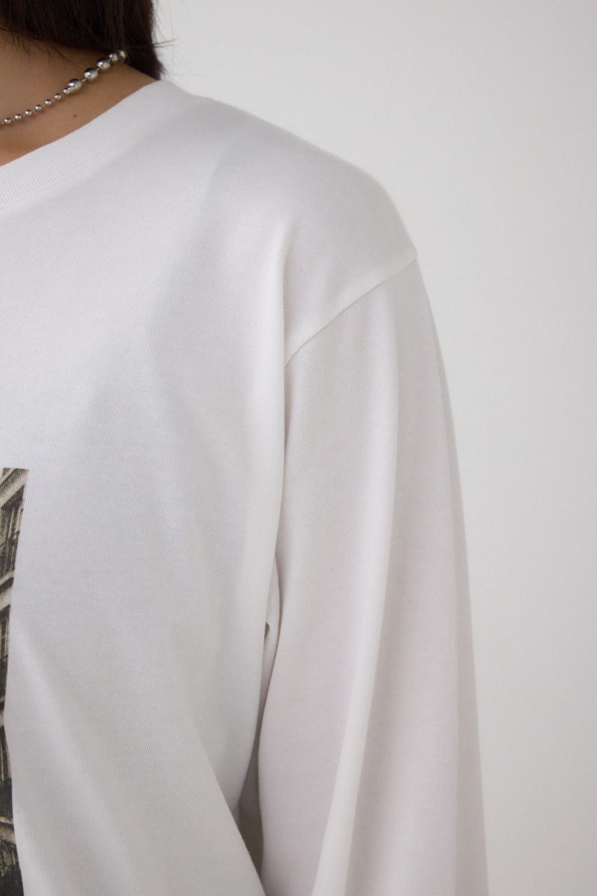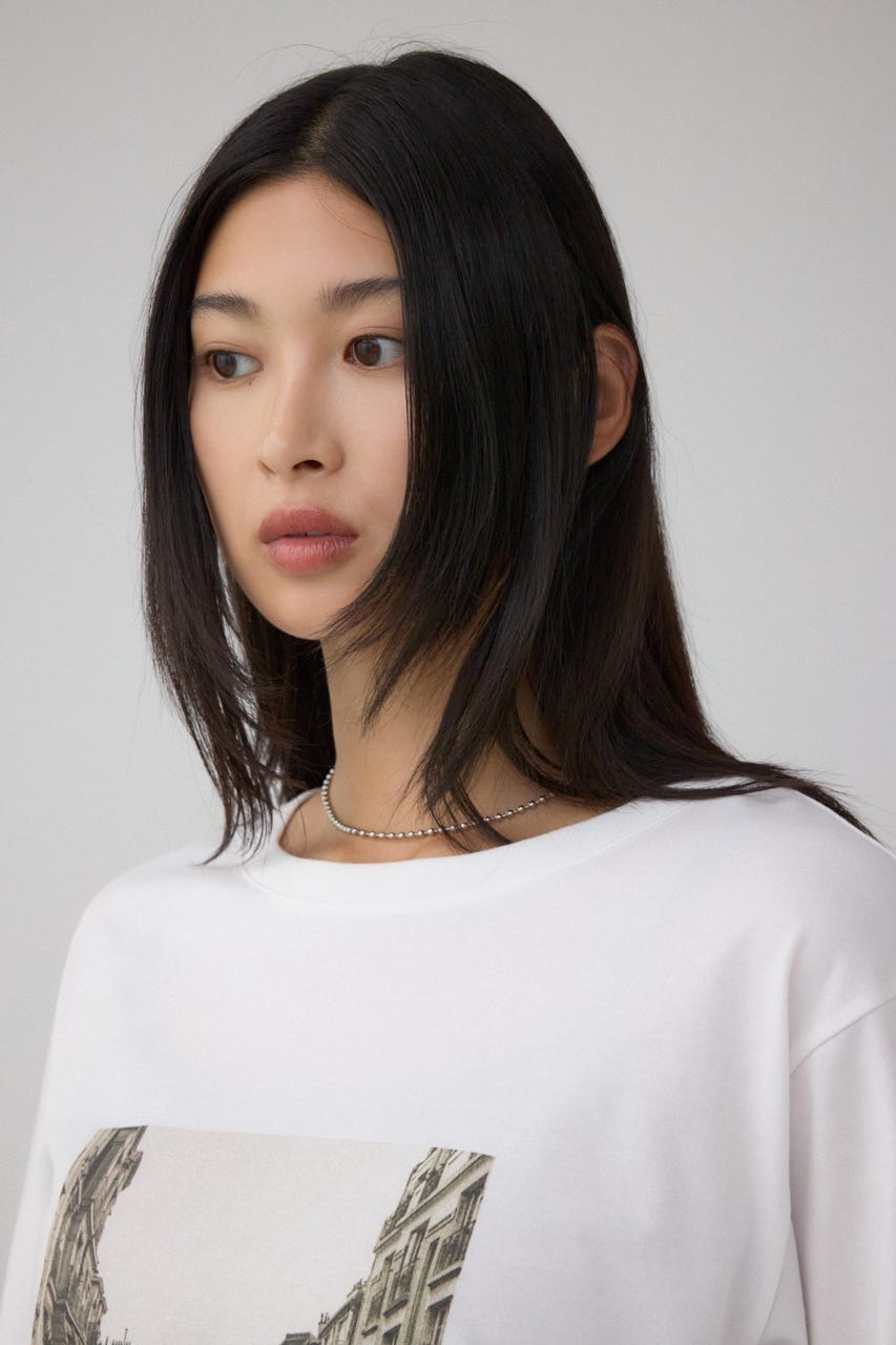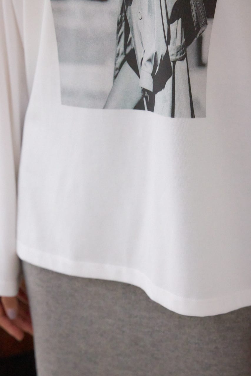 フォトプリント加工を施したTC天竺カットソー生地を使用。