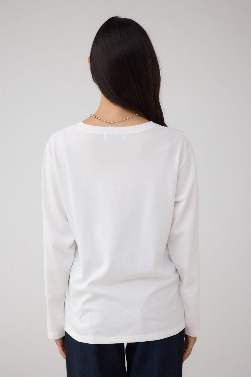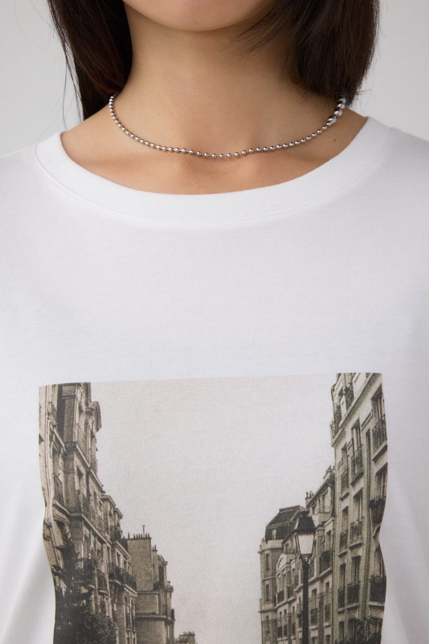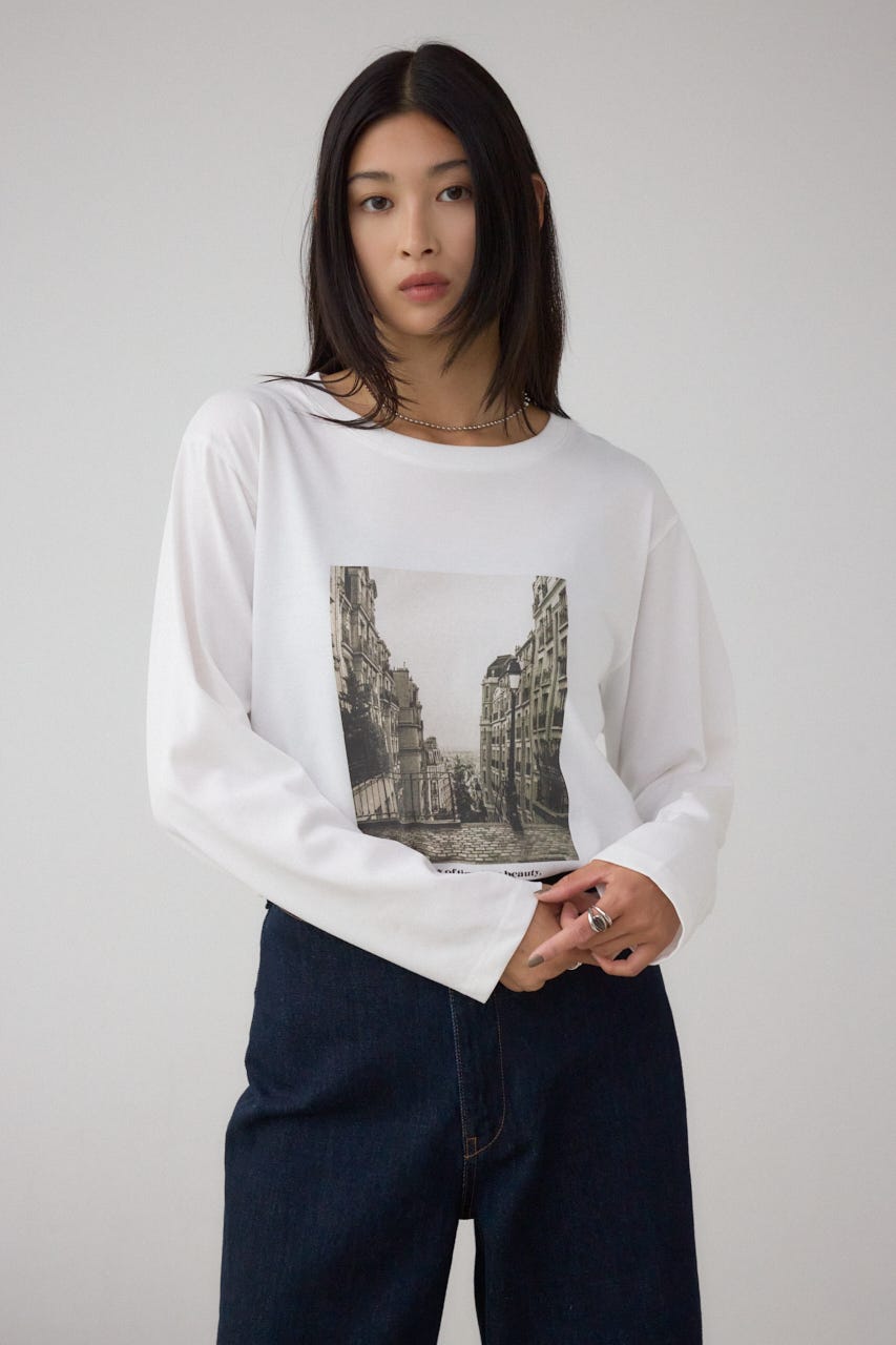 フォトプリント加工を施したTC天竺カットソー生地を使用。