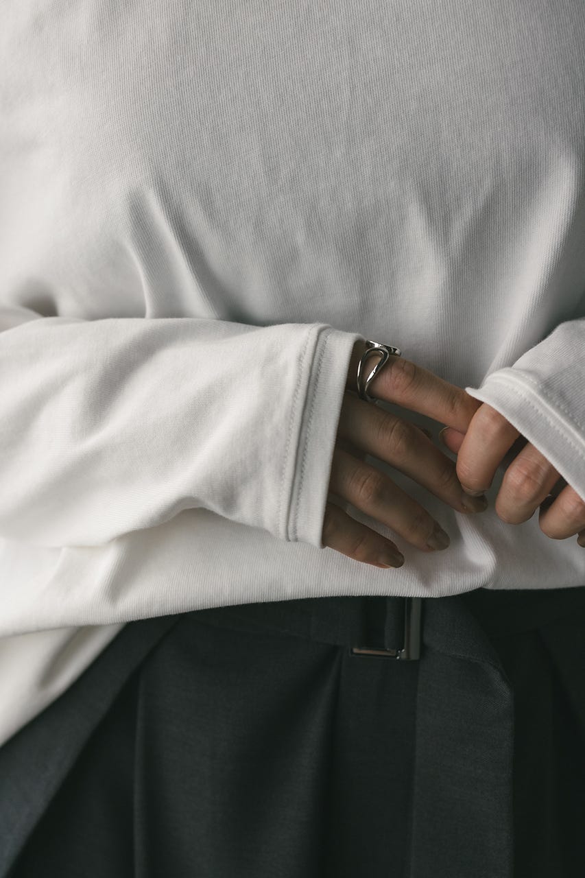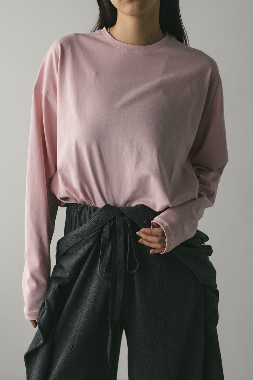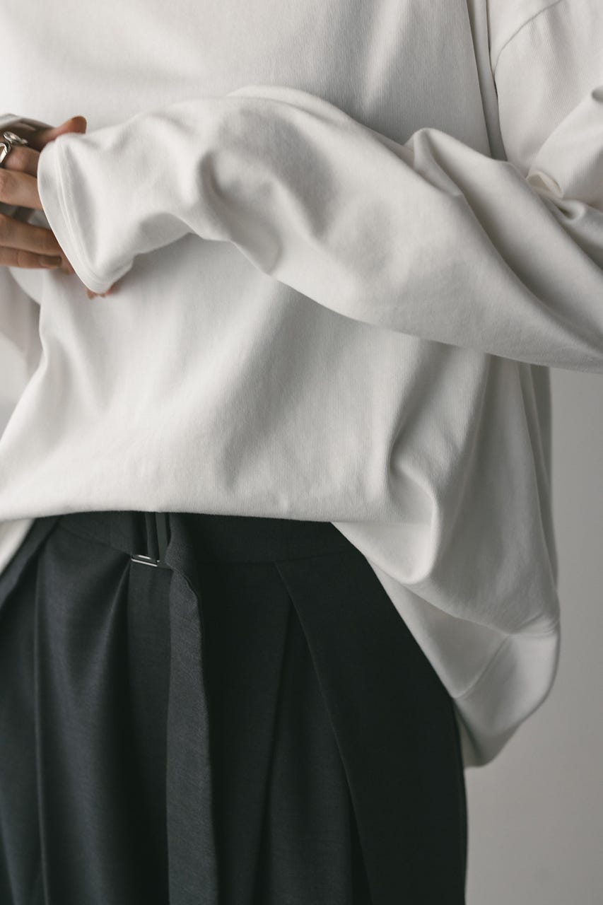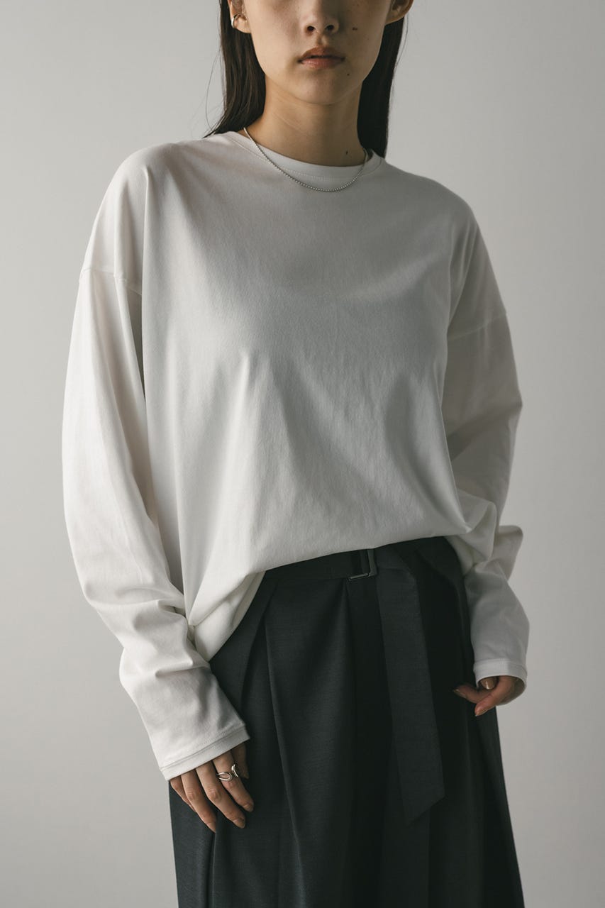 身体のラインをカバーする程よく厚みのある生地を使用したシンプルな着回しの効くロンT。