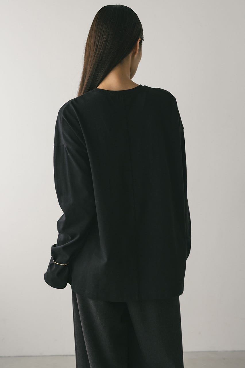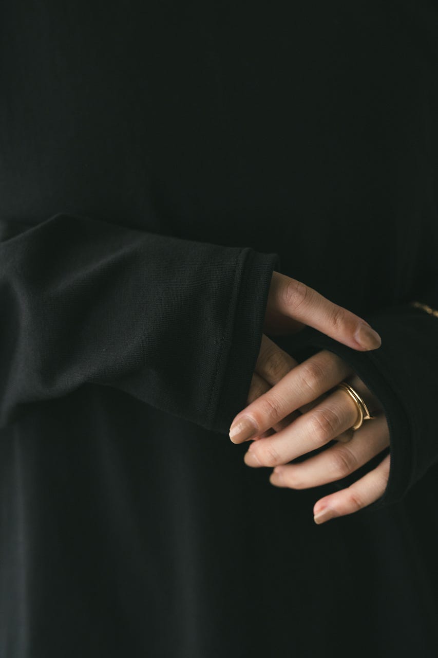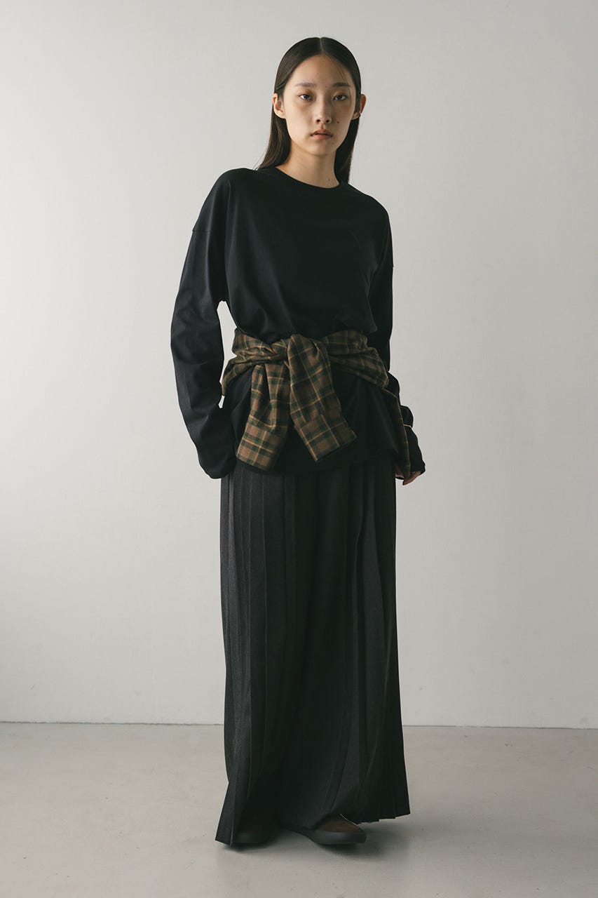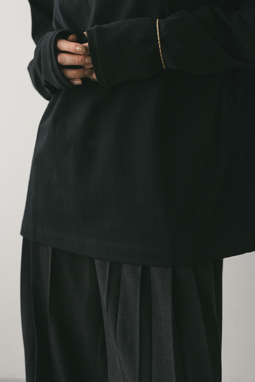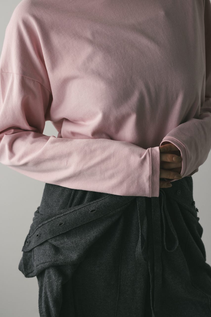 身体のラインをカバーする程よく厚みのある生地を使用したシンプルな着回しの効くロンT。