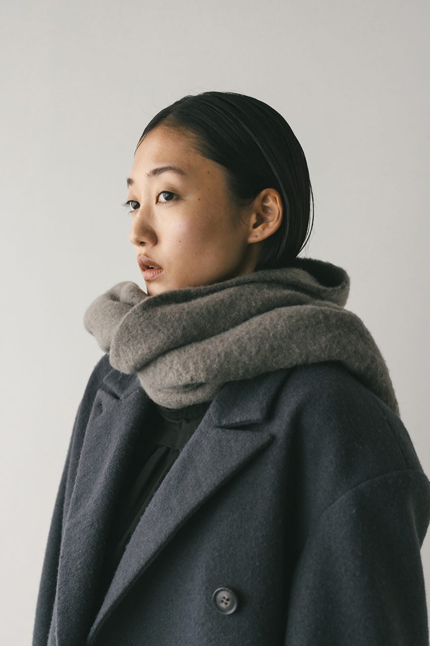 程よくボリュームもあり首や顔まわりをしっかりと包み込みます。
