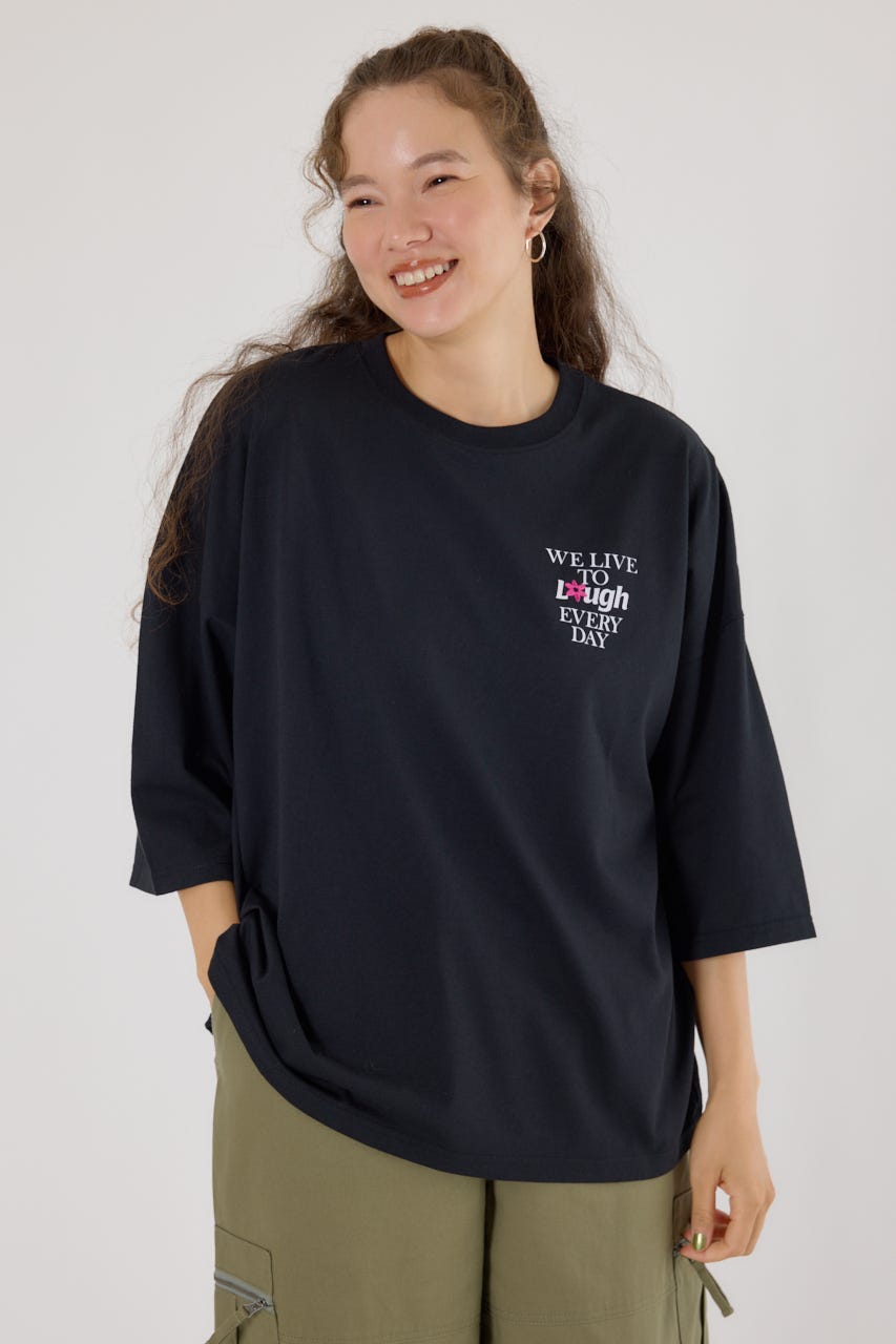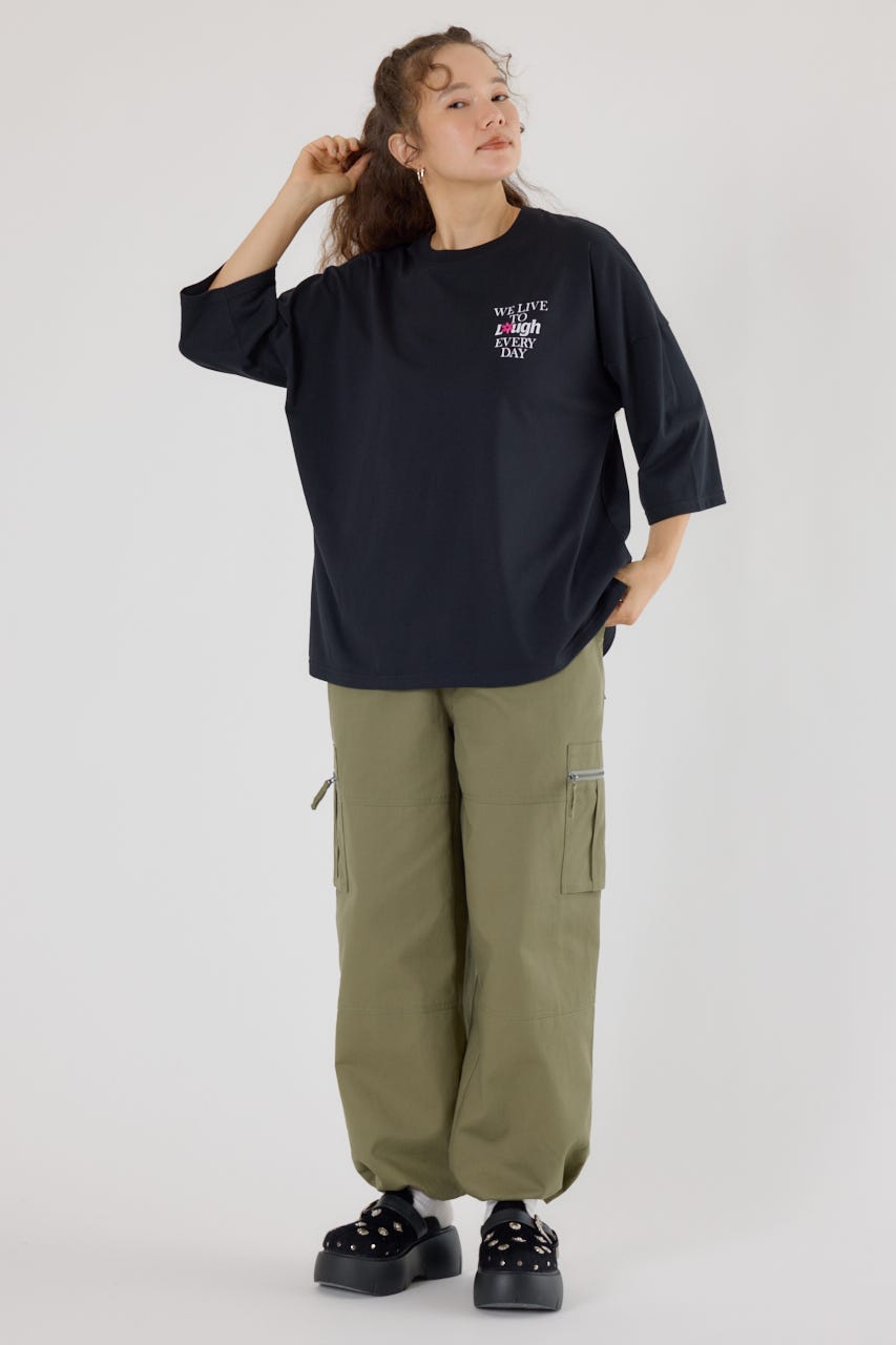 ルーズなサイズ感で、体型を気にせずリラックスして着られます。
