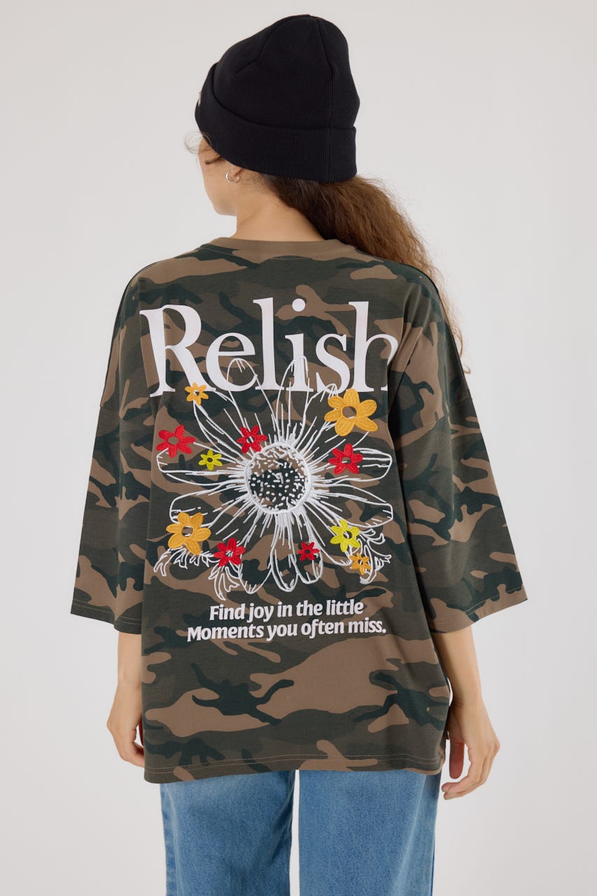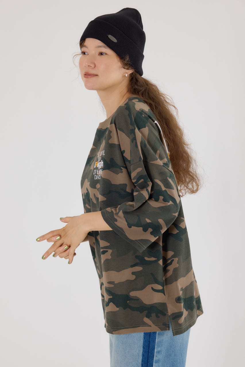 デニムパンツやカーゴパンツに合わせてメンズライクに、フラワーのプリントとの甘辛ミックスをおすすめします。