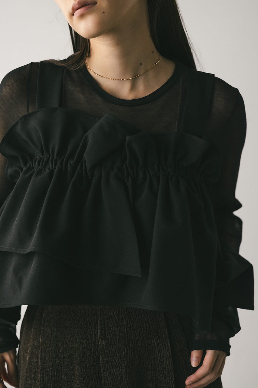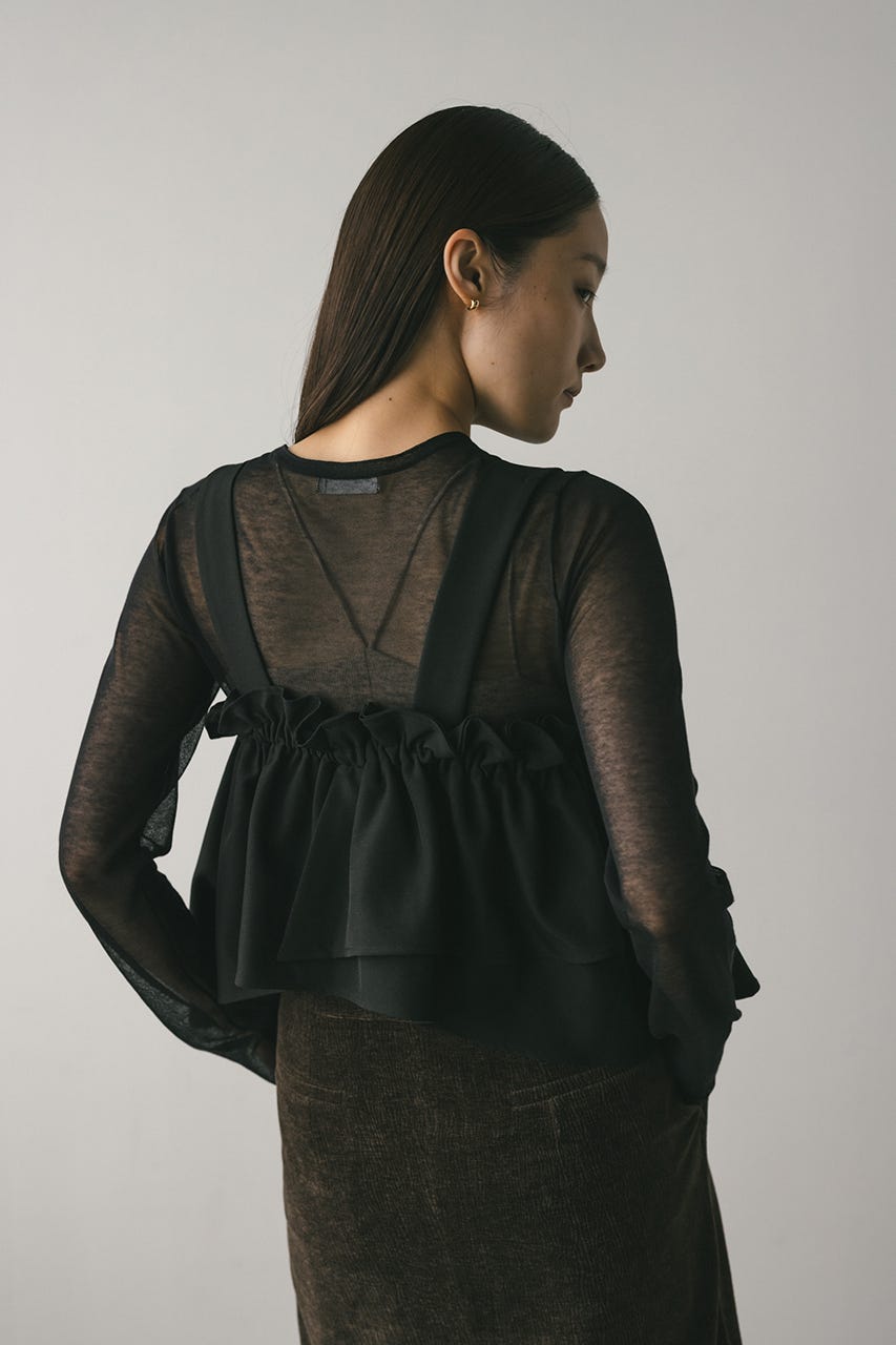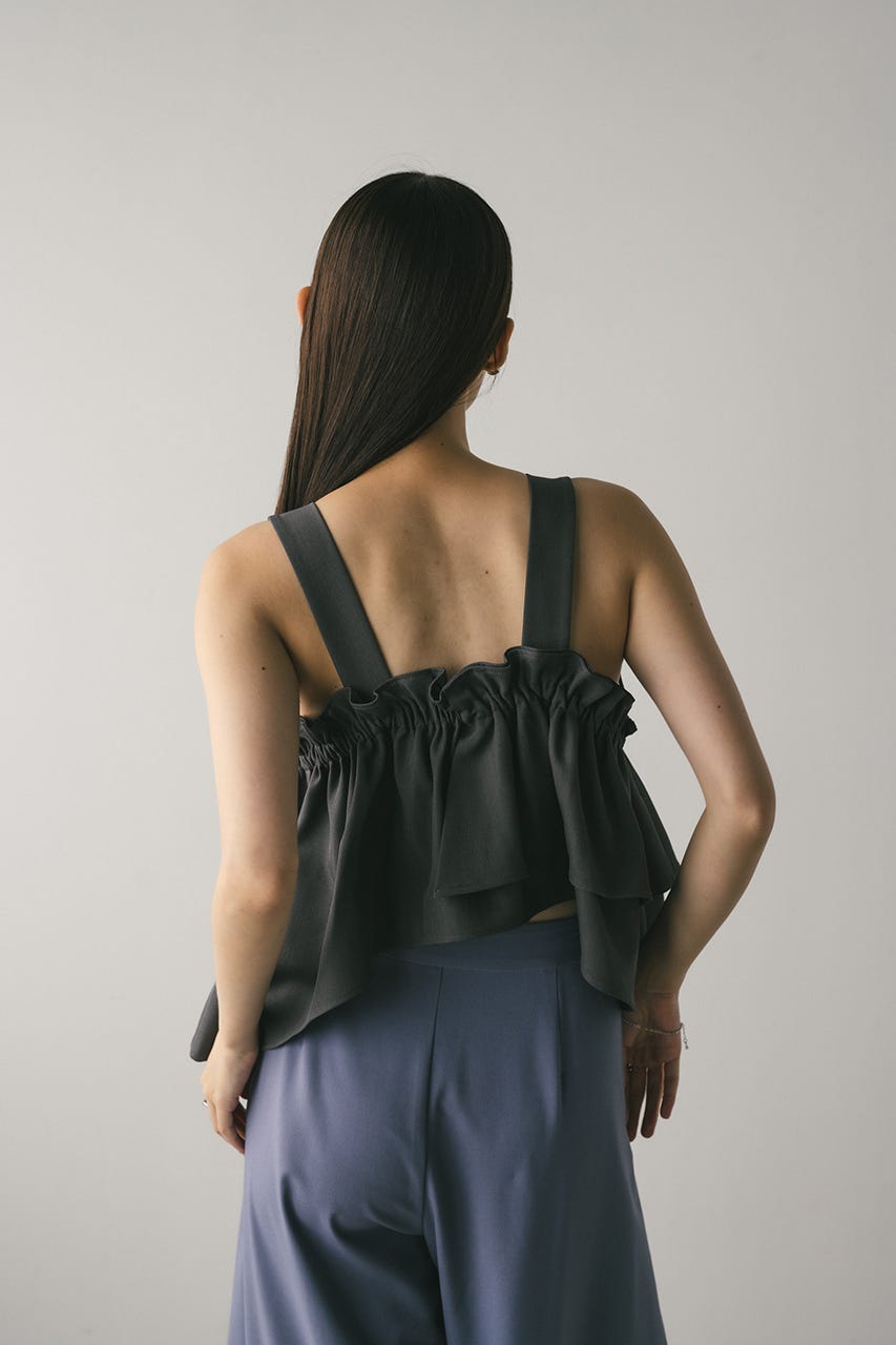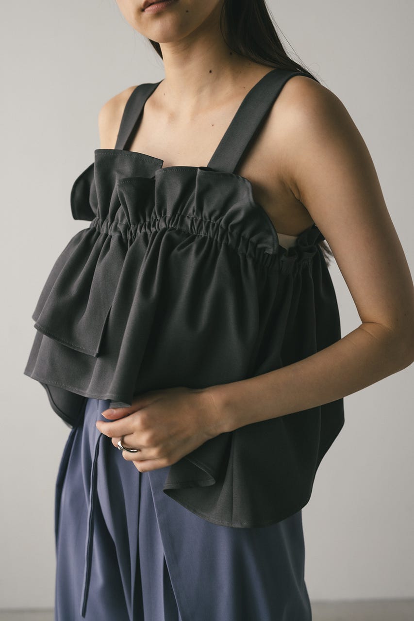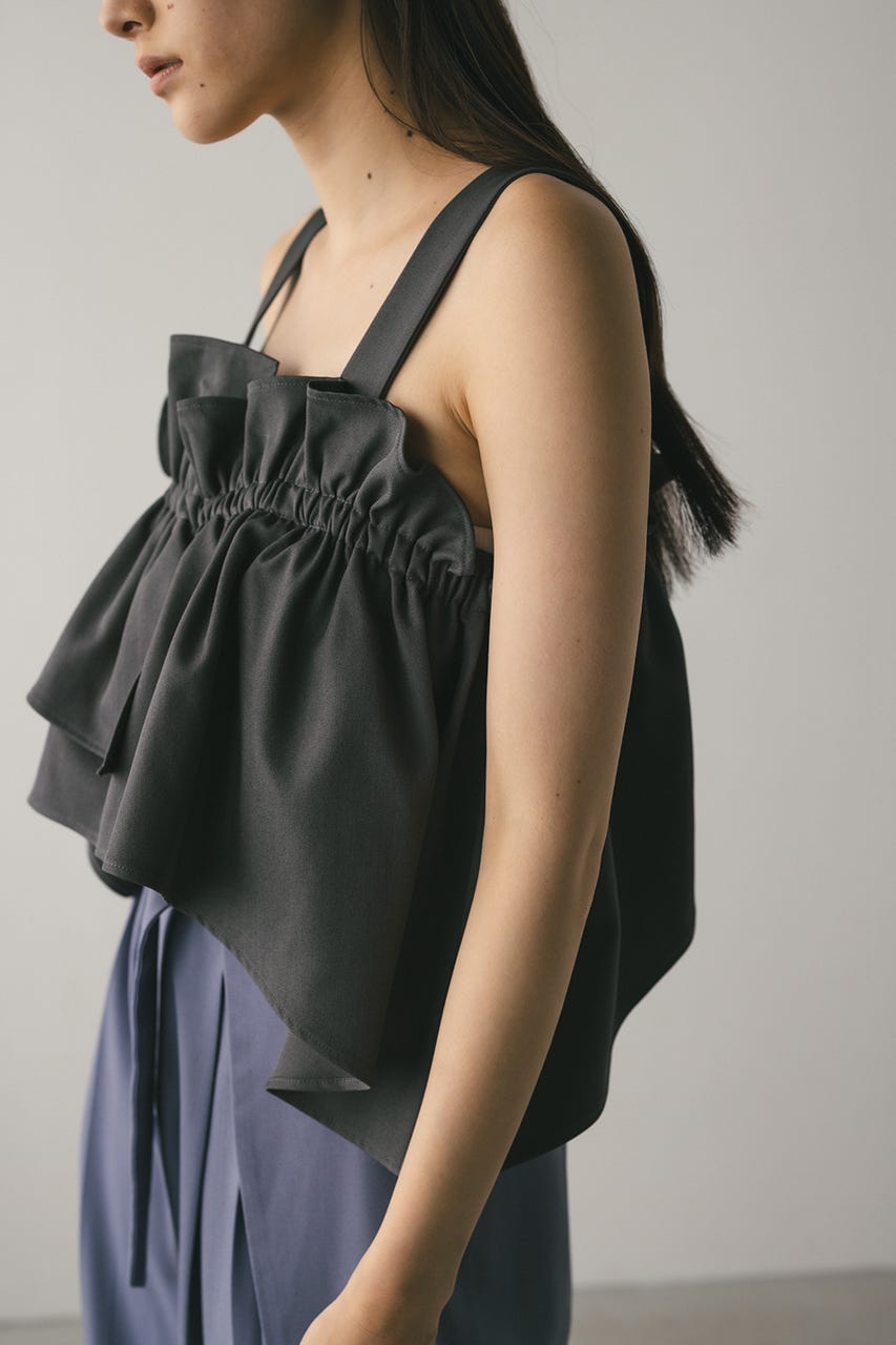 アシンメトリーなデザインがポイントのフリルビスチェ。