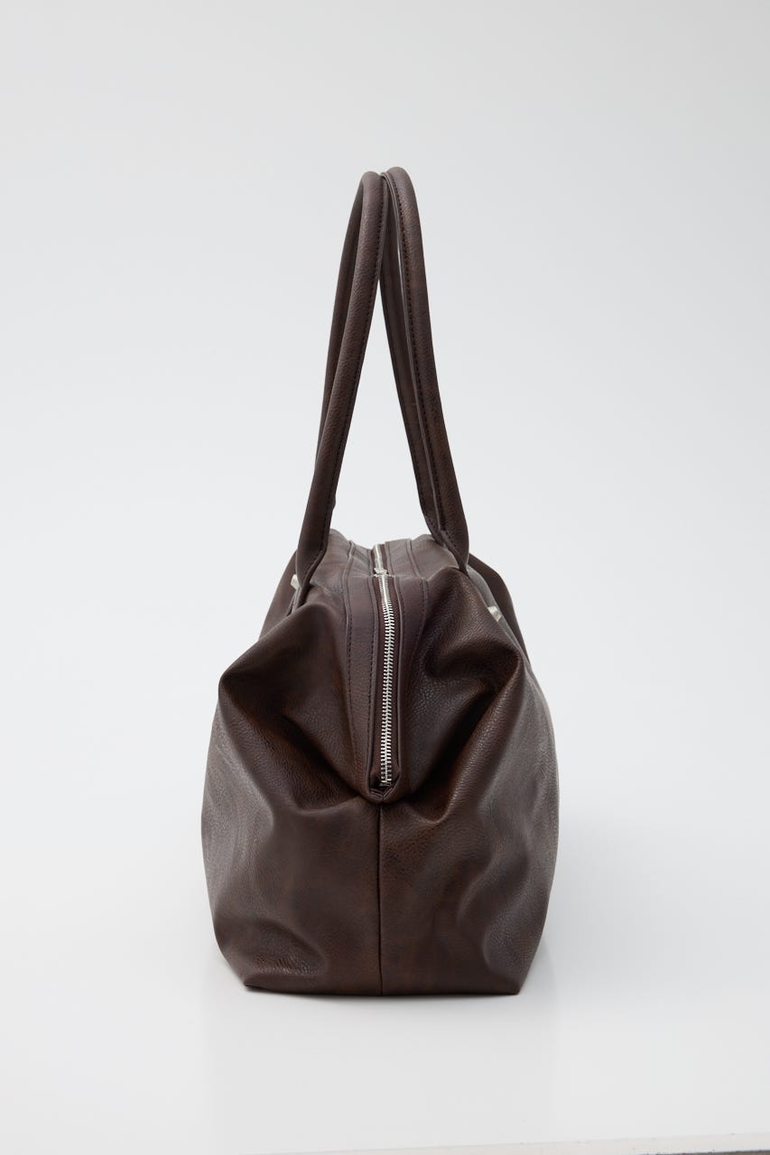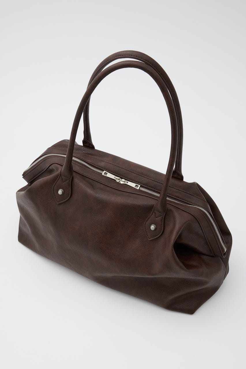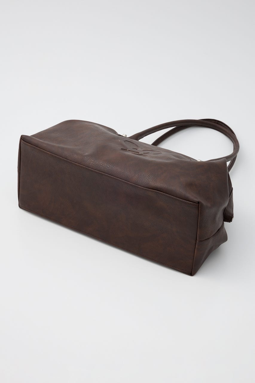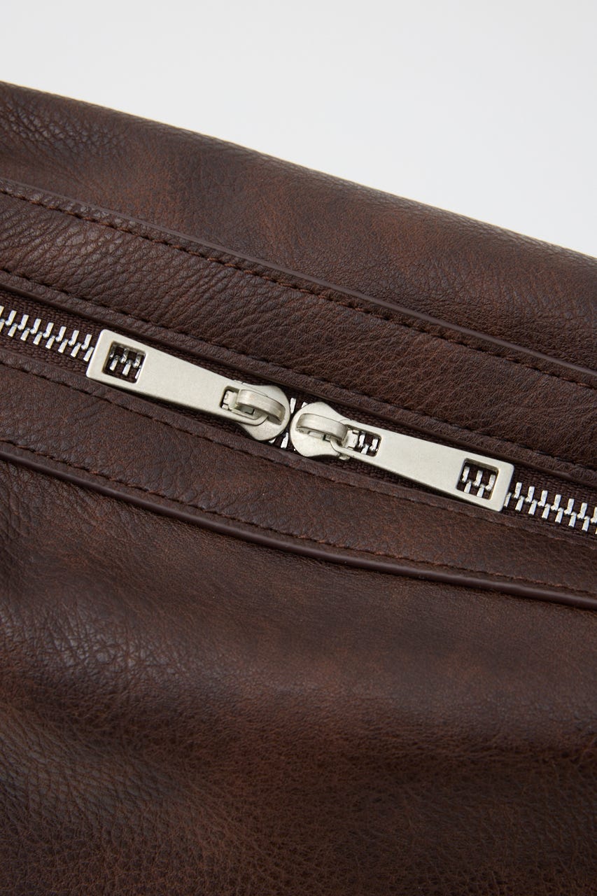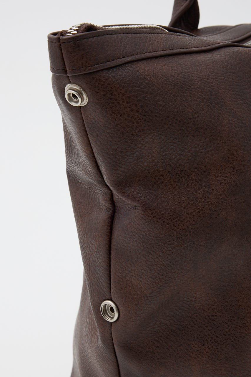 シボ感のあるフェイクレザーが目を惹くアイテム。