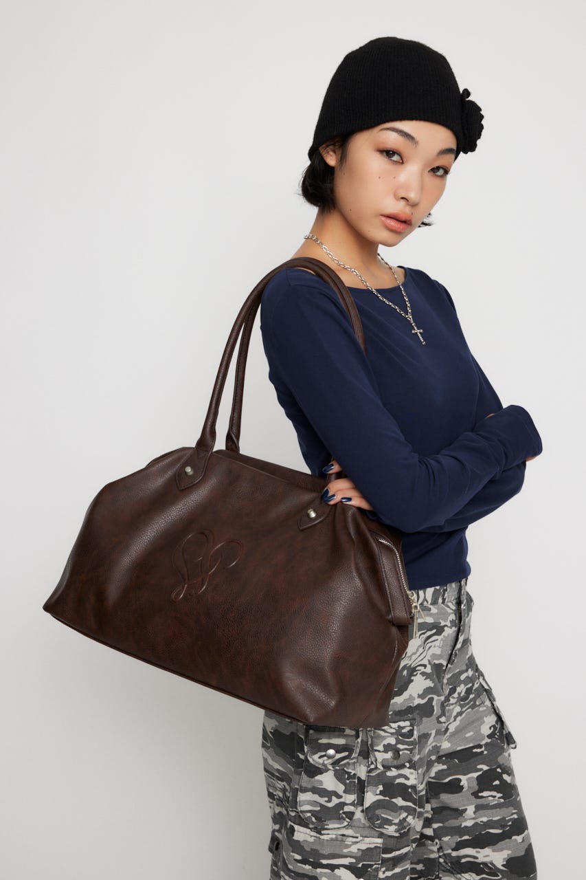 立体感のあるオリジナルのモチーフがポイントのボストンバッグ。