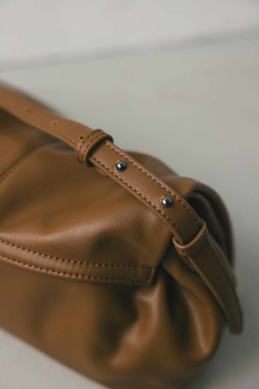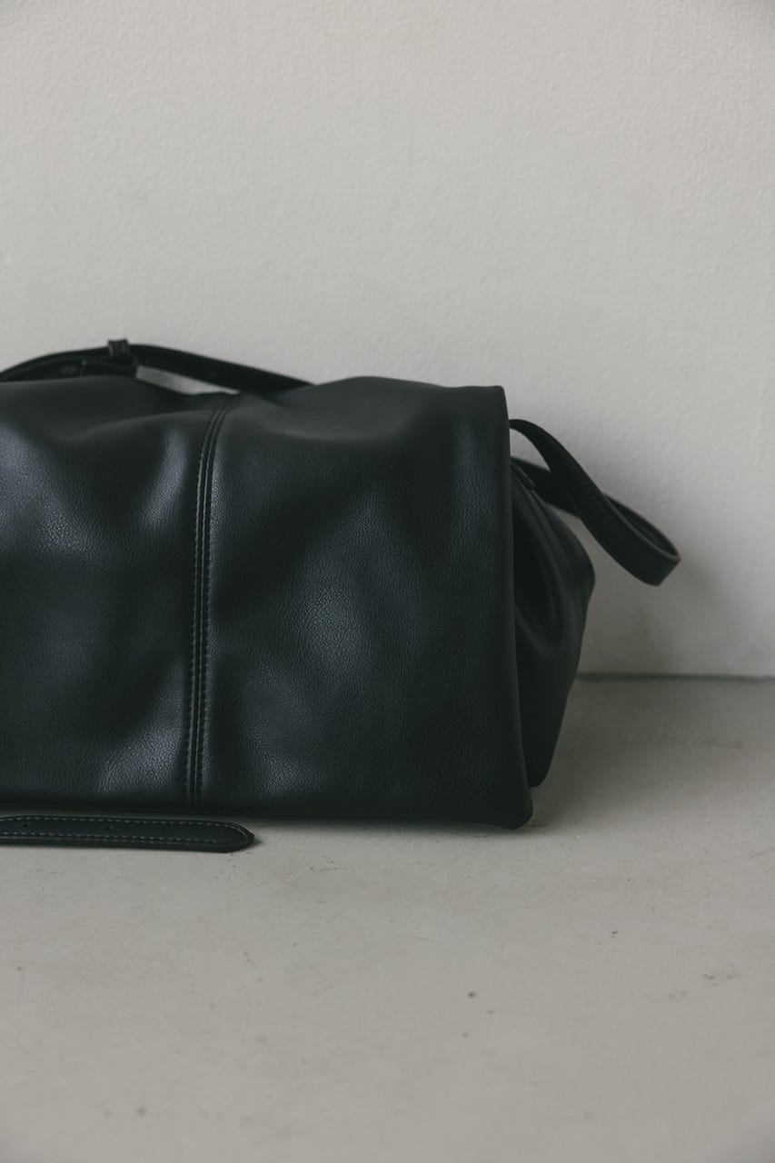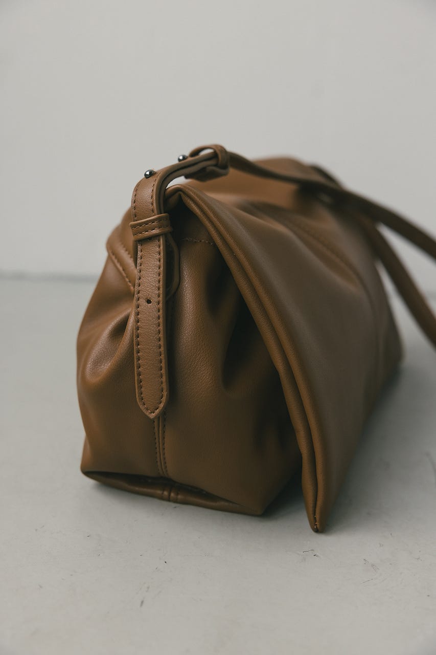マットで上品なフェイクレザーを使用した、綺麗目にもカジュアルにも馴染むショルダーバッグ。