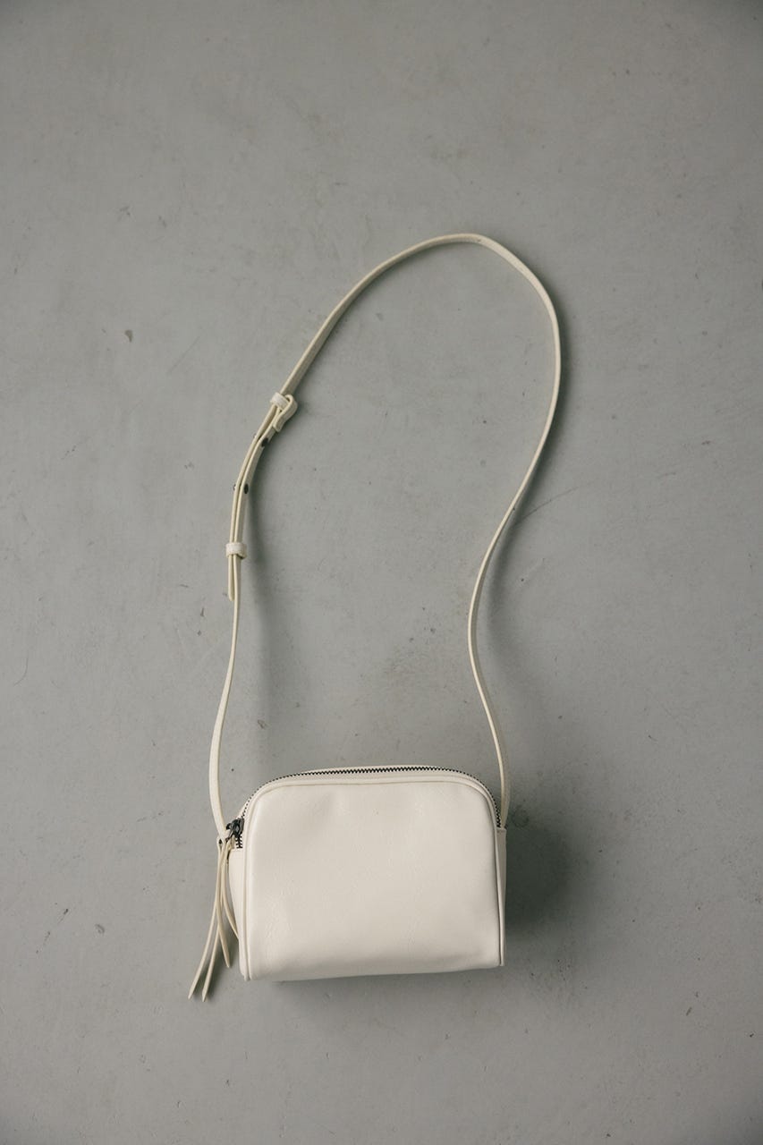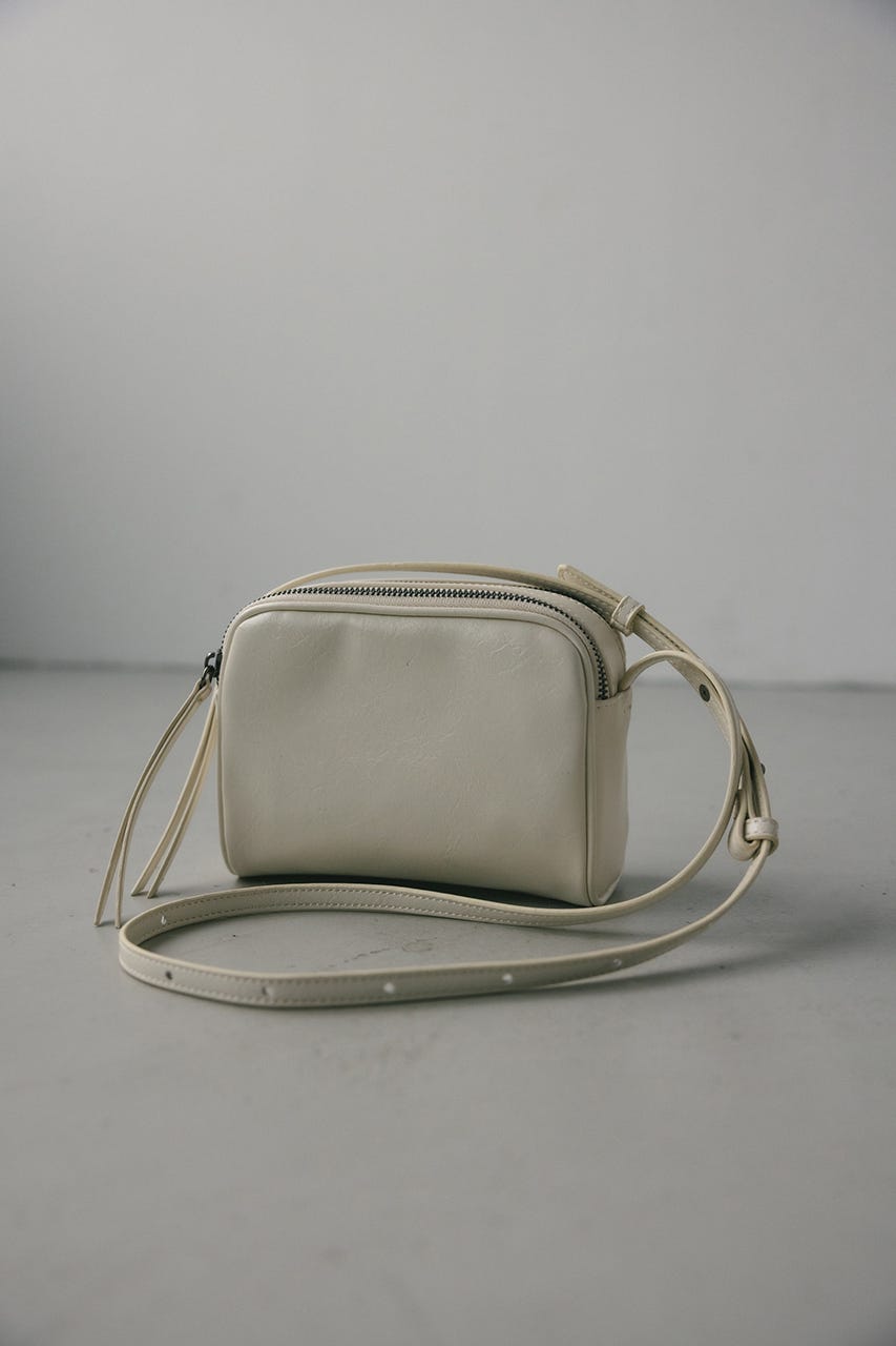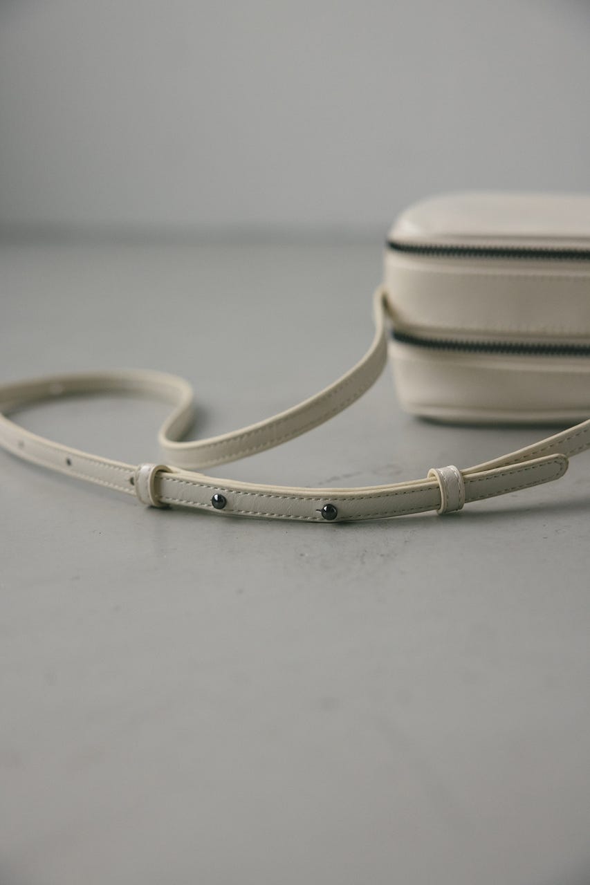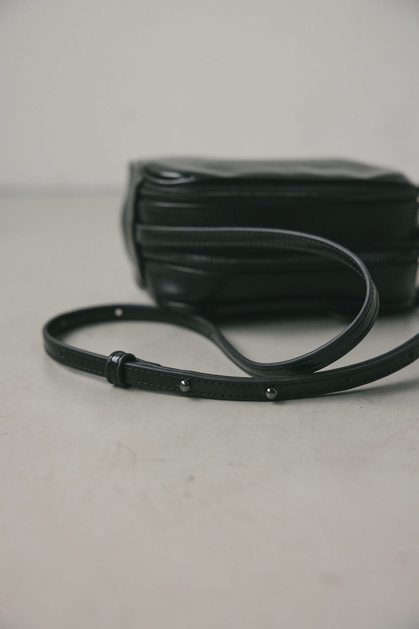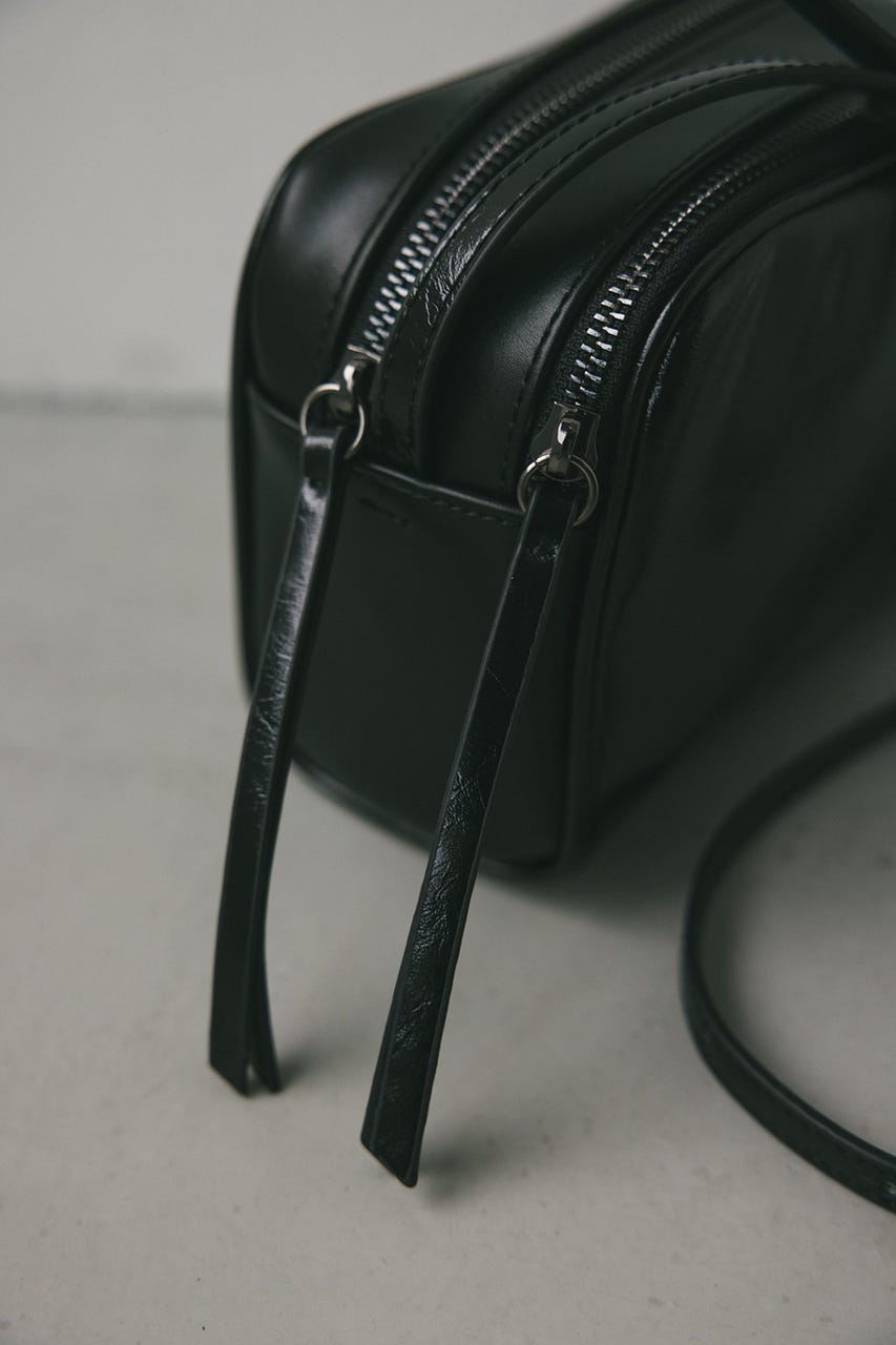 ダブルジップがポイントのコンパクトなスクエア型のショルダーバッグ。
