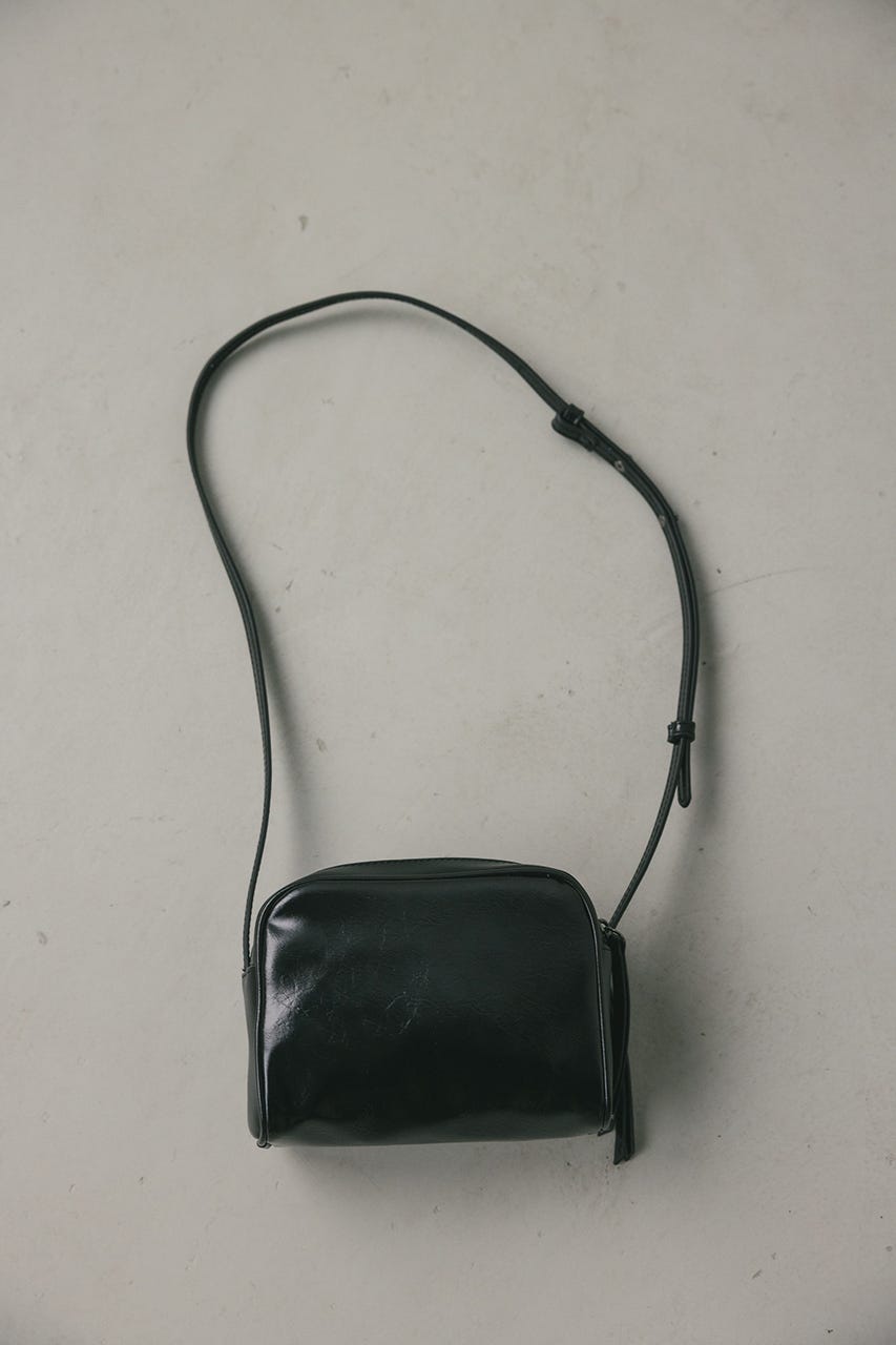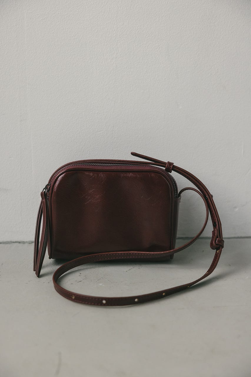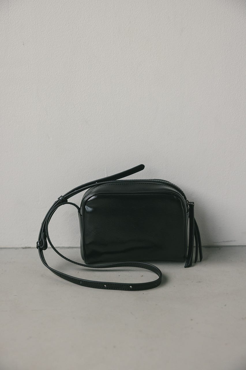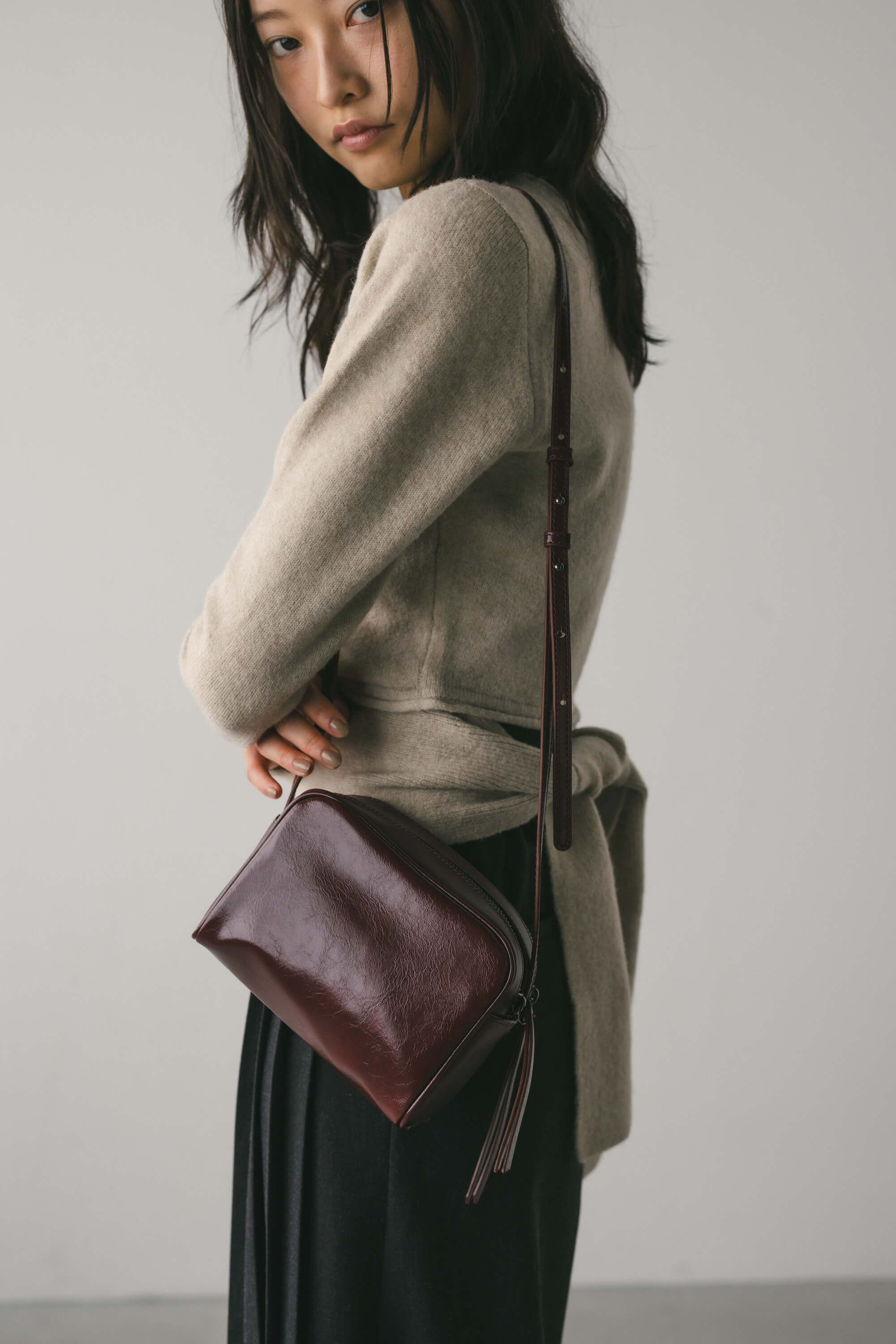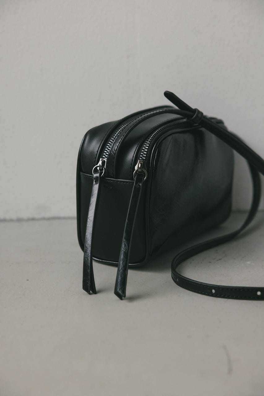 ダブルジップがポイントのコンパクトなスクエア型のショルダーバッグ。