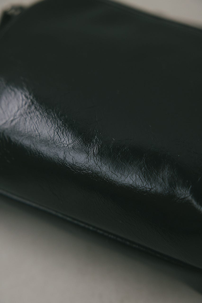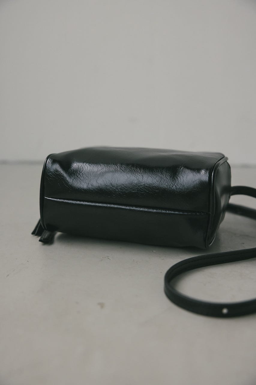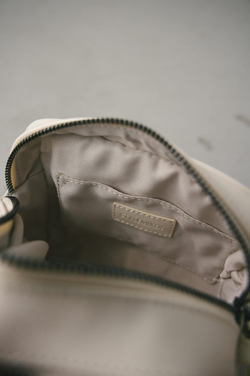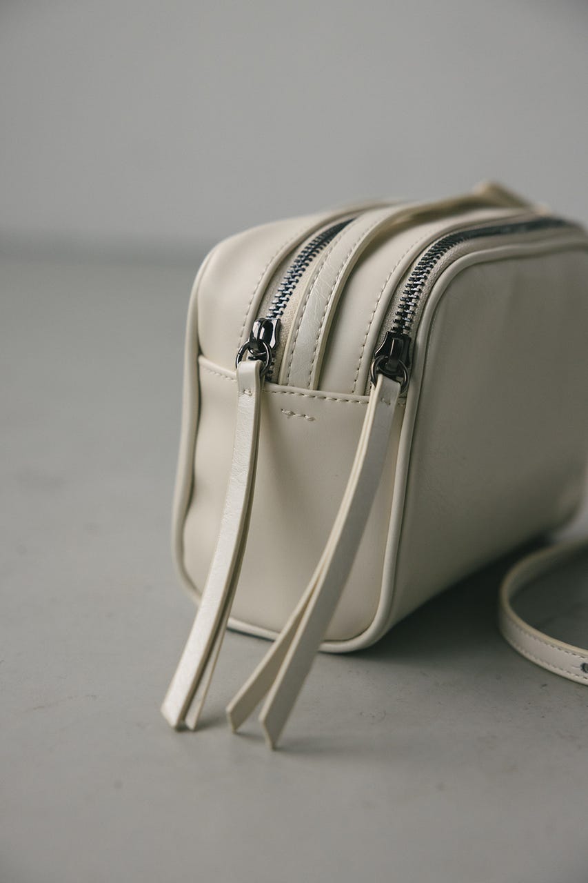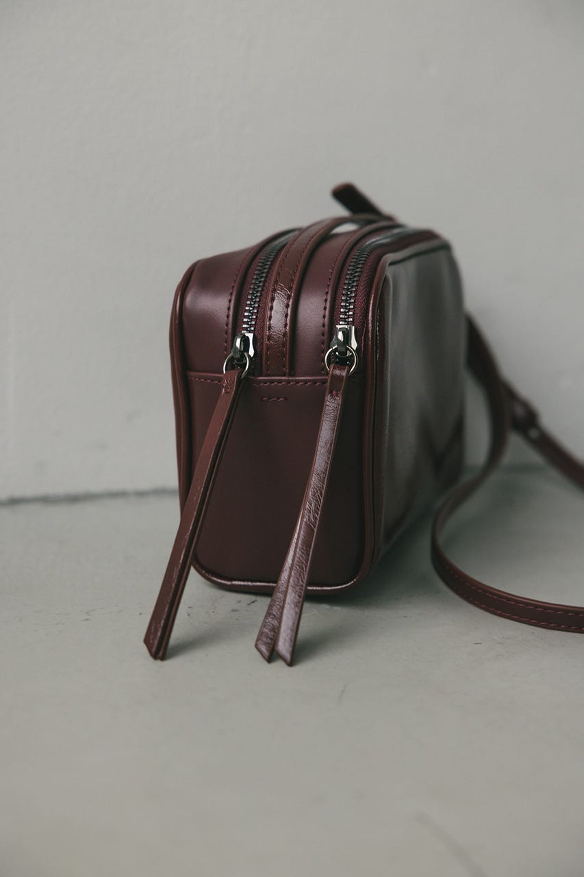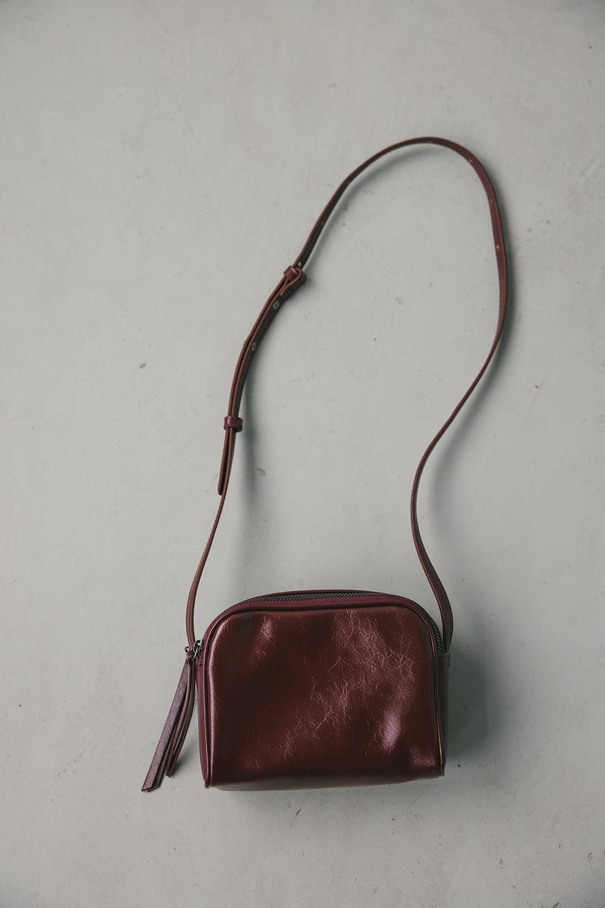 ダブルジップがポイントのコンパクトなスクエア型のショルダーバッグ。