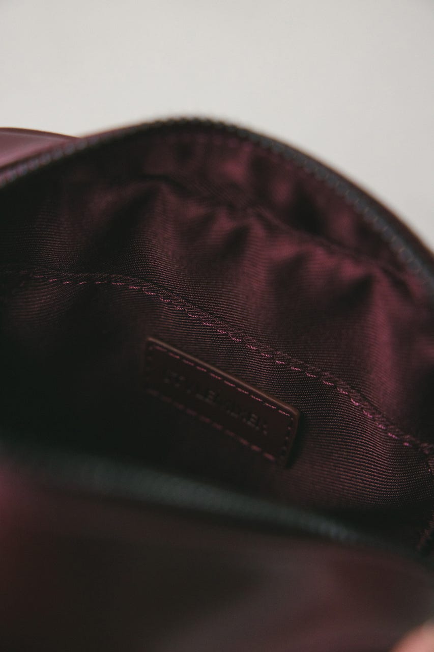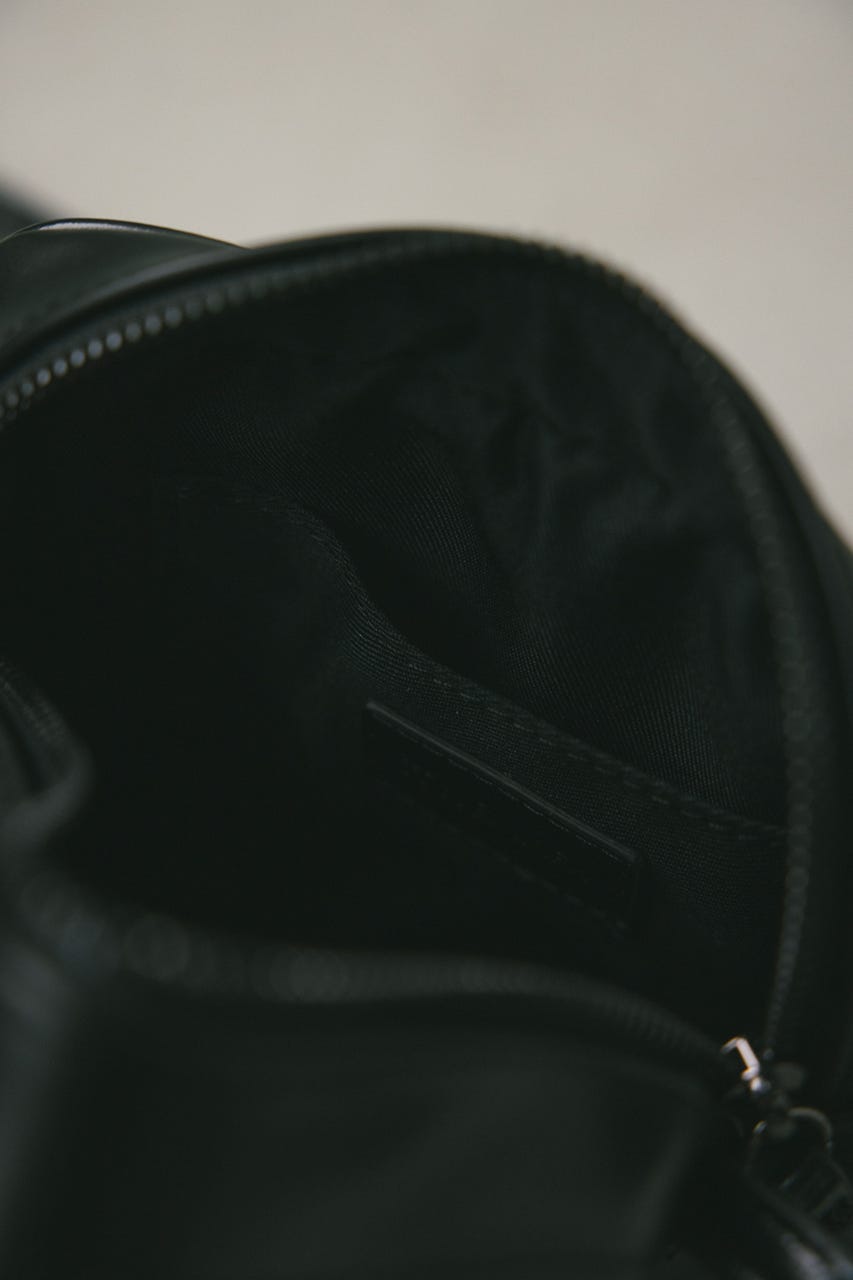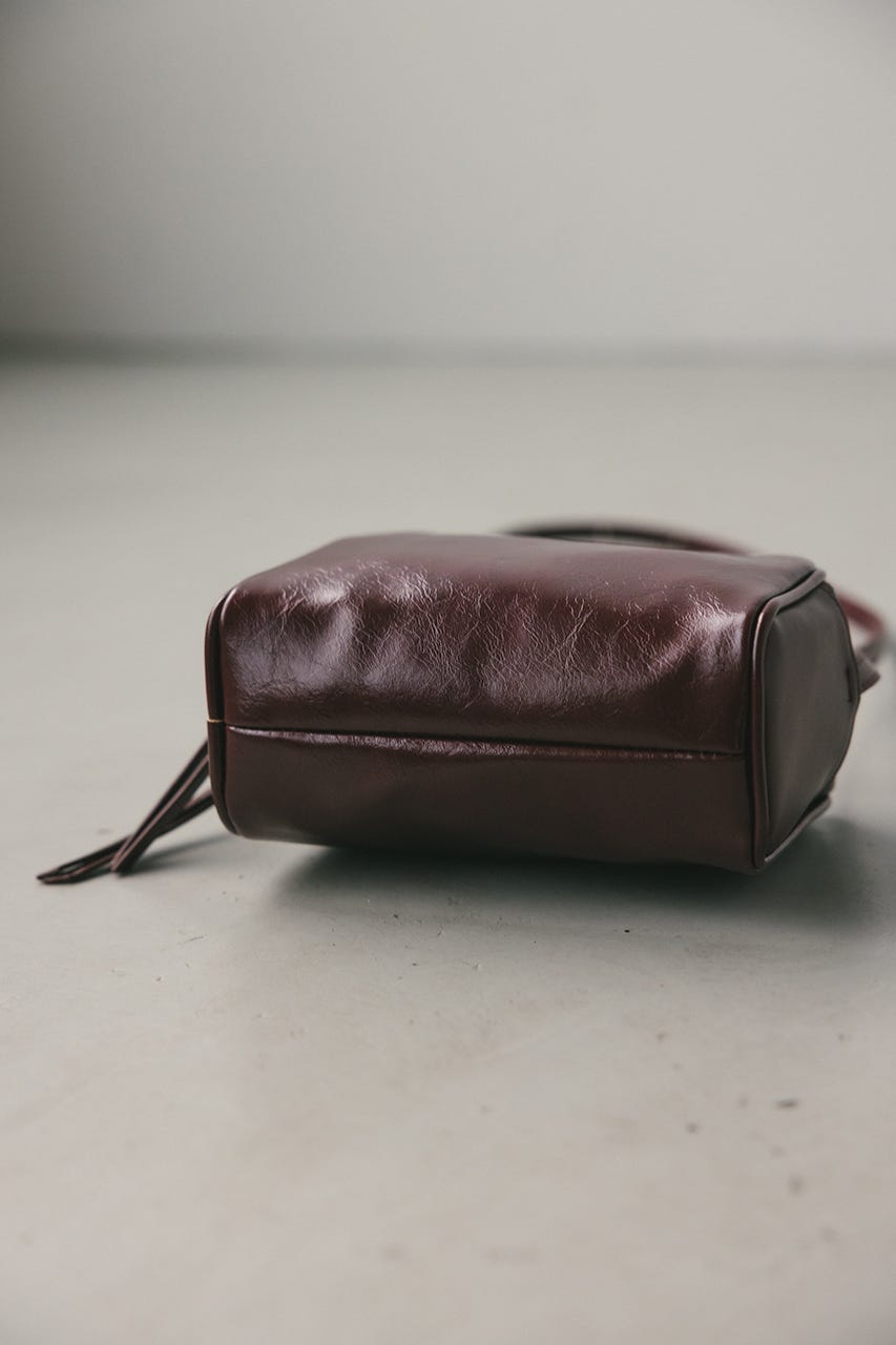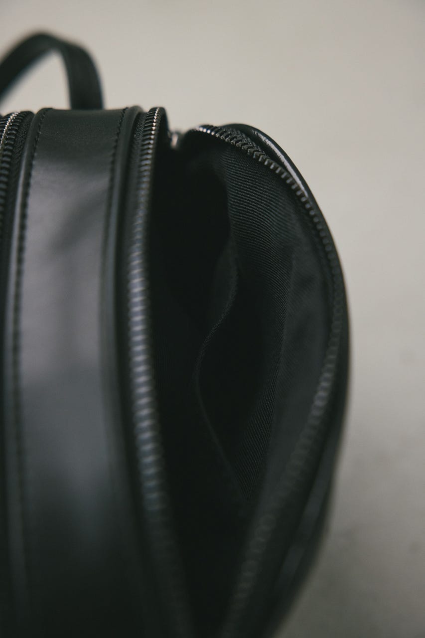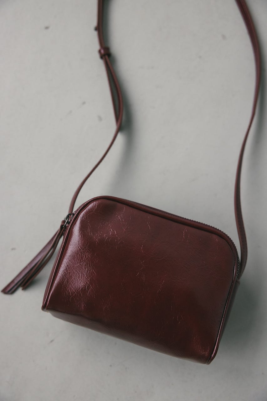 ダブルジップがポイントのコンパクトなスクエア型のショルダーバッグ。