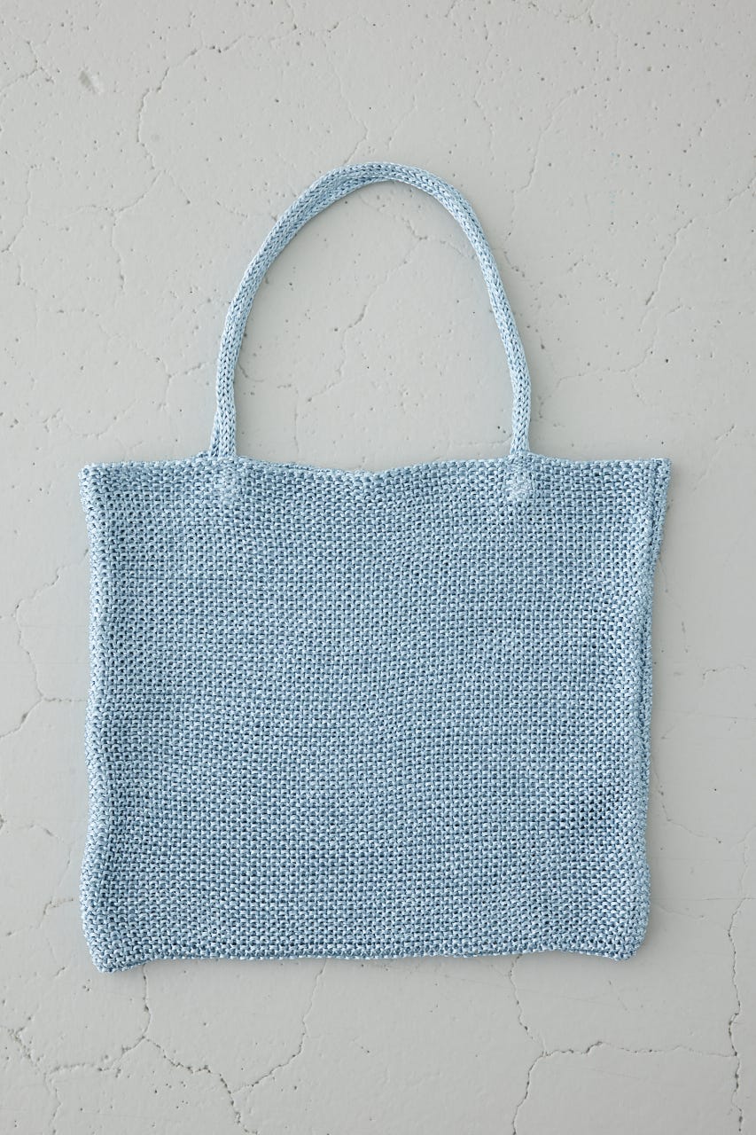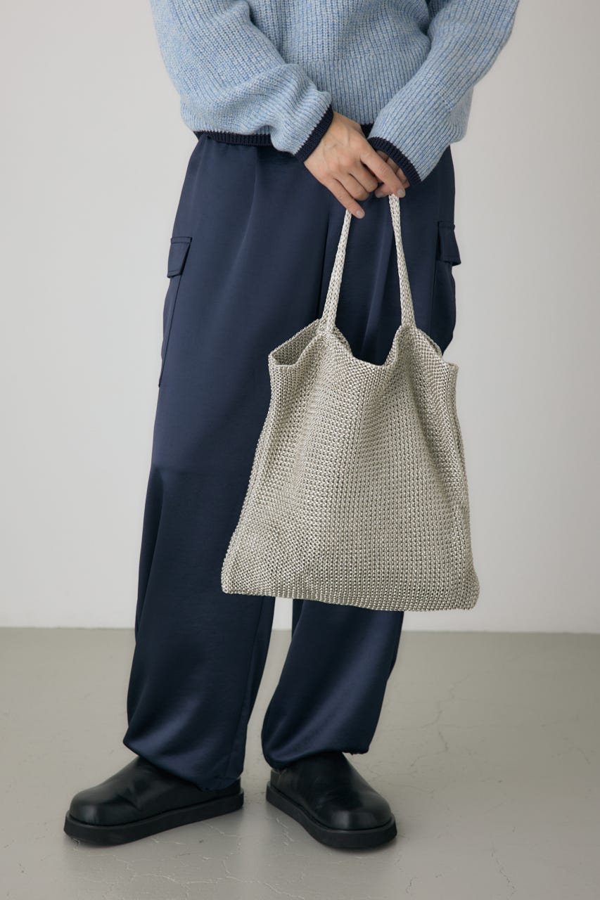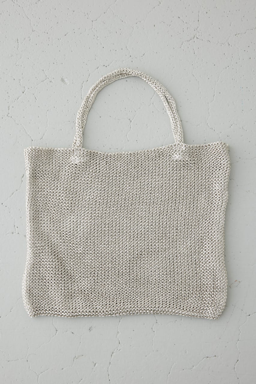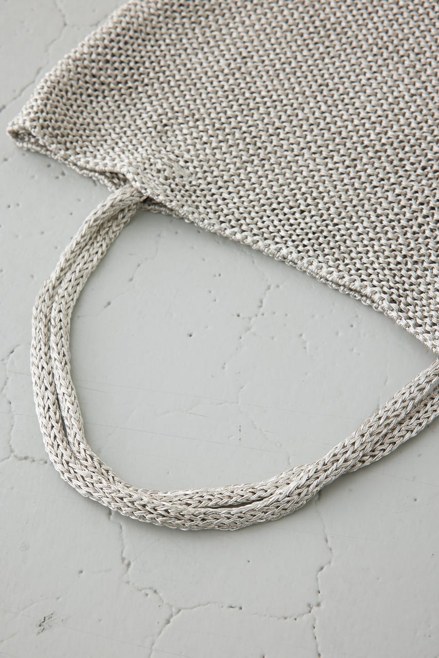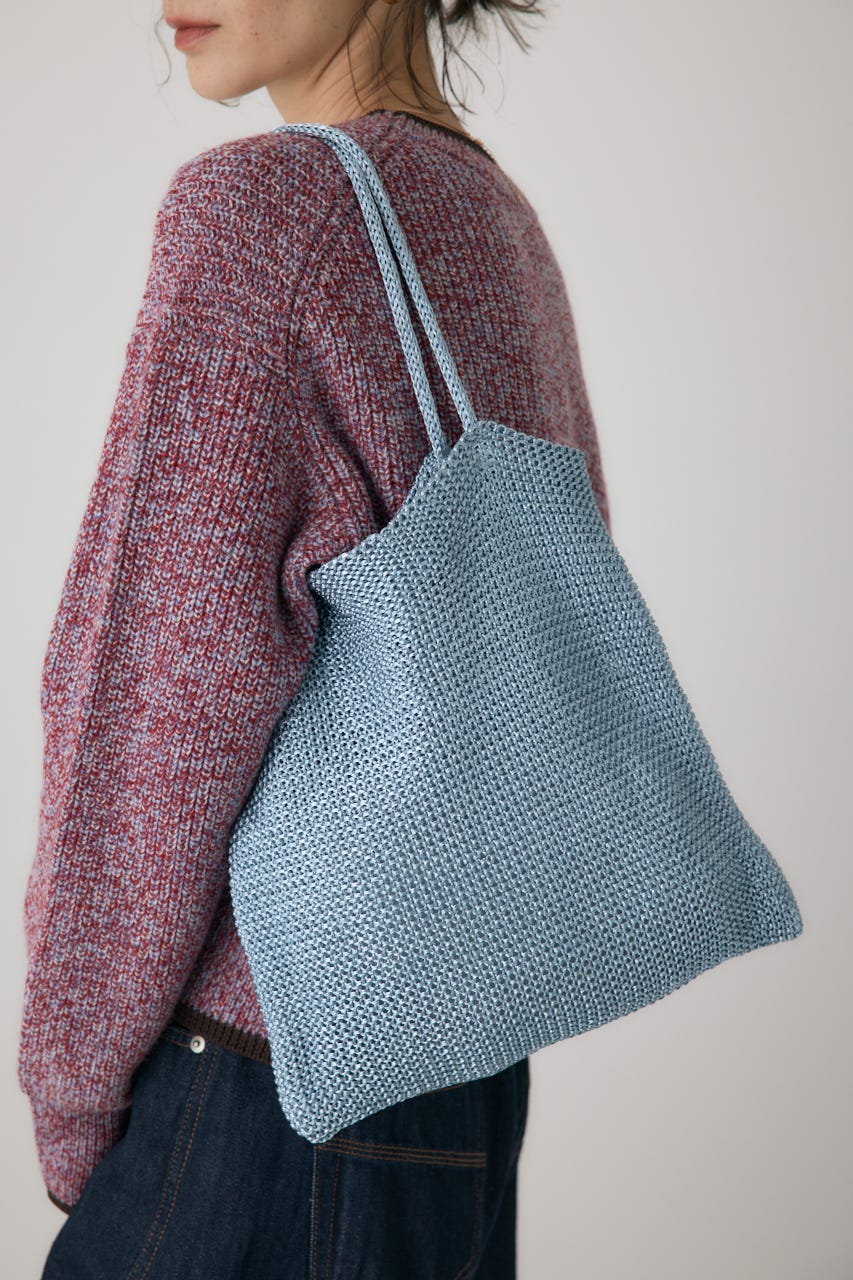 ラメ糸がポイントのニットで編まれているトートバッグ。