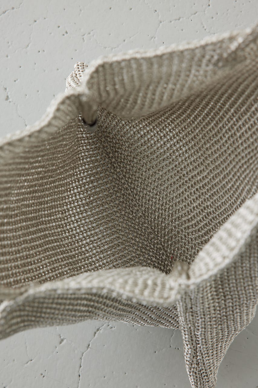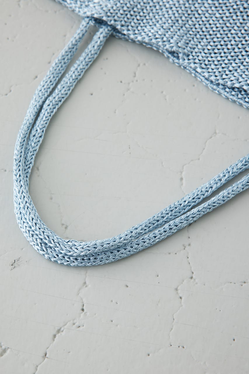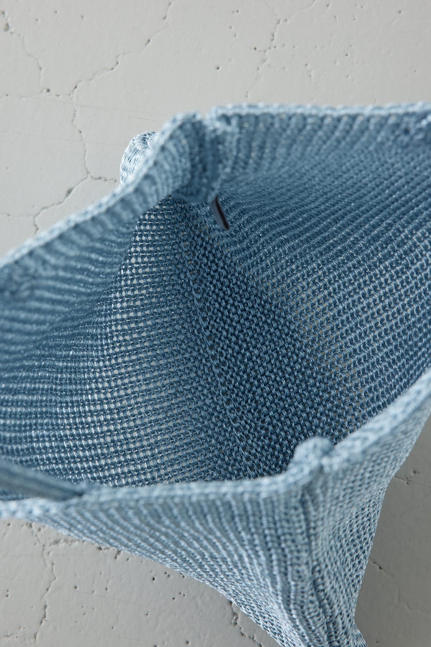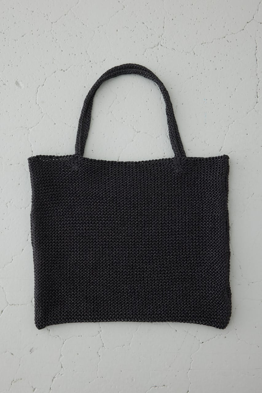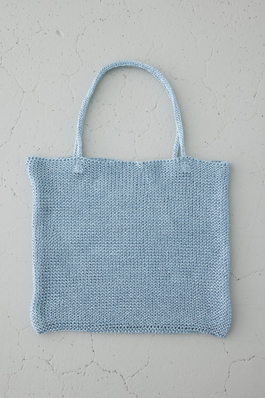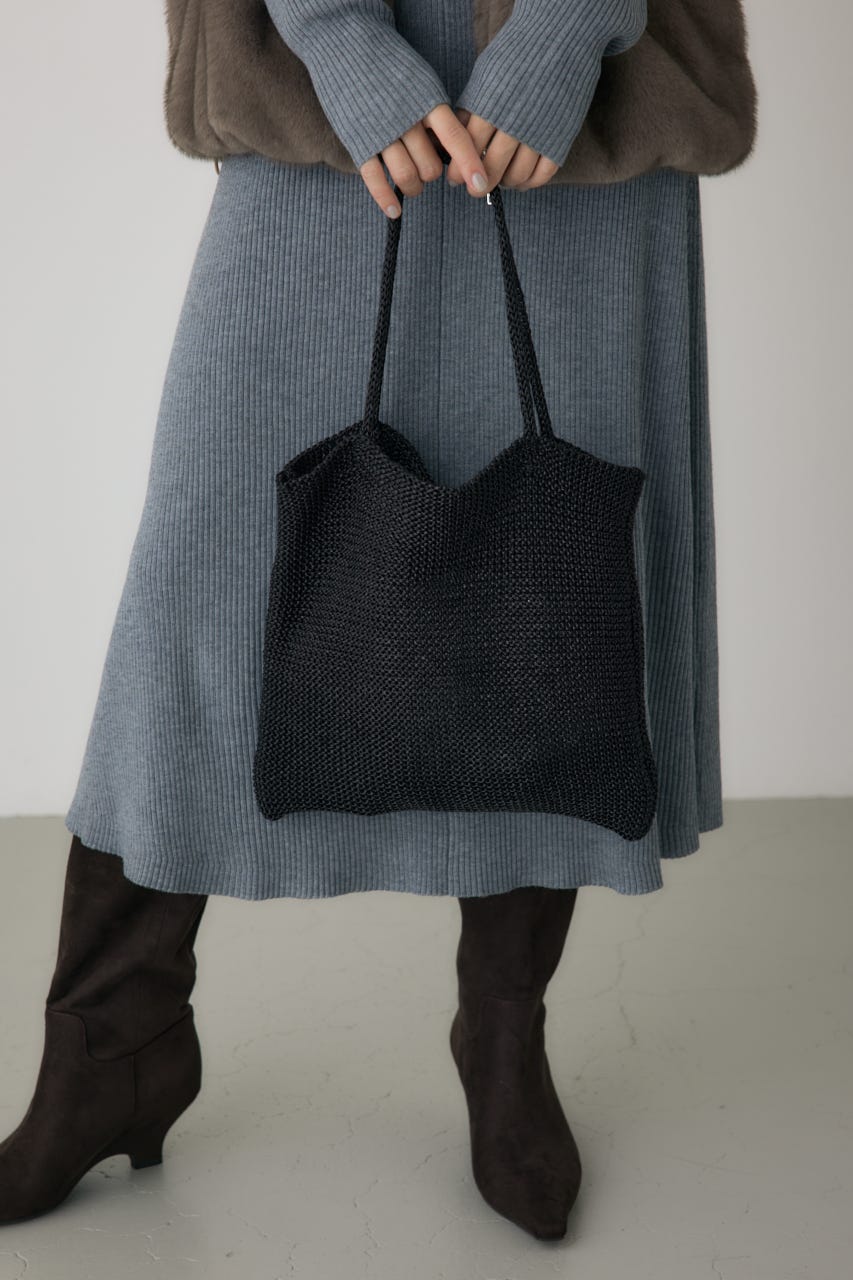 ラメ糸がポイントのニットで編まれているトートバッグ。