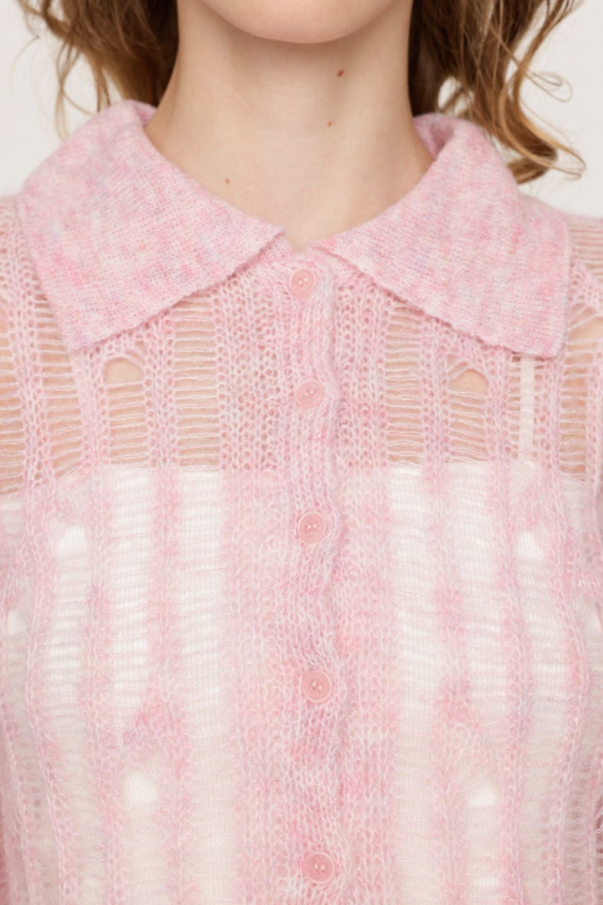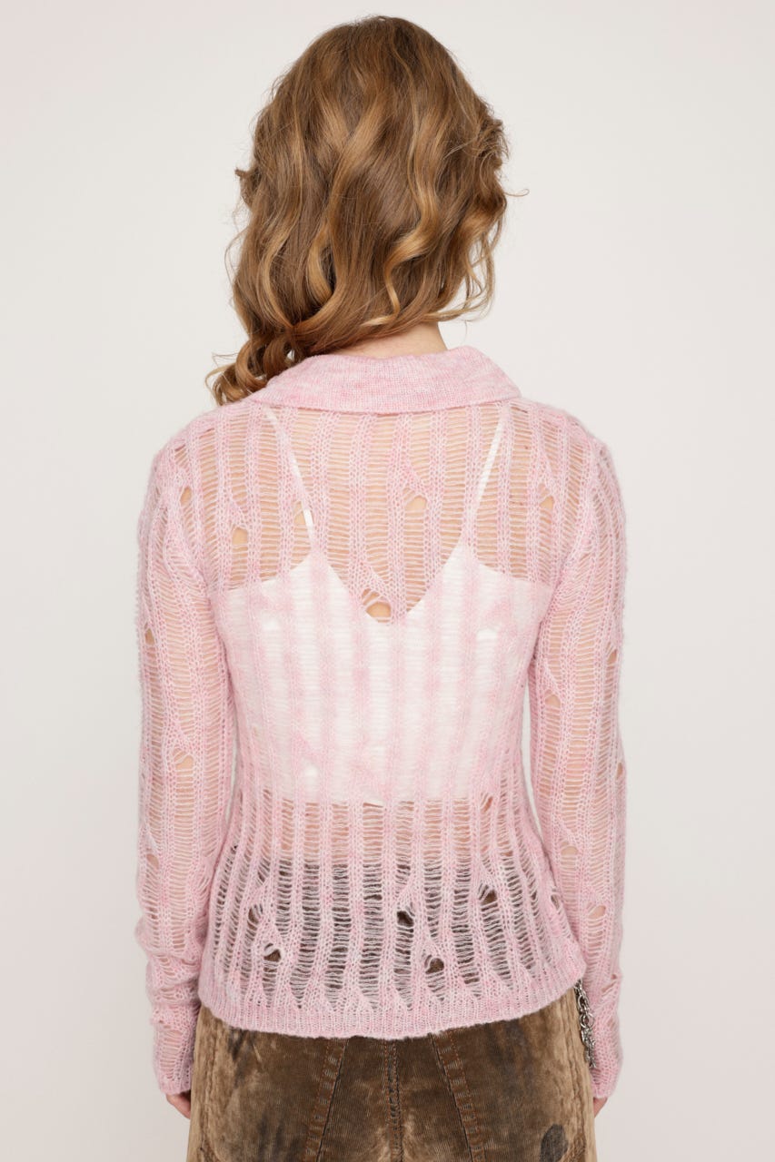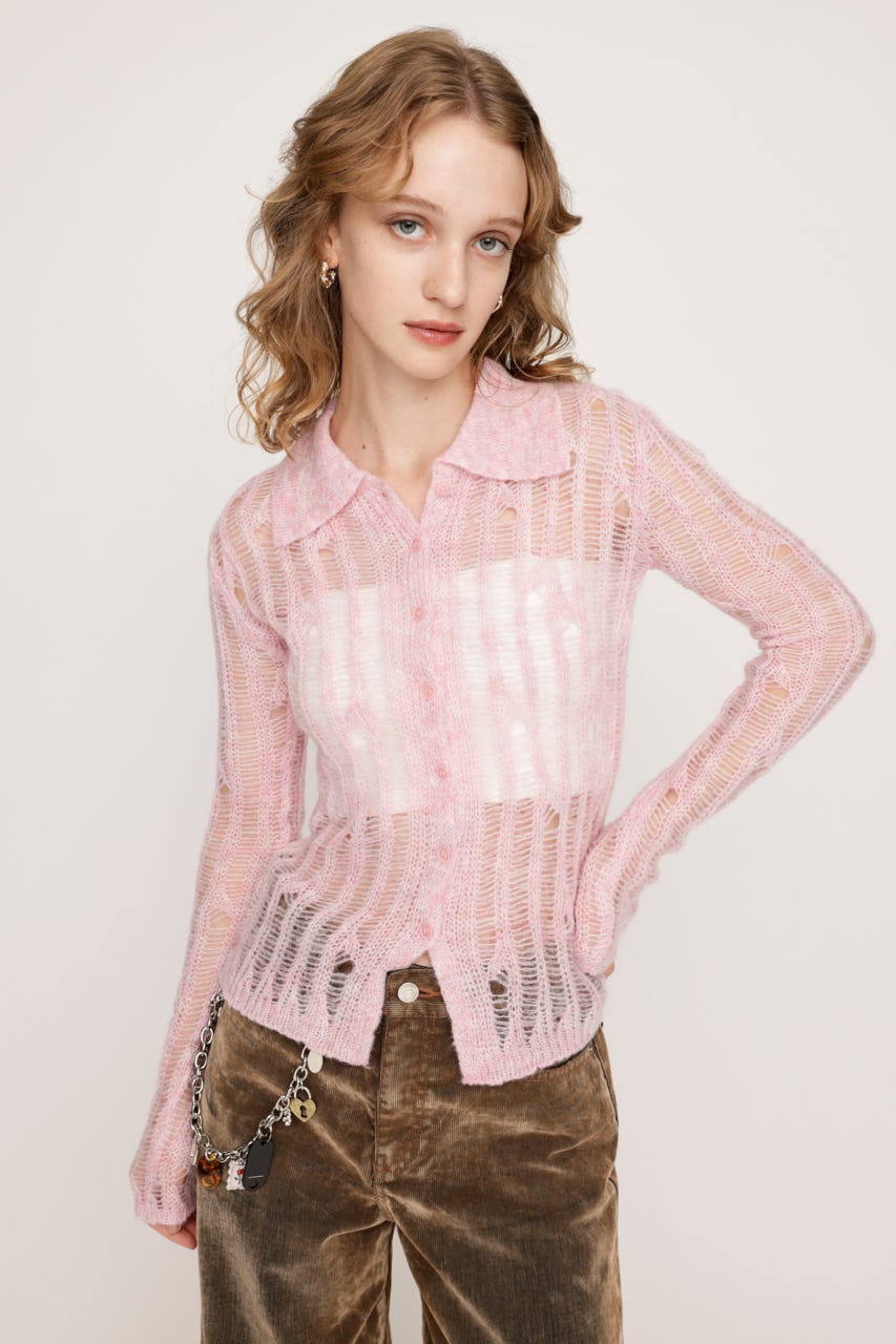 ランダムに施されたダメージ加工と、程よい肌見せが叶う粗編みデザインがポイント。