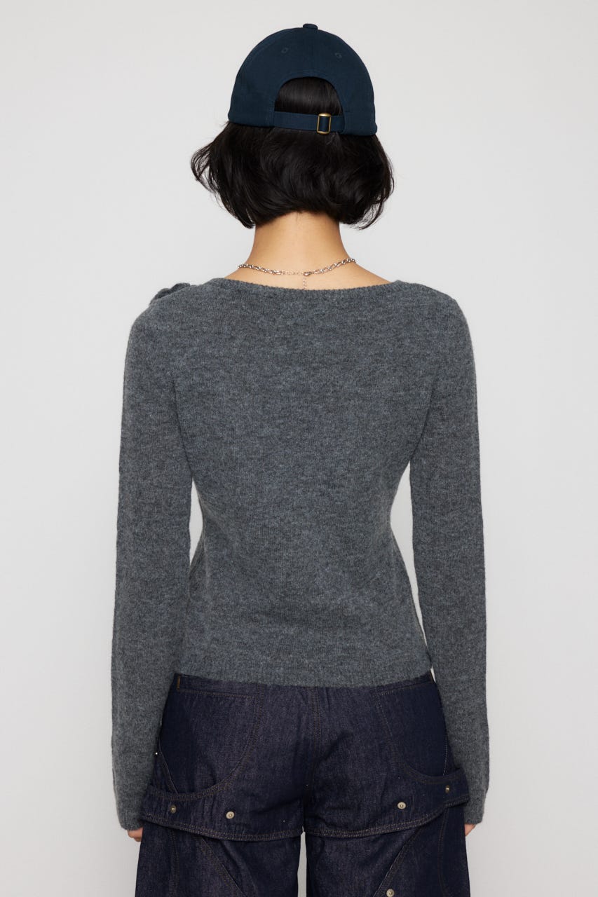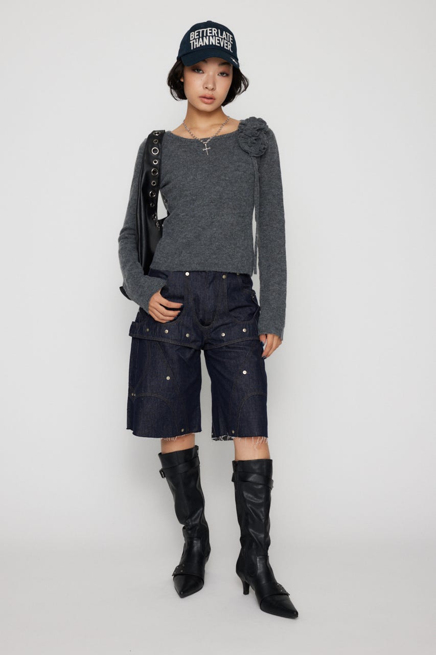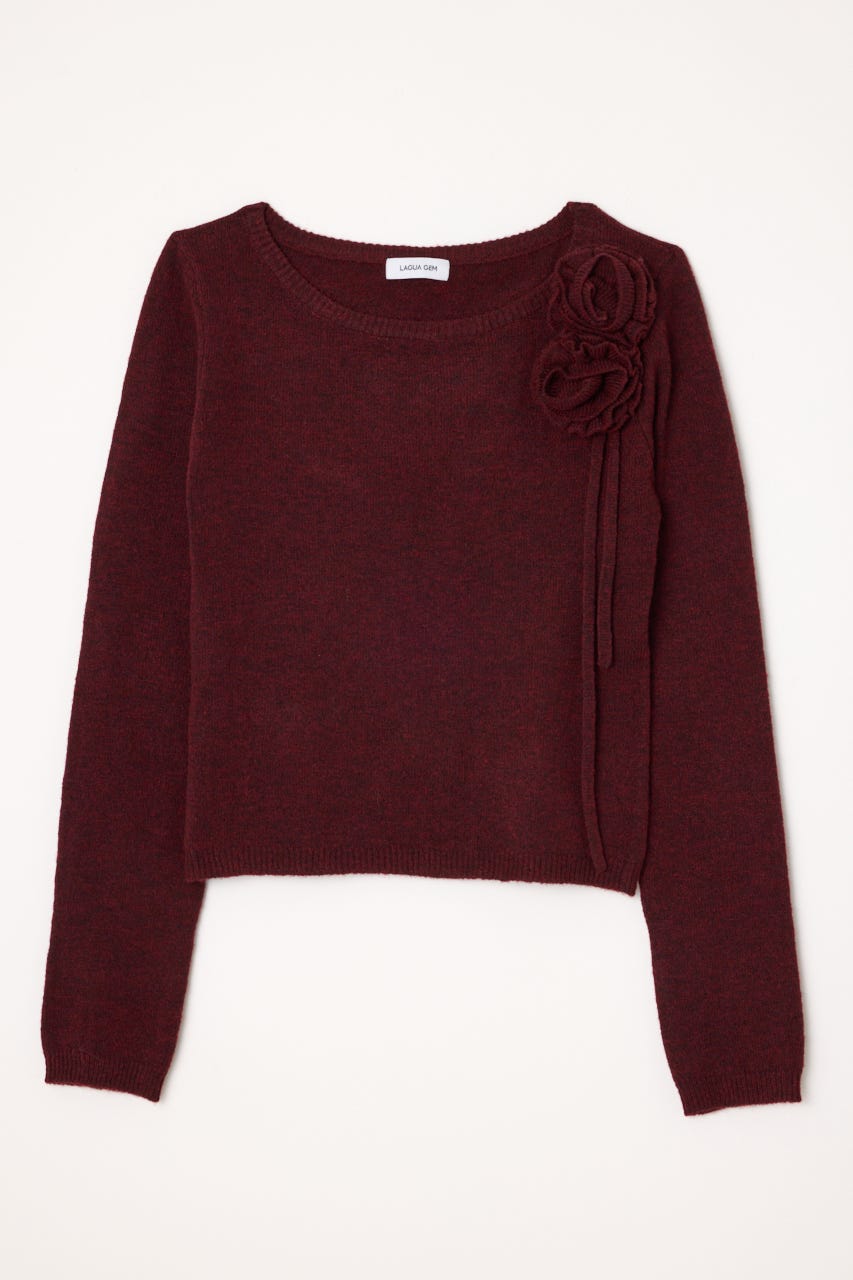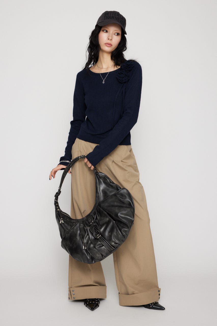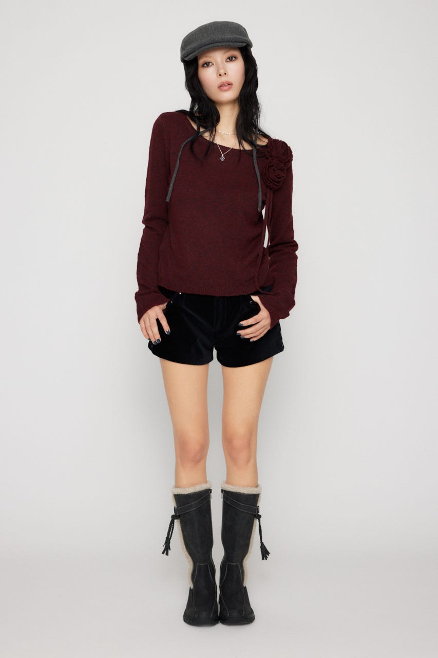 ■POINT:軽やかな質感とローズモチーフのコサージュがポイントのニット。