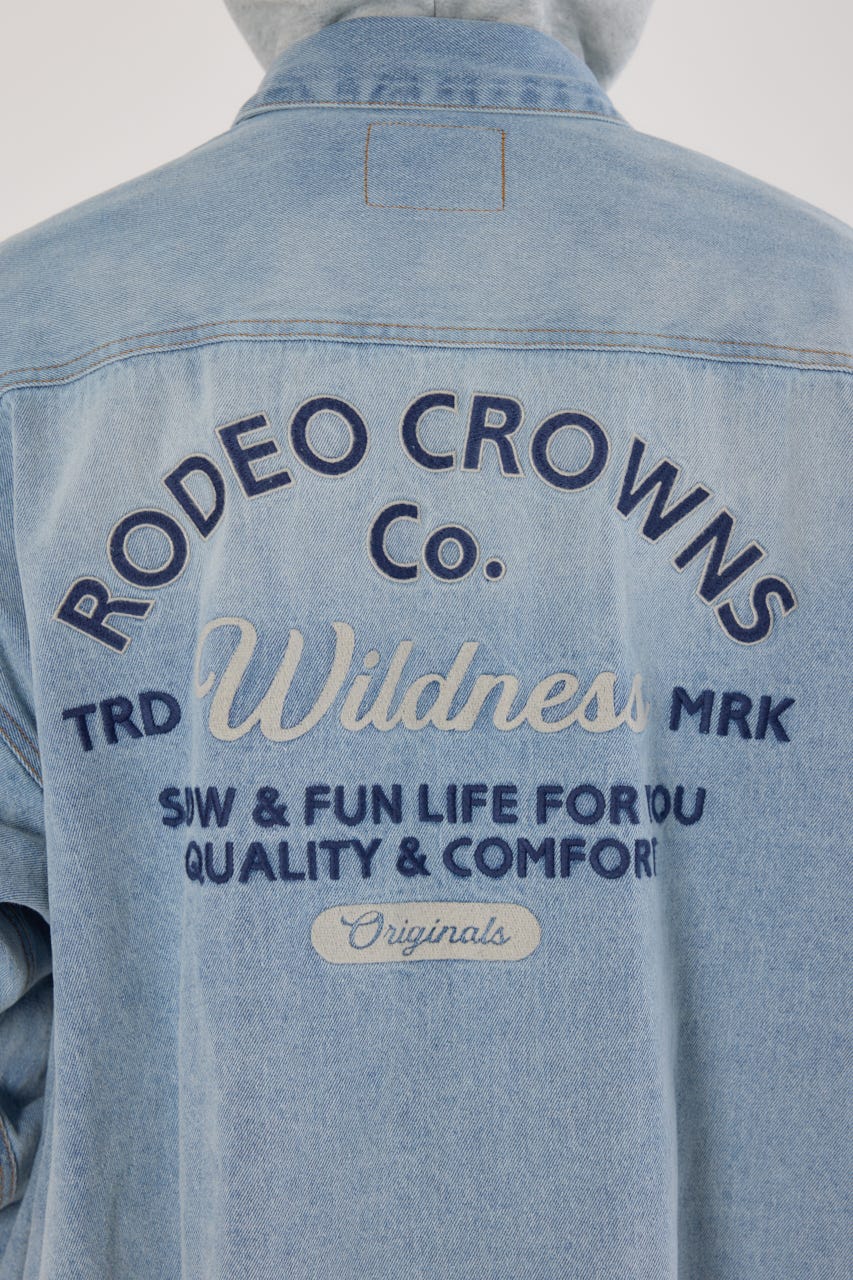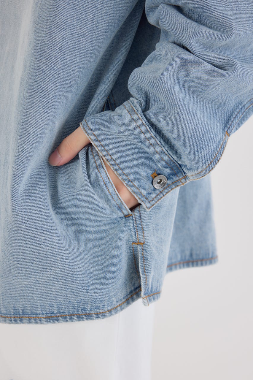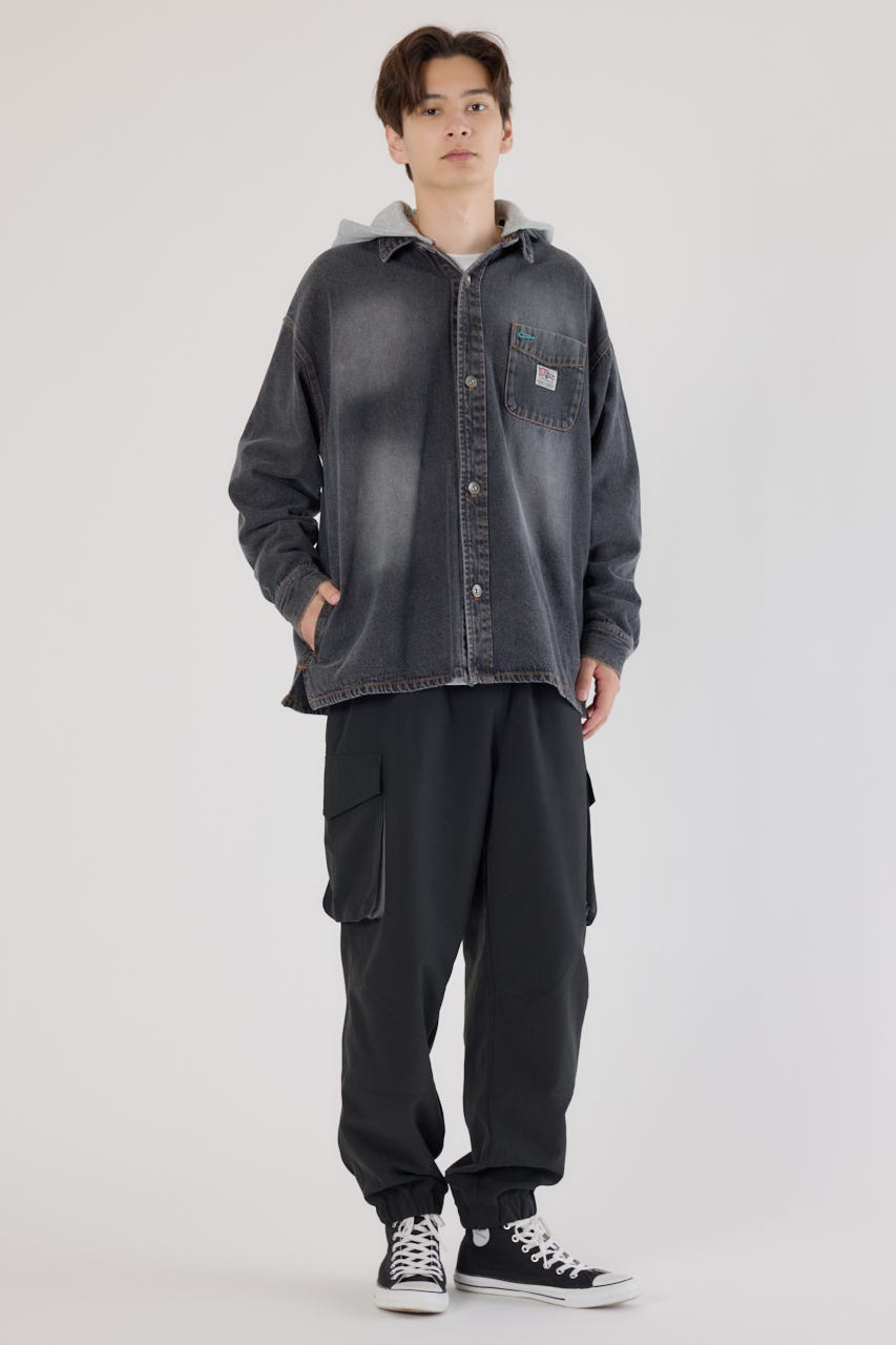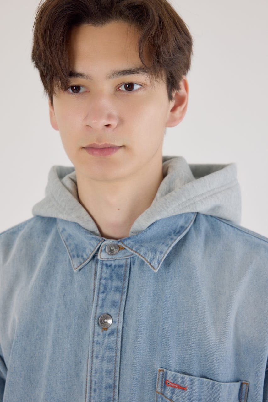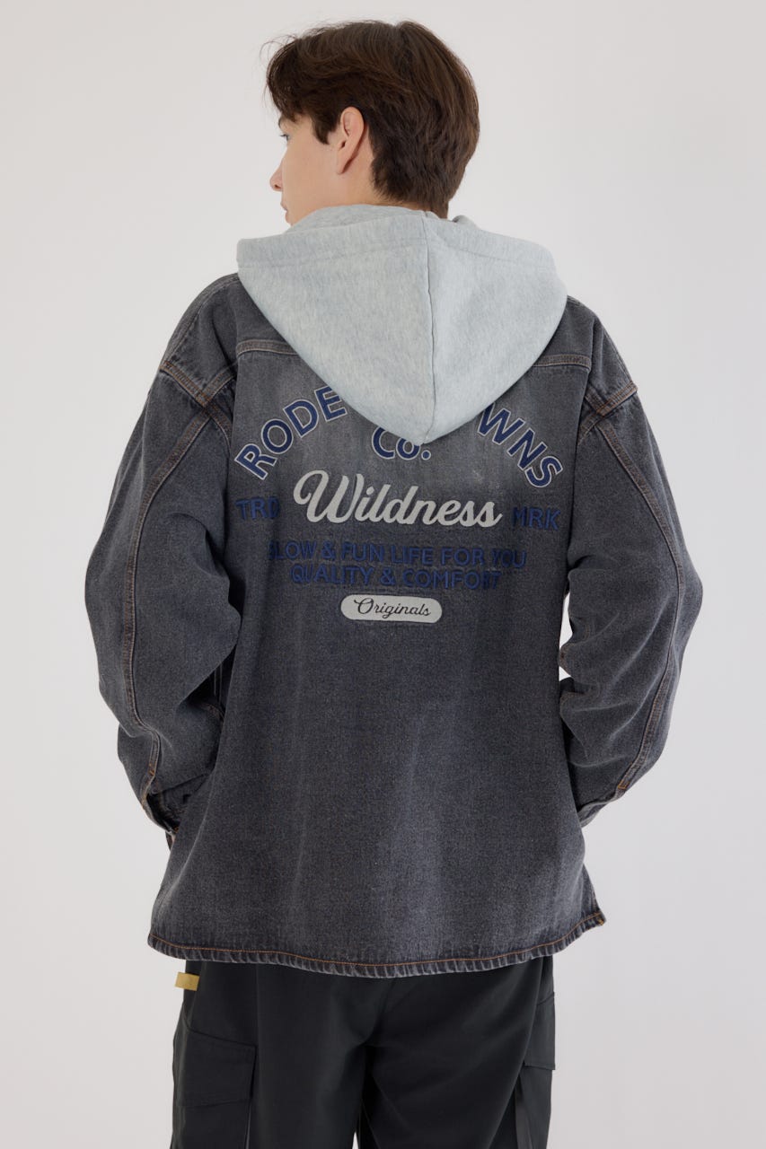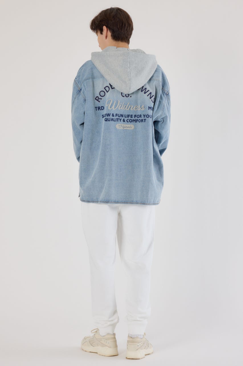 しっかりとしたデニム生地を使用したフード付きのデニムシャツジャケット。