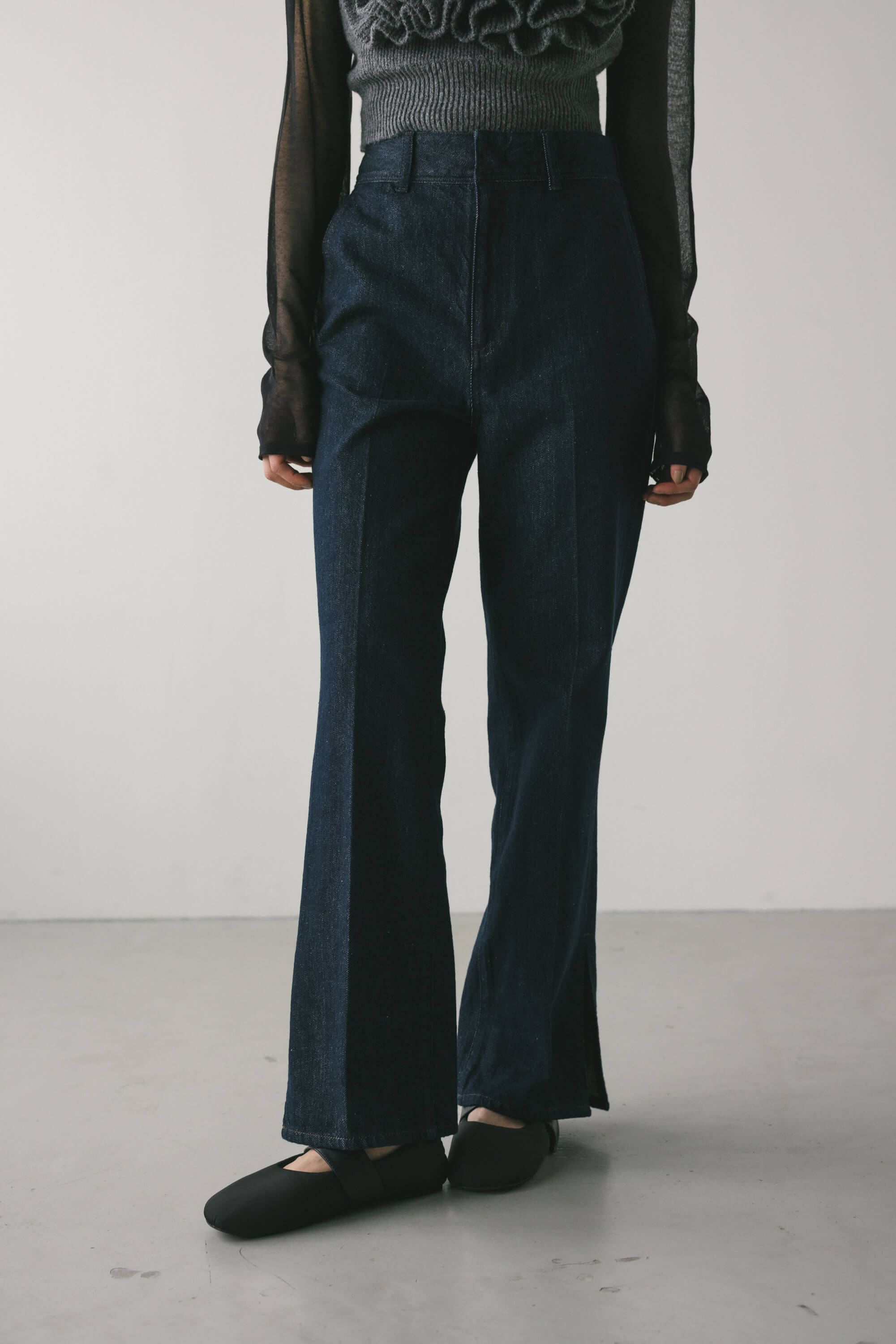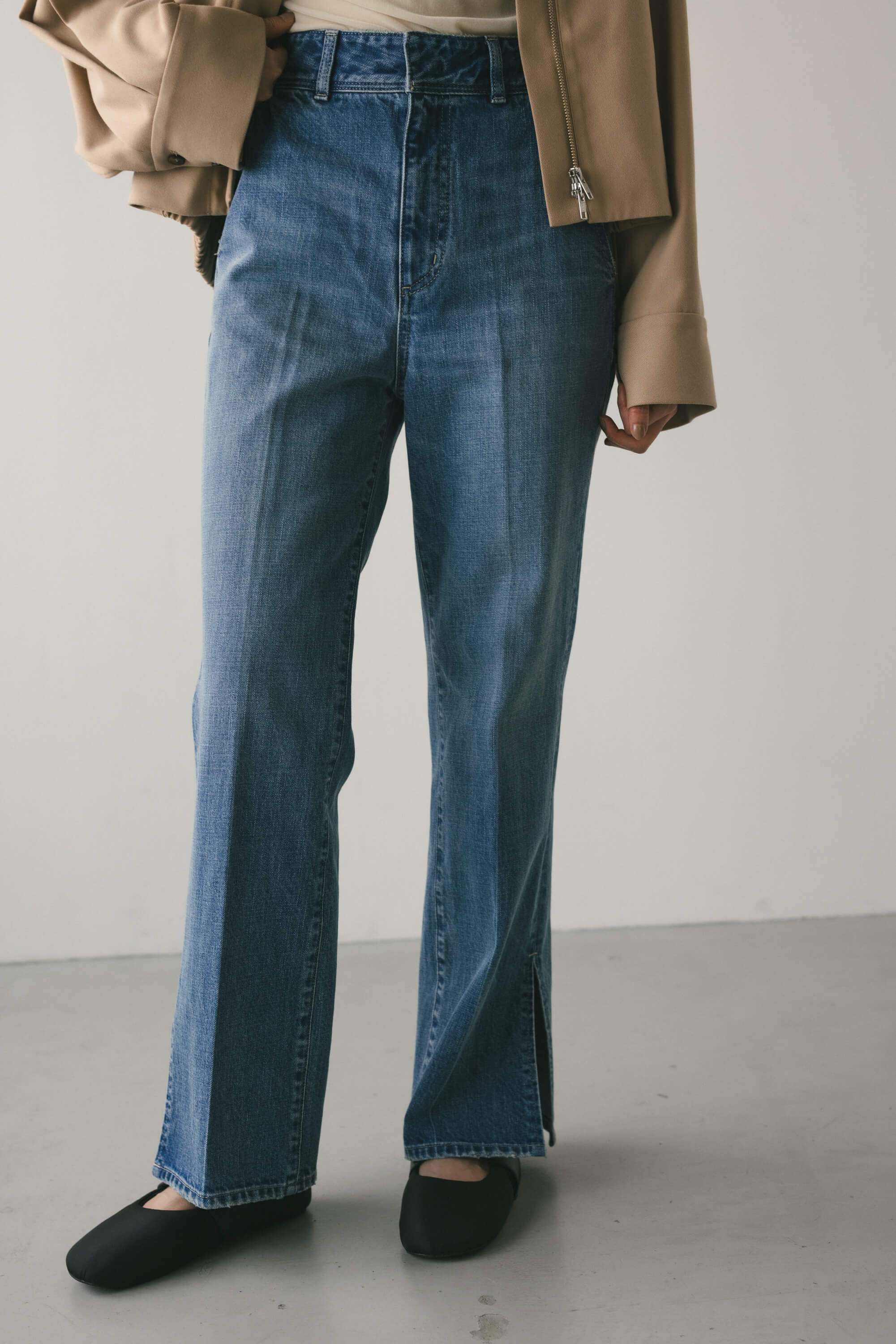 ヘムスリットストレートデニムパンツ
